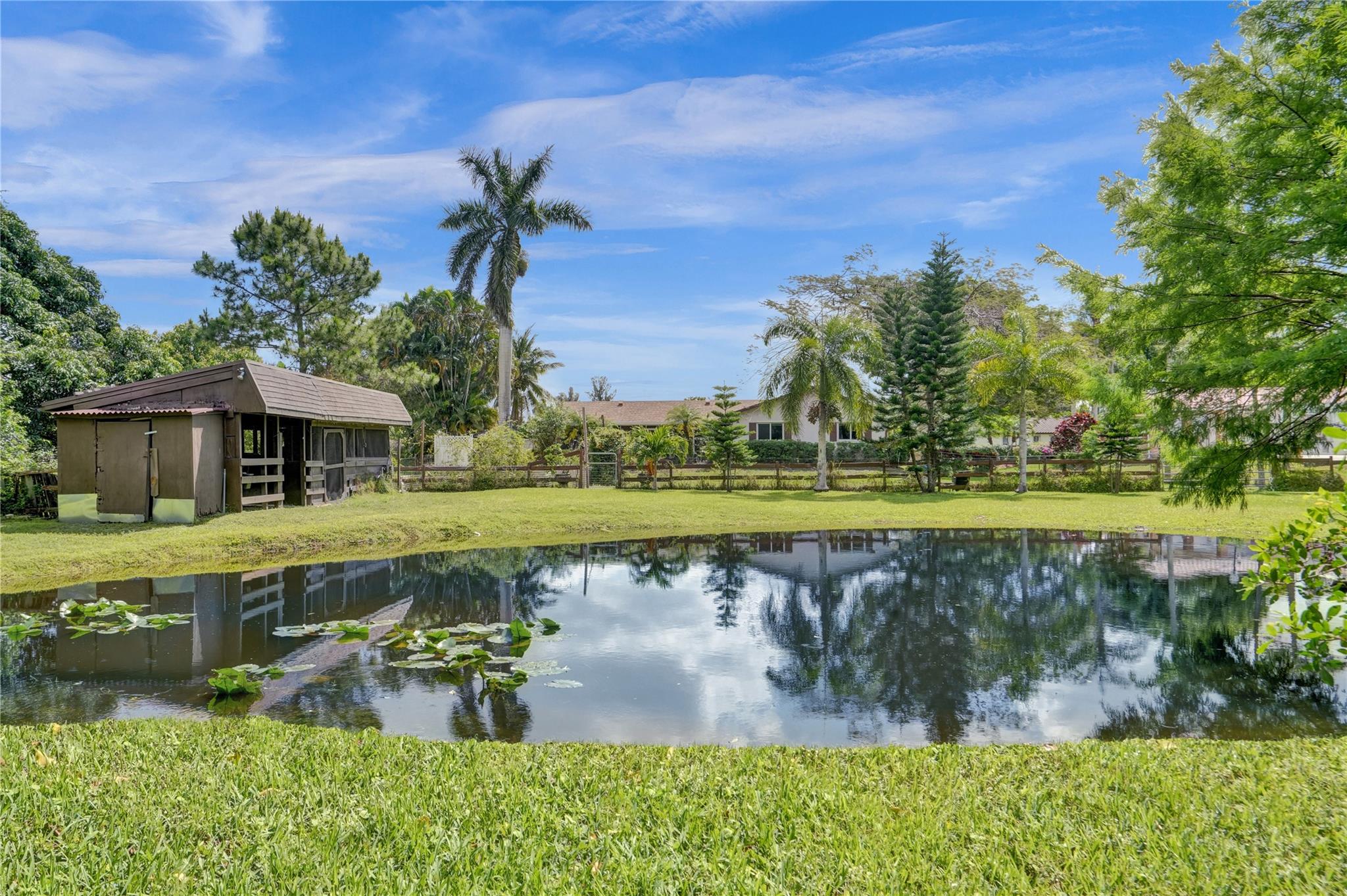 In a beautiful equestrian community this home features 3 horse stalls along with a picturesque pond front. Nestled on a builder's acre that is just perfect for your horses, RV and boats whatever your hobbies might be. New roof 22, water heater 24, W/D 24. Inside, you'll find a warm and inviting living space with an open floor seamlessly connecting the kitchen, dining and living area. The kitchen is equipped with modern appliances, that overlooks a patio, perfect for parties. The 4 bdrms are a good size, primary has new wood flooring & walk in closet. The outside has a huge, screened patio that overlooks the 12 raised garden beds to grow all your produce and a very large pond. The property is completely fenced in. The community will have unground electrical lines by end of yr. Hobby farm.