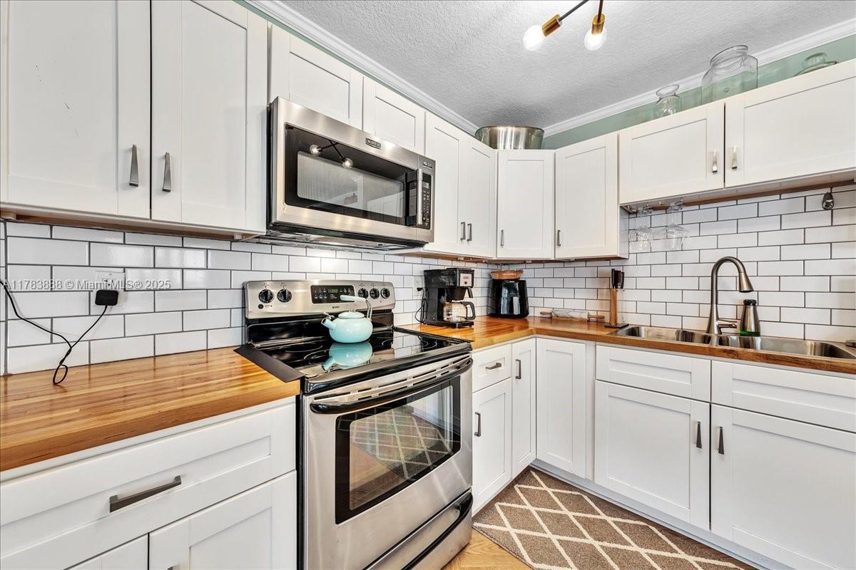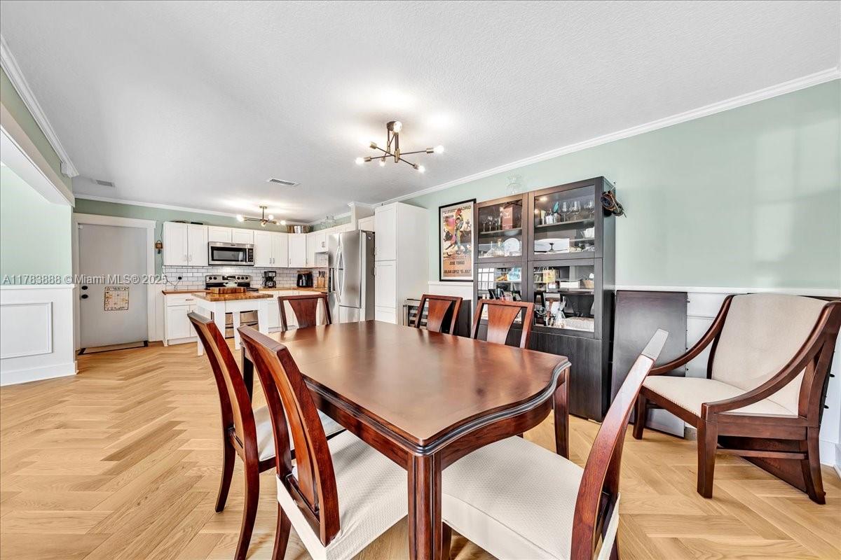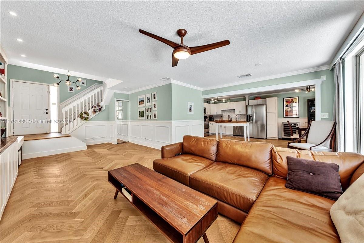 Substantially renovated 3BD/2.5BA corner-lot home in West Plantation! 2-car garage, open layout, crown molding, recessed LED lighting, custom built-ins, no popcorn ceilings & rich chevron wooden flooring. Gourmet kitchen w/butcher block counters, shaker cabinets, SS appliances & French doors. Expansive primary suite w/dual walk-in closets, Jacuzzi tub & sep. shower. Backyard features concrete landing, synthetic turf & lush landscaping and is an entertainer’s dream. Priced under $600K and easy to show.