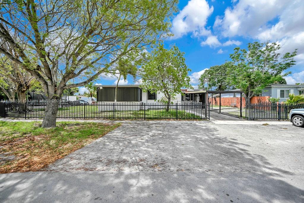 Spacious 5 bed/2 bath one-story home on a huge corner lot! The house is perfect as a primary residence or investment property with great income potential. Split floor plan with 3-bed/1-bath on one side and attached 2-bed /1-bath side which can be used as in-law studio. Open concept living room, dining room, modern kitchen and laundry room with washer & dryer. The property is fully fenced with cemented parking, carport, Accordion shutters and room to park an RV or boat. Centrally located in Hialeah close to major highways, Le Jeune Rd and 49th Street. Best of all, No HOA!