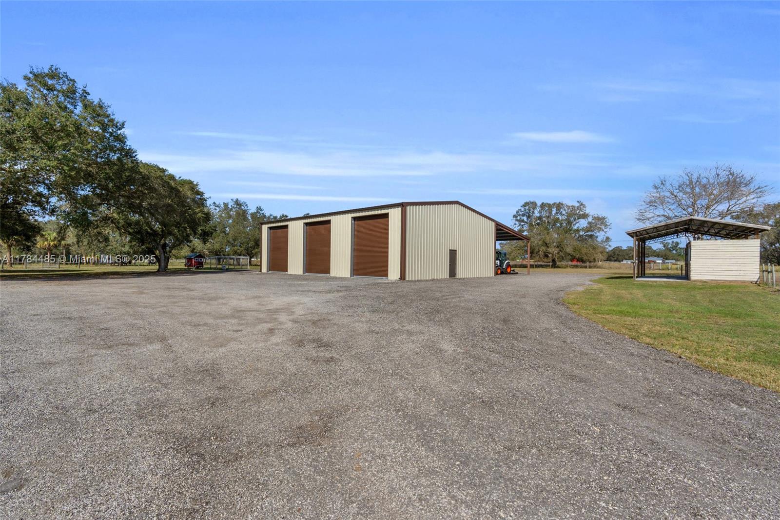 Experience tranquility on over 14 acres in LaBelle, where towering oaks frame a peaceful pond and the morning sun graces your porch. This 2016-built, 4 bedroom, 3-bath home features modern comforts, including high- efficiency A/C, a 2024 whole-house R/O system, and superior R-60 insulation for energy savings. The roof adds extra efficiency with isoboard. The property includes a fenced yard, a 40x60 steel building with a 25x60 overhang, a pole barn, and three motorhome electric plug-ins. Two additional parcels (1.51 and 2.74 acres) offer even more possibilities. Schedule your private tour today!