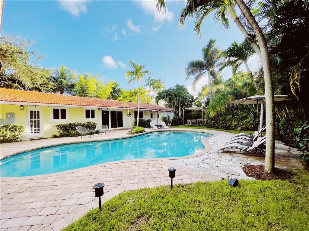 This spacious single-family home located in the desirable Coral Ridge neighborhood. Built in 1959, this two-story residence offers 4 bedrooms and 4.5 bathrooms across 2,646 square feet of living space. The home features Italian tile flooring, a granite kitchen with ample cabinet and counter space, stainless steel appliances, and updated bathrooms. The master suite is situated on the second floor, and the property includes a pool, mostly impact windows, and washer and dryer hookups. The lot size is approximately 10,001 square feet, and the home is equipped with air conditioning and provides 4 parking spaces .
