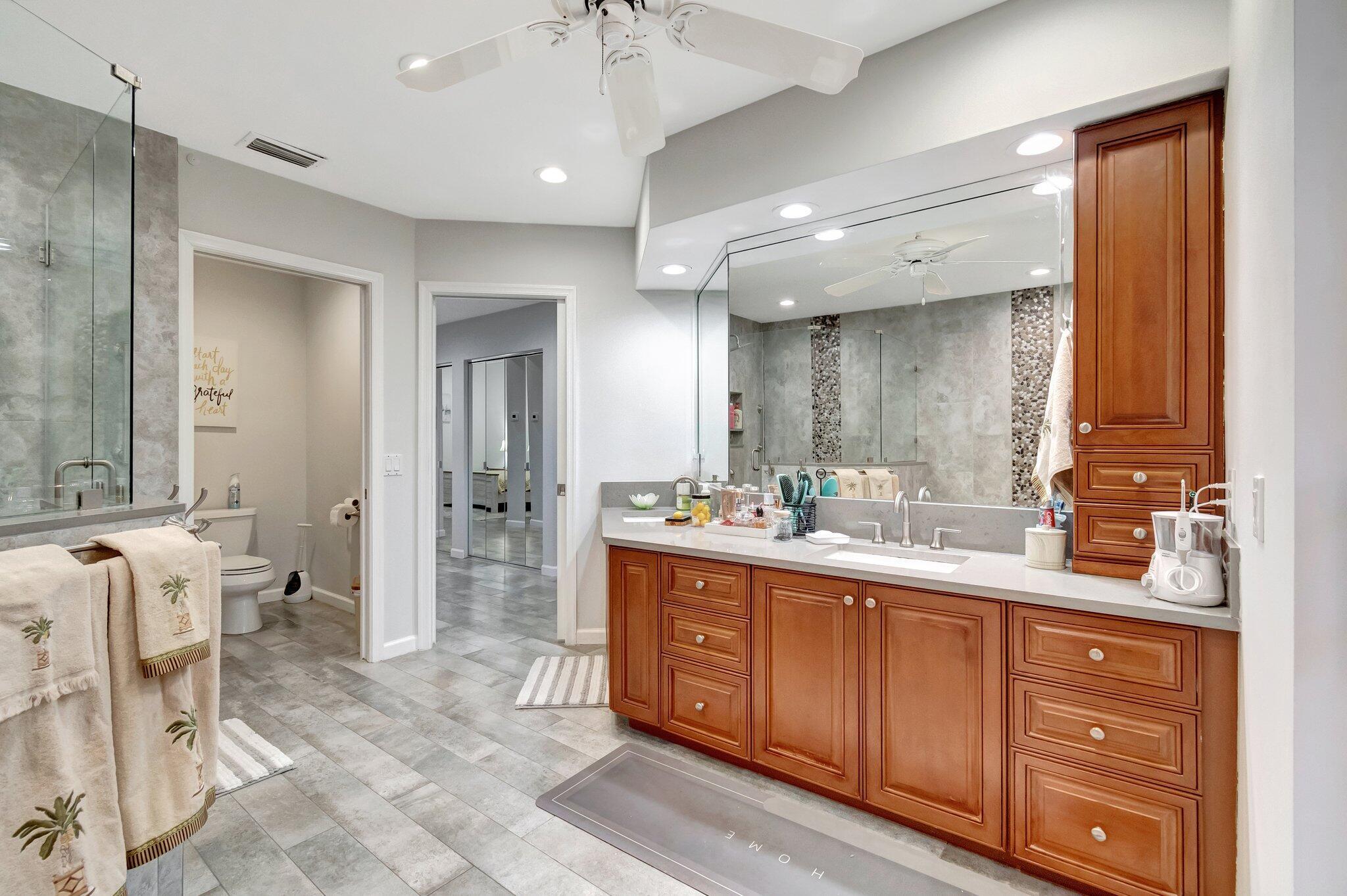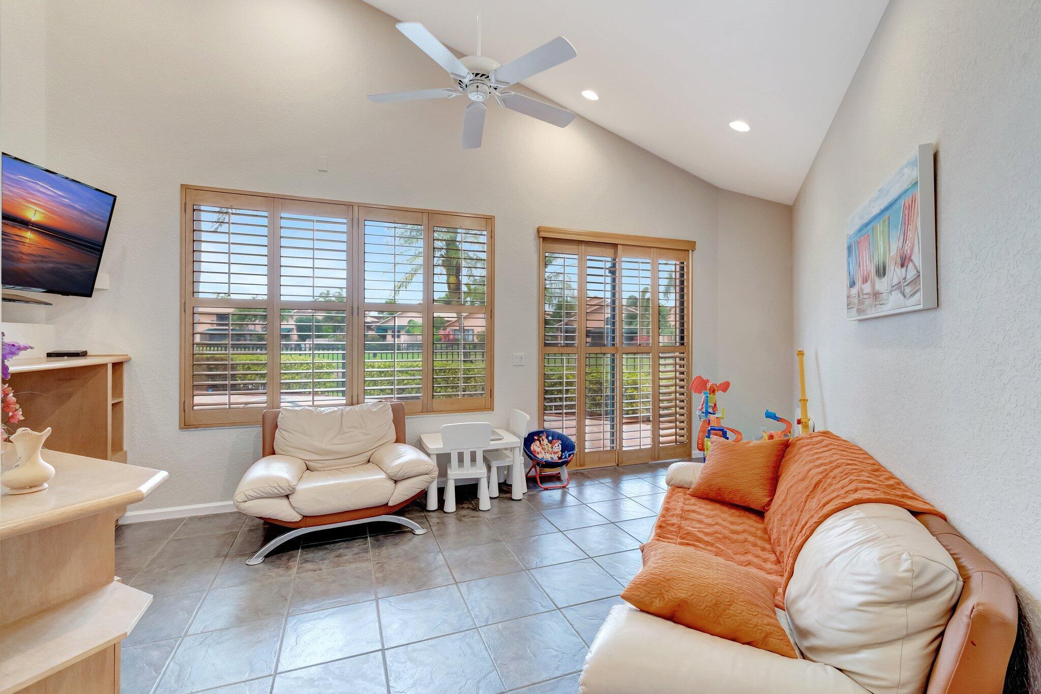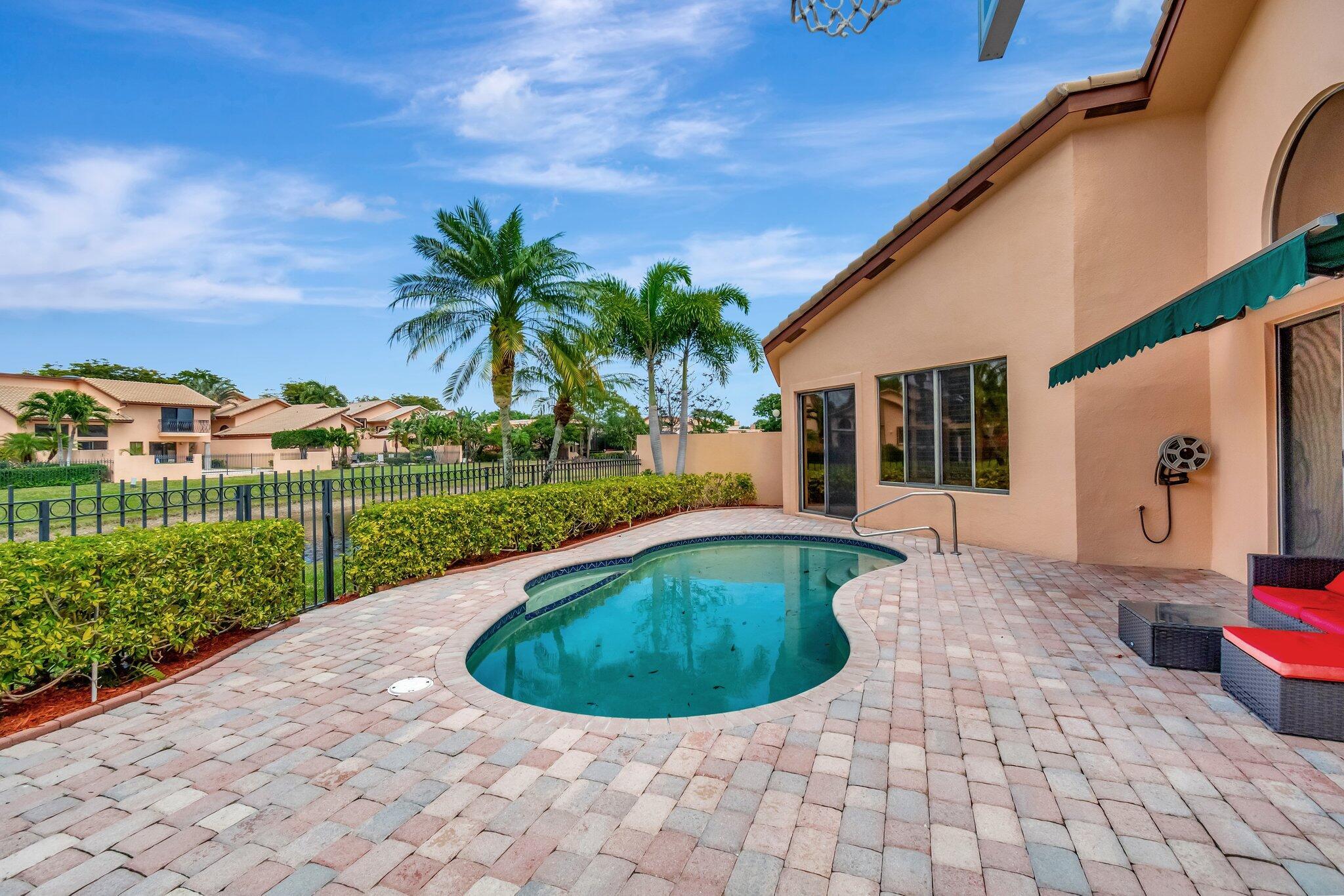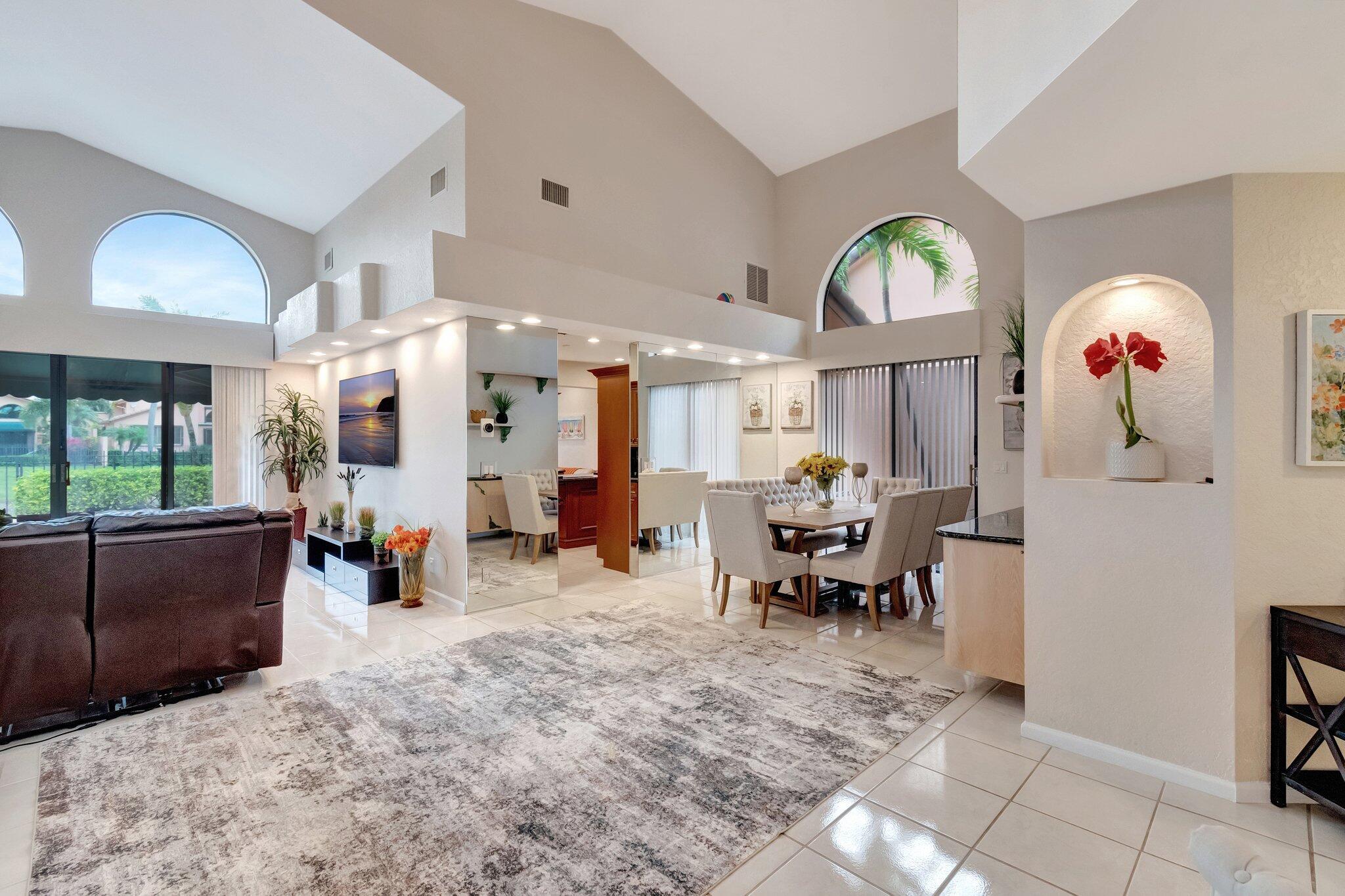 Experience the best of Florida living in this beautifully appointed single-family home, nestled in the prestigious, guard-gated community of Boca Pointe--where Country Club membership is optional. Boasting panoramic lake views, pool, and an expansive al fresco lounging area, this home is perfect for both relaxing and entertaining in style.With 3 bedrooms, 2.1 bathrooms, and over 2,857 sq. ft. of thoughtfully designed living space, this residence offers a seamless open-concept layout ideal for family gatherings and casual get-togethers. The updated kitchen features a large center island, 42'' cabinetry, granite countertops, stainless steel appliances, and ample storage space.