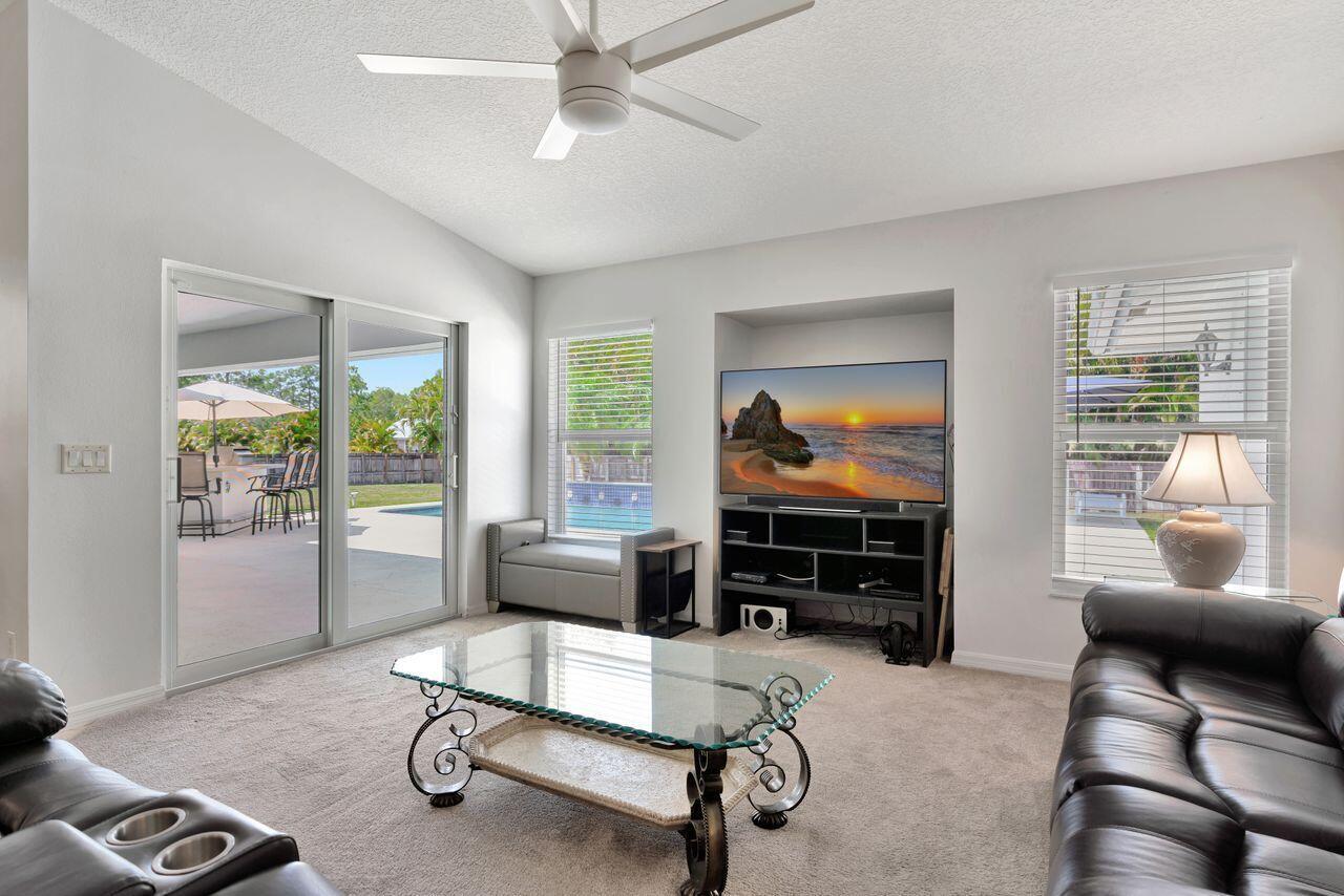 Welcome to your dream home in desirable Jupiter Farms! This CBS-built beauty offers 5 bedrooms (including a private en-suite), 4 full bathrooms, and a spacious 3- car garage. Sitting on 1.15 acres, with backyard fully fenced, this property is loaded with upgrades with a new metal roof. Home is secure with full impact windows, doors and sliders, plus shutters for added peace of mind. Step inside to a bright, open layout with a gorgeous kitchen featuring stainless steel appliances and plenty of space for entertaining. The home flows beautifully with spacious living areas and separate laundry room complete with sink. Step out back to your private oasis- an oversized heated pool, covered patio and built-in summer kitchen with grill perfect for year-round enjoyment.