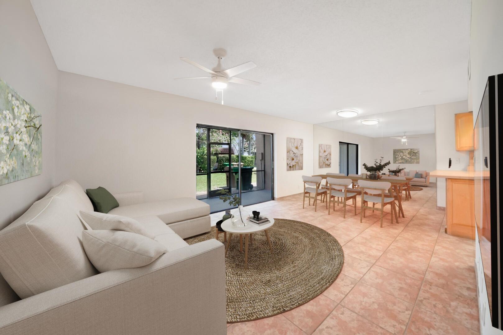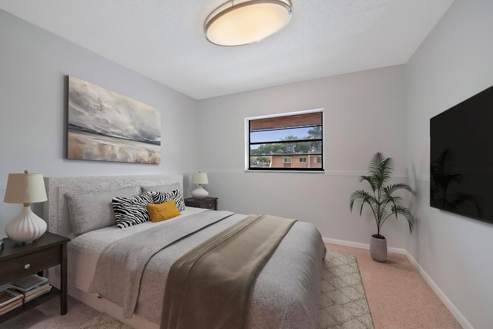 Welcome to this charming 3-bedroom, 2.5-bath townhome in desirable Valencia Village. This spacious home features a bright living room, cozy family room, and a separate dining area with neutral flooring throughout. The kitchen offers stainless steel appliances, a convenient snack bar, and plenty of cabinet space. The primary suite includes a sliding door to a private balcony, an ensuite bath, and ample closet space. Enjoy outdoor living on the screened-in patio with a peaceful garden view. Don't miss this move-in ready home in a beautifully maintained community!