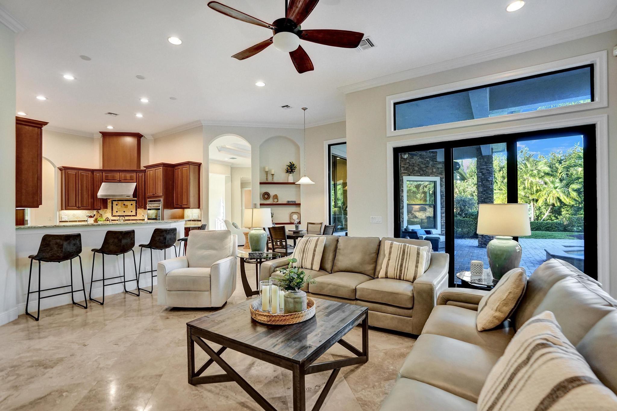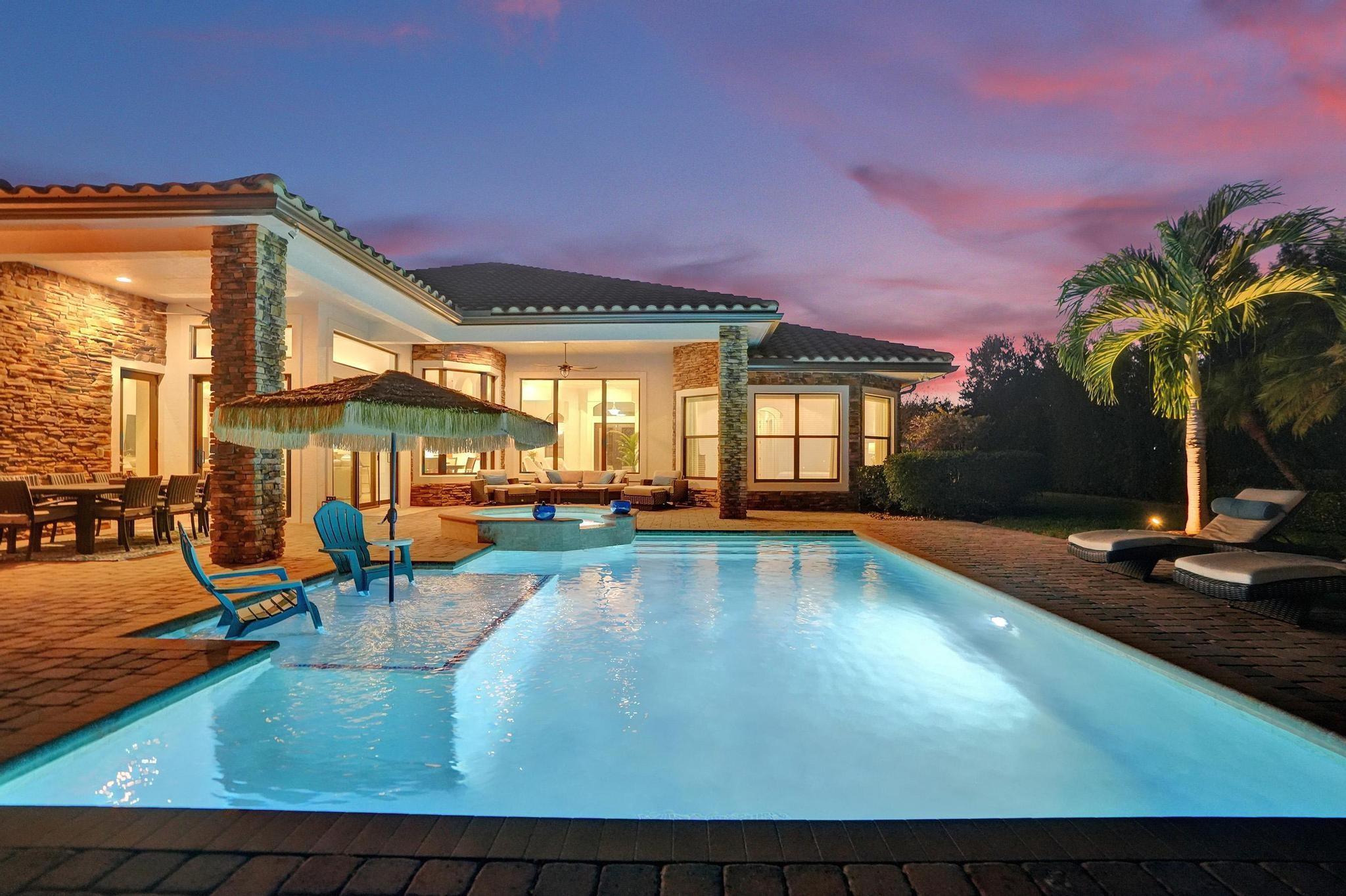 PARKLAND GOLF & COUNTRY CLUB ONE-OF-A-KIND TOLL BROTHERSS ROYALE MODEL (ONE STORY) BUILT ON PREMIUM 18,312 SF LOT, Heated Pool & Spa, & fabulous views of 3 Community Waterfall Fountains and simply enchanting and entertaining backyard. Impact Windows and Doors, Custom Wrought Iron Double Door Entry. Marble Floors throughout main living areas & wood flooring in bedrooms. Gourmet Kitchen w/Wolf 6 Burner Gas Cooktop & Hood, Wolf Double Wall Ovens, Wolf Microwave, Sub-Zero Fridge with Ice & Water Dispenser, Bosch Dishwasher. Primary Bedroom Suite w/2 Walk-in Closets, French Door to Patio, Primary Bath has Jetted Tub, Two Separate Vanities. Triple Split Floor Plan. *5th Bedroom is Office w/ Built-ins, Bedroom #2 is separate with WIC, Bedrooms #3 & #4 have J&J Bath. Resort Style Amenities.