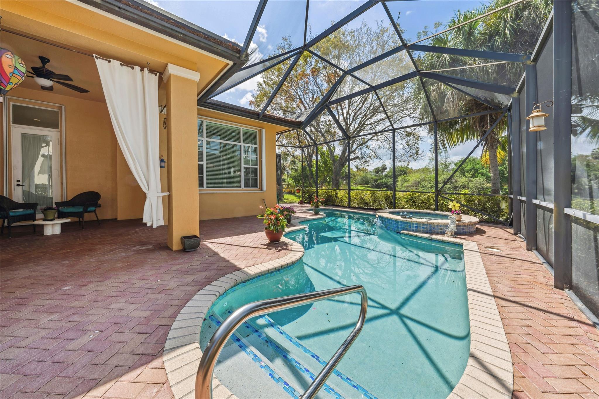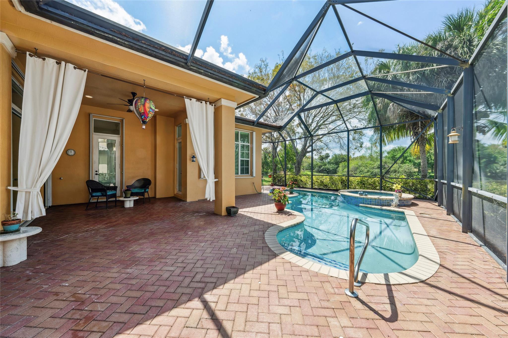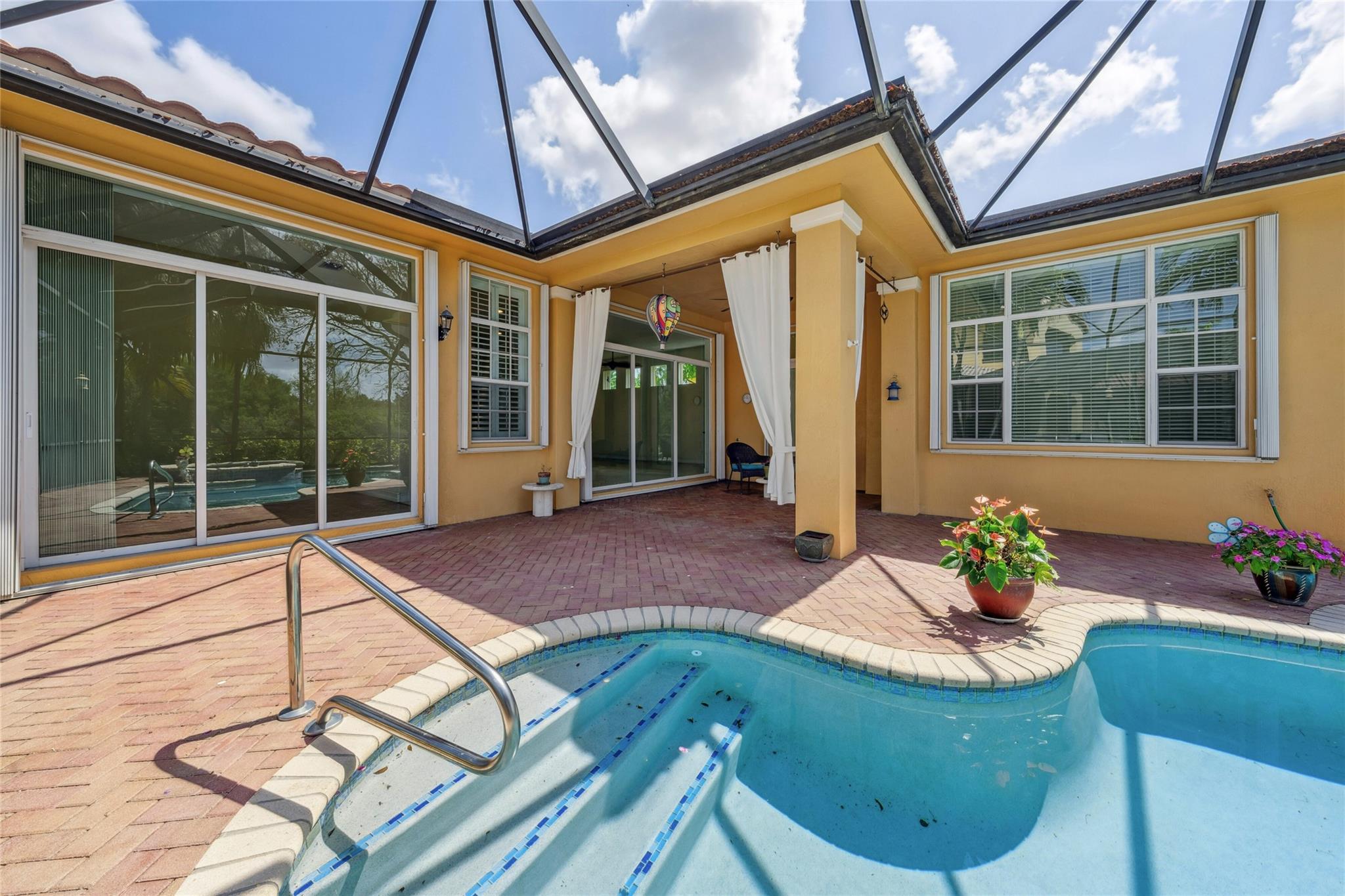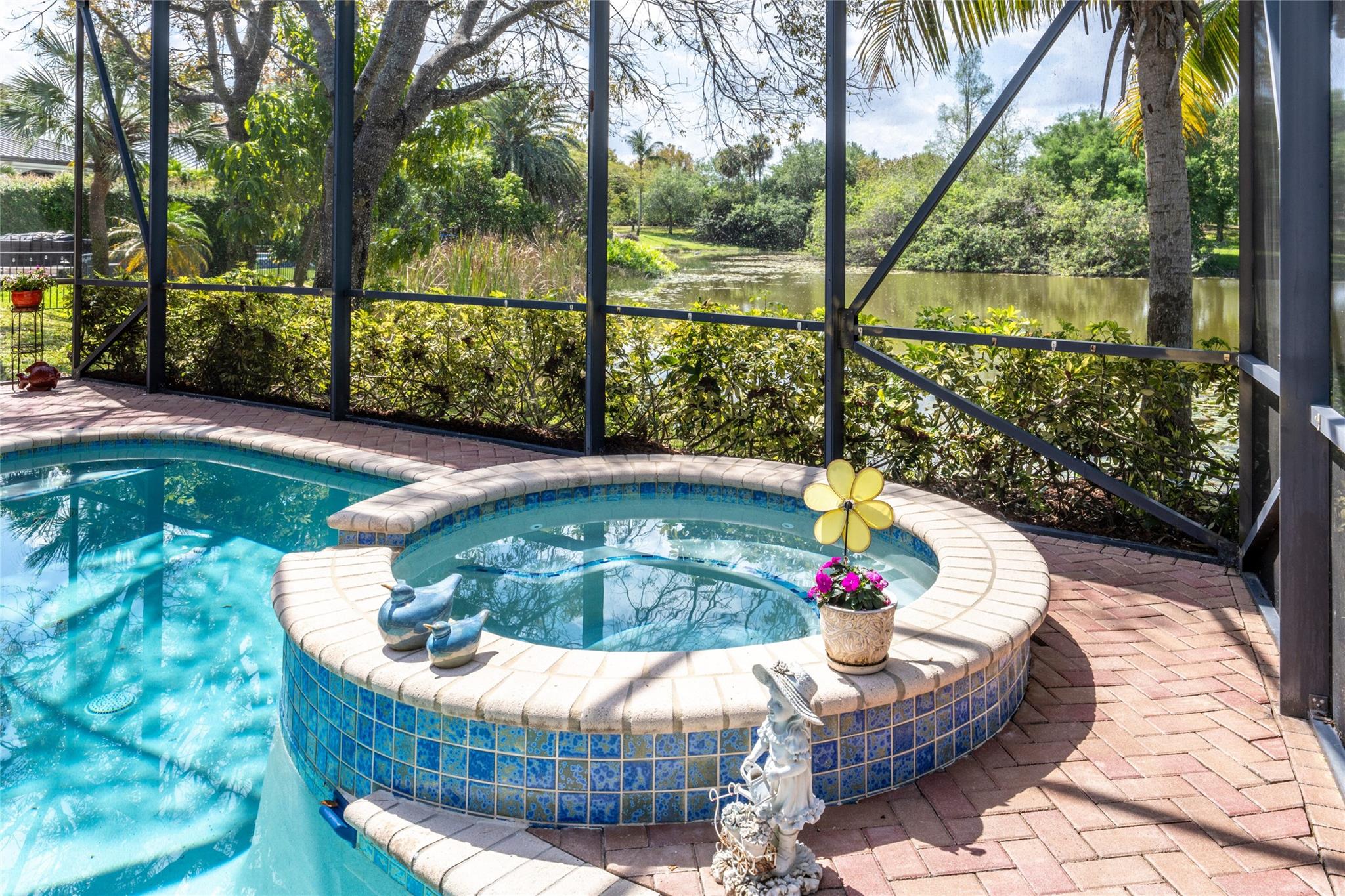 Waterfront lot with lake & preserve views! Private, screen-enclosed pool! Fabulous floorplan with separate guest/in-law suite! Located in coveted Heron Bay, this Myakka model offers 4 bedrooms, 3 full bathrooms and a private dining room that can easily convert into a bedroom/office/playroom/etc. Highlights include: neutral tile in all living areas (wood in dining room); volume ceilings throughout; open kitchen w/wood cabinets, granite countertops & large island; spacious family/great room off kitchen; covered lania with private entrance to 4th bedroom & cabana bathroom; accordion hurricane shutters; screened pool/patio with breathtaking views and more! Heron Bay offers resort-style amenities - pool, tennis, fitness center, pickleball, basketball - with low HOA fees! A-rated schools!
