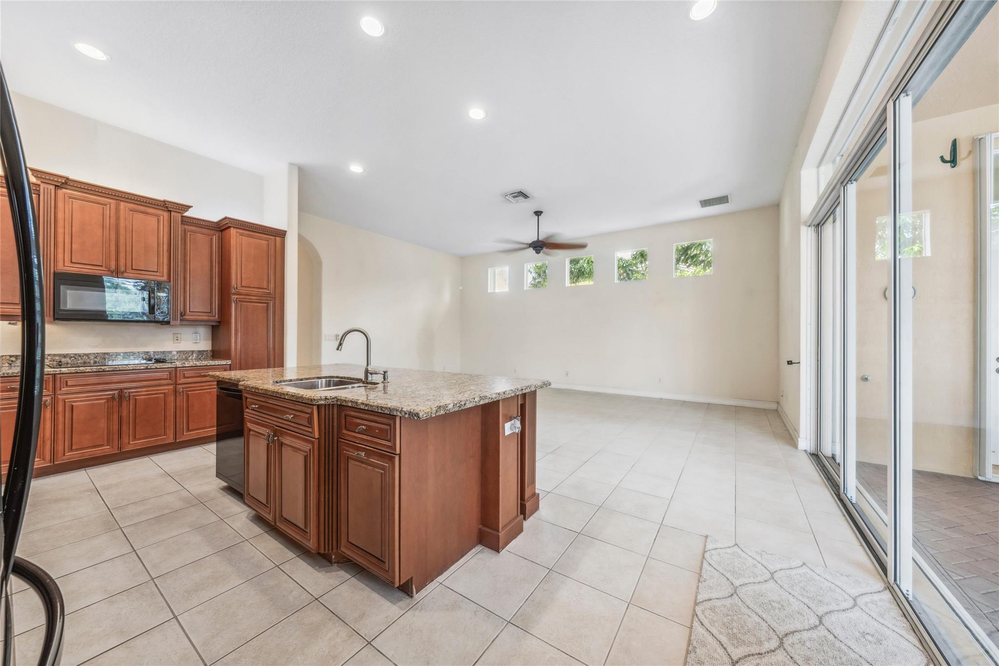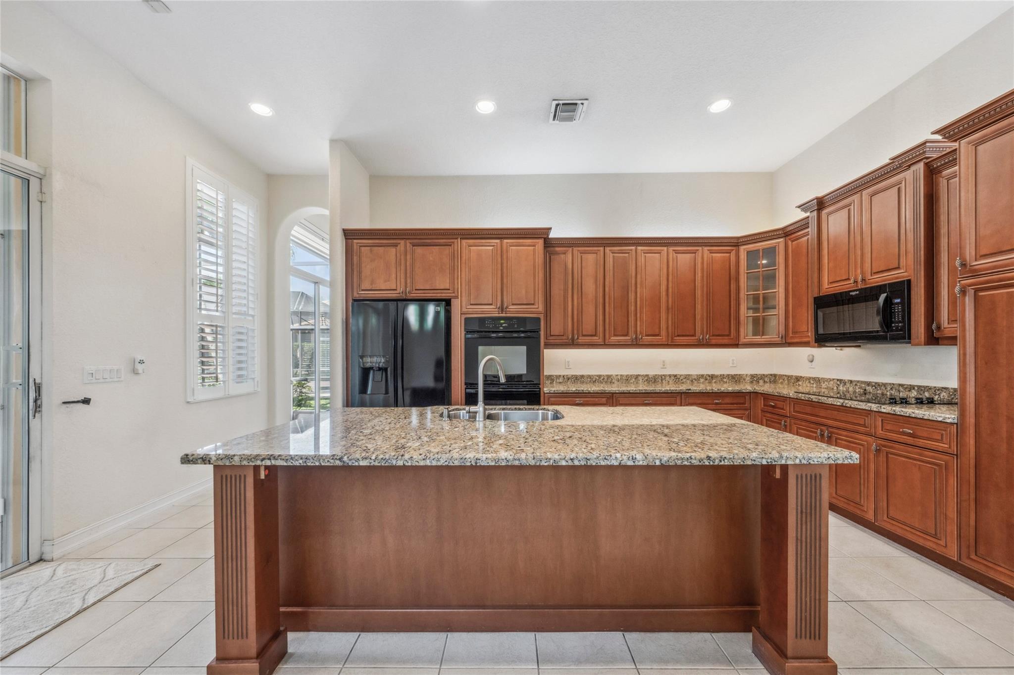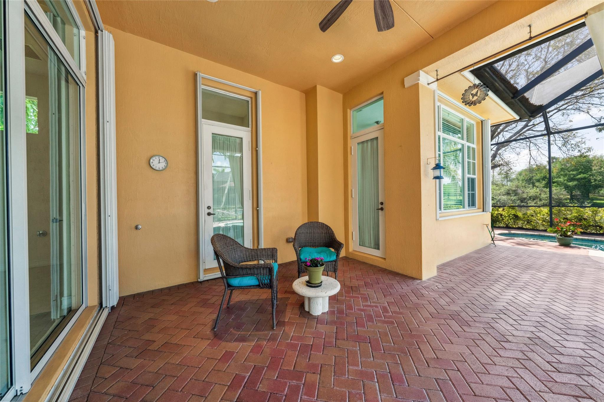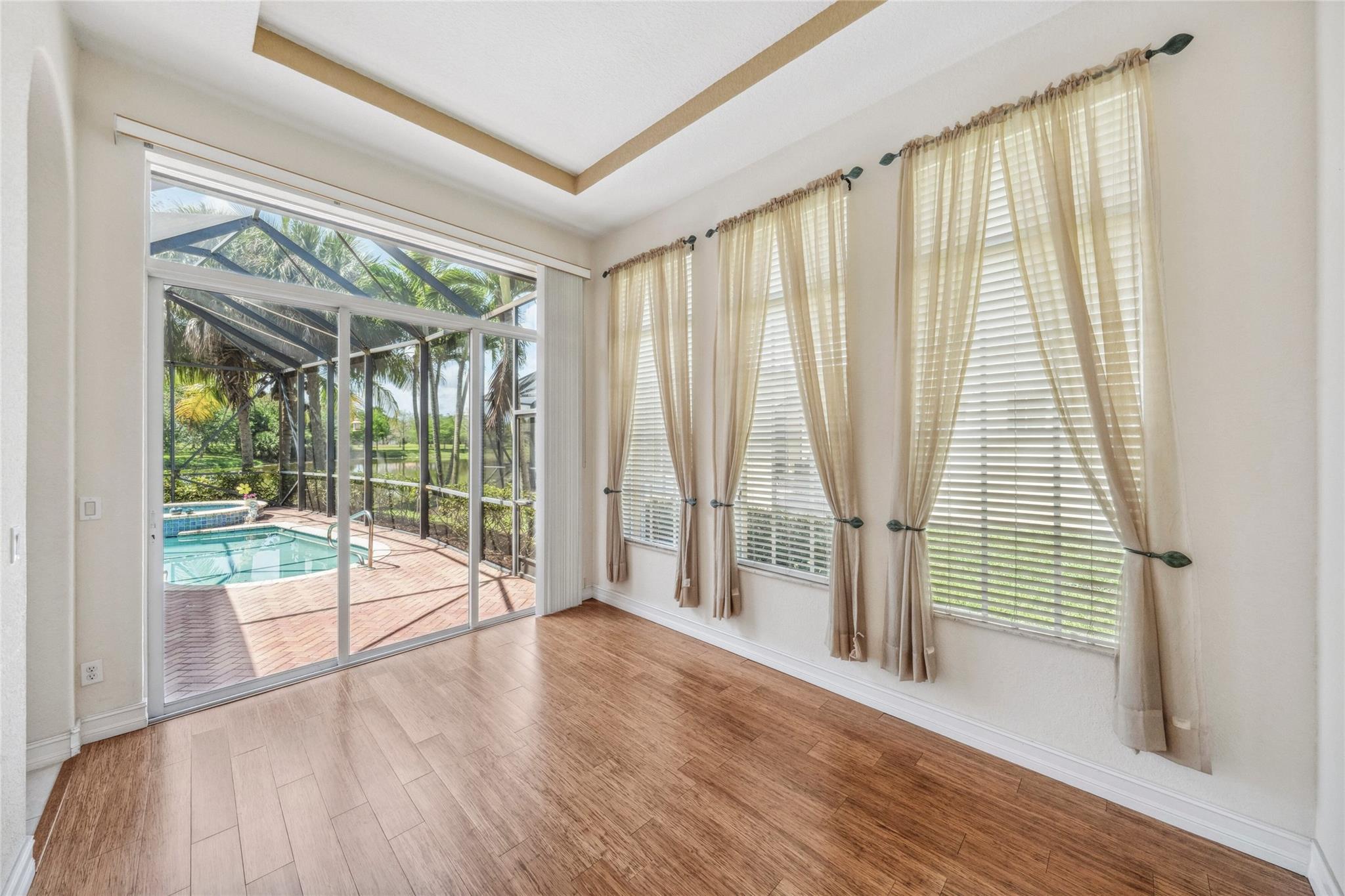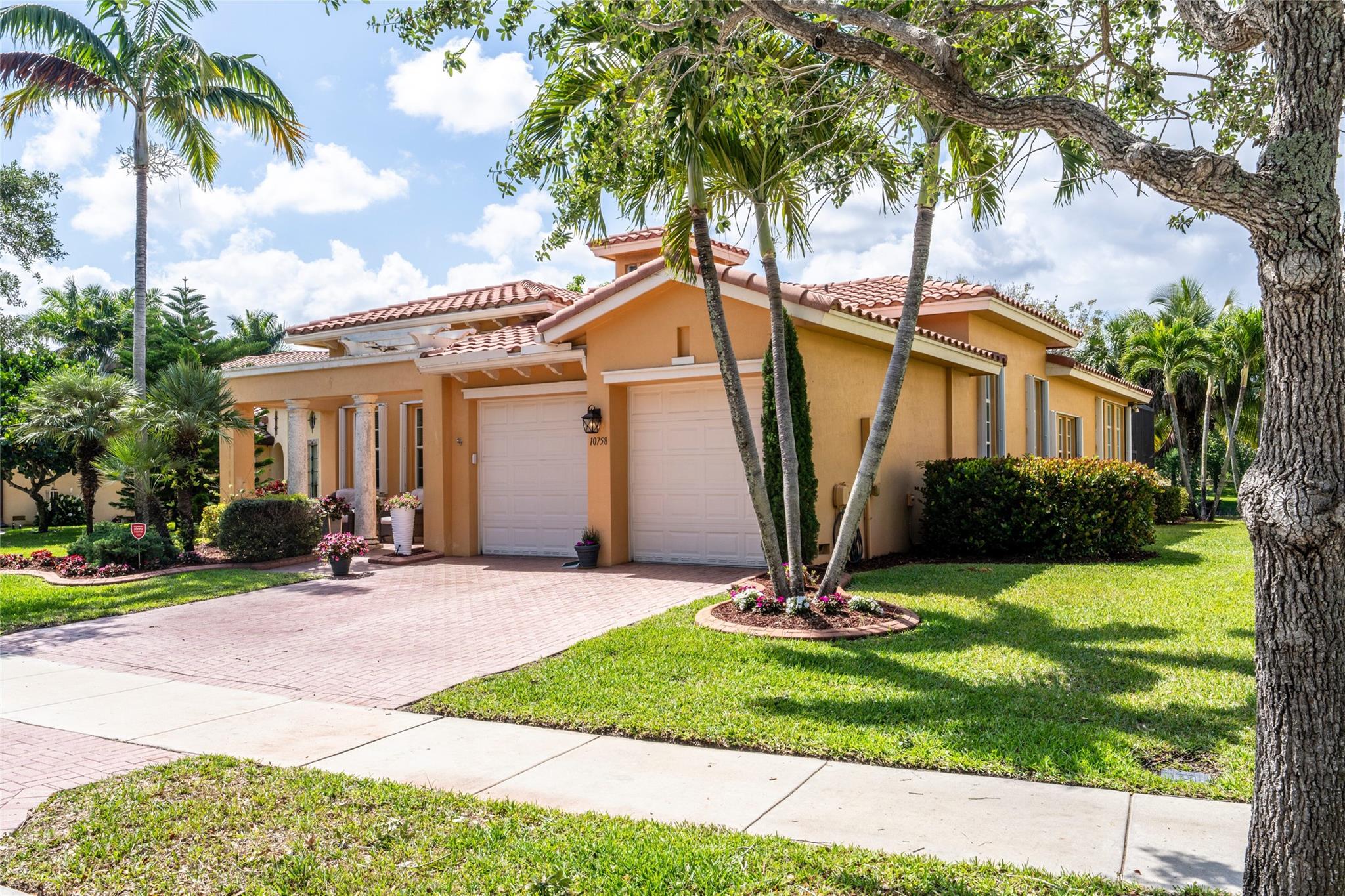 Waterfront lot with lake & preserve views! Private, screen-enclosed pool! Fabulous floorplan with separate guest/in-law suite! Located in coveted Heron Bay, this Myakka model offers 4 bedrooms, 3 full bathrooms and a private dining room that can easily convert into a bedroom/office/playroom/etc. Highlights include: neutral tile in all living areas (wood in dining room); volume ceilings throughout; open kitchen w/wood cabinets, granite countertops & large island; spacious family/great room off kitchen; covered lania with private entrance to 4th bedroom & cabana bathroom; accordion hurricane shutters; screened pool/patio with breathtaking views and more! Heron Bay offers resort-style amenities - pool, tennis, fitness center, pickleball, basketball - with low HOA fees! A-rated schools!