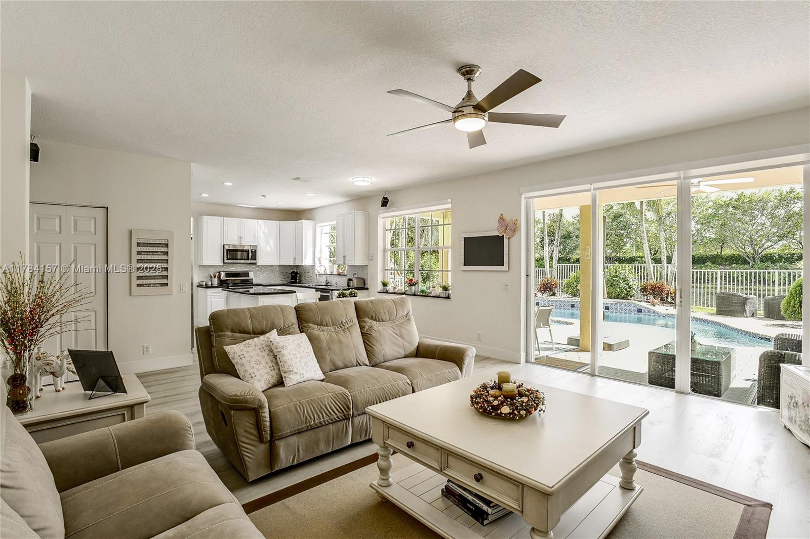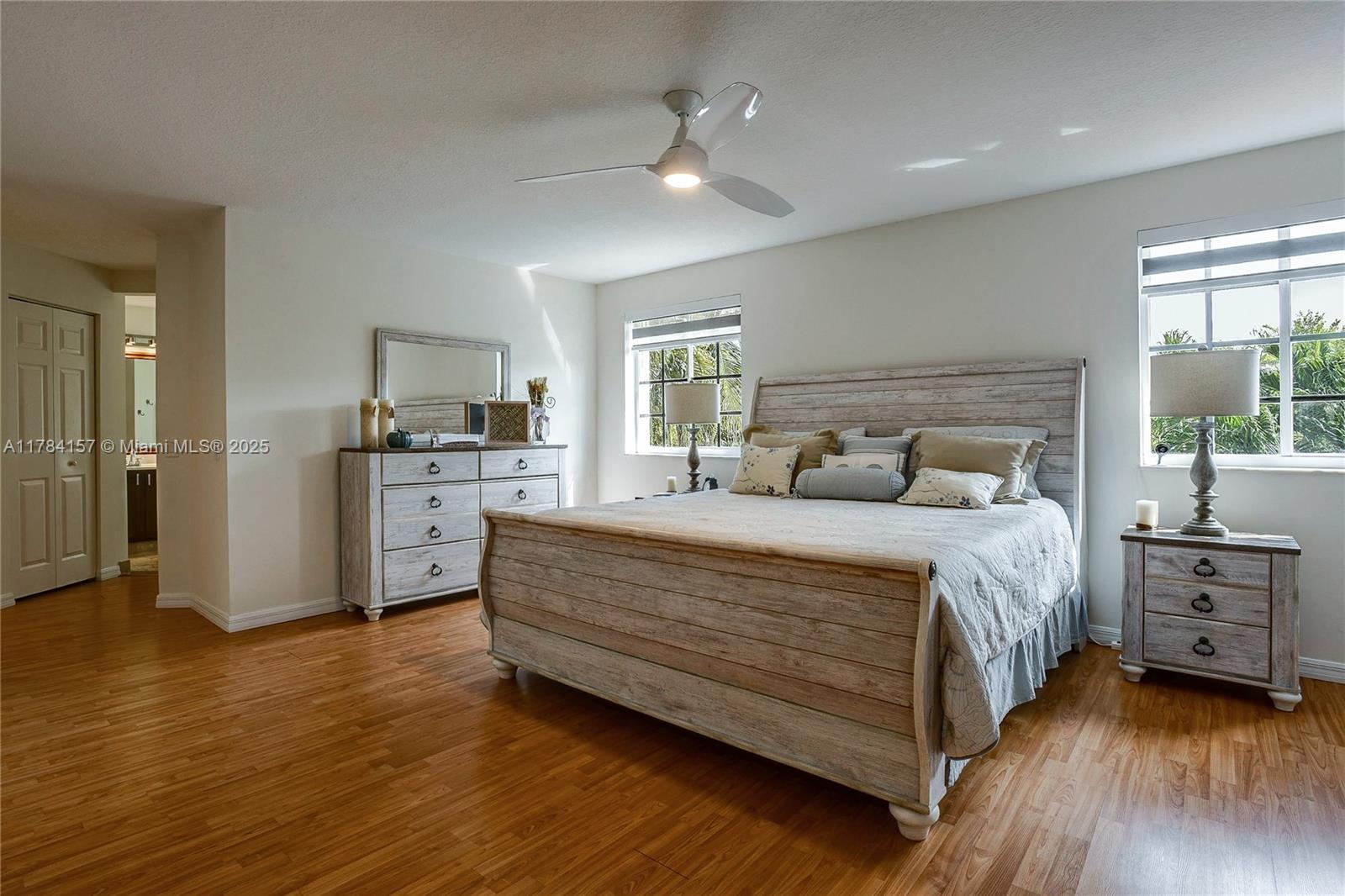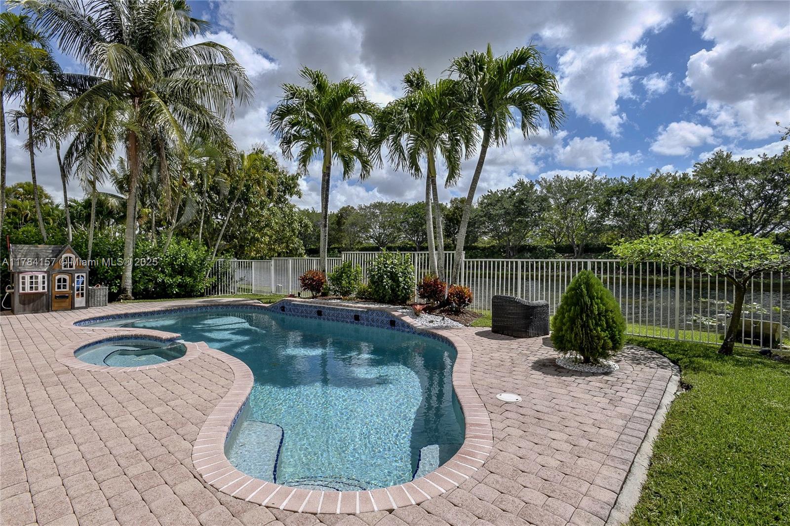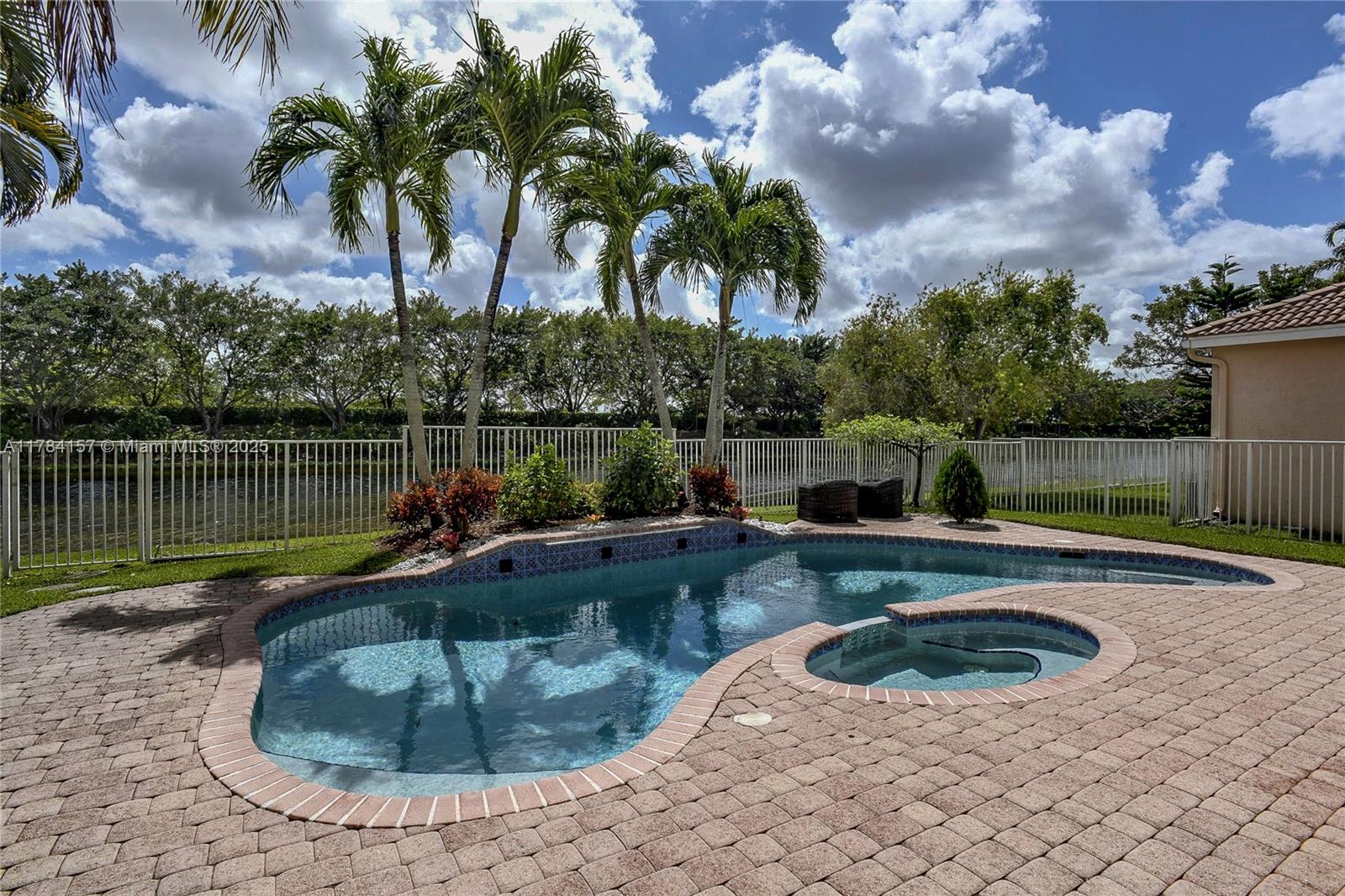 Gorgeous waterfront home situated in the highly desired gated community of THE RIDGES with resort-style amenities. This spacious floor plan features 5 BEDROOMS, 4 BATHROOMS and a 3-car garage. There is one bedroom with a full bathroom conveniently located on the main level. The main suite has a large private sitting area in addition to a private extra room that can be used as a gym, or an office. The open concept kitchen is designed to entertain while offering amazing views of the saltwater pool and spa, lush landscape and the beautiful lake. The patio area is the private oasis buyers will love to relax in and enjoy the view. Walking distance to TOP-RATED A+ PUBLIC SCHOOLS, among the most desired in town.
