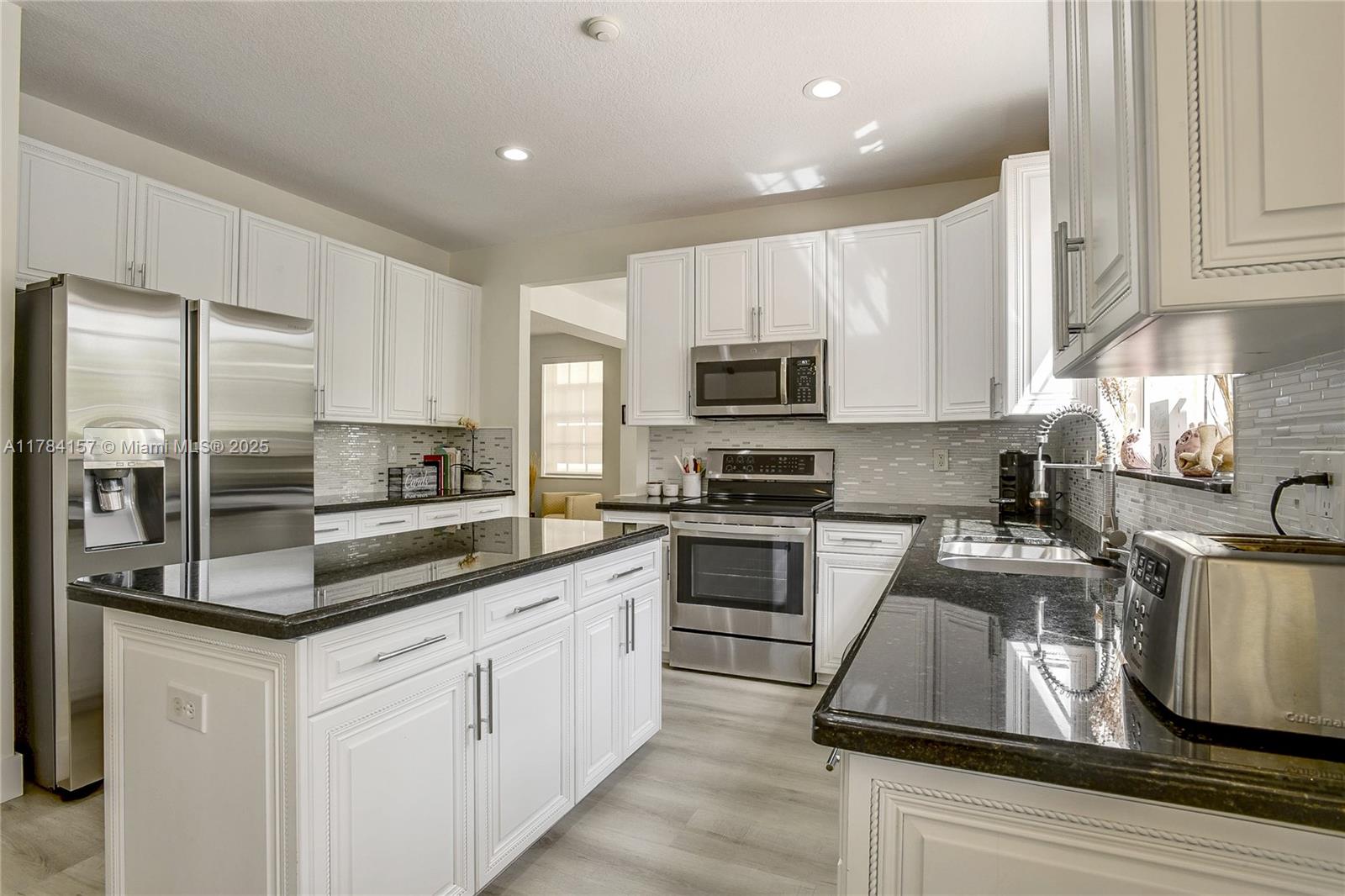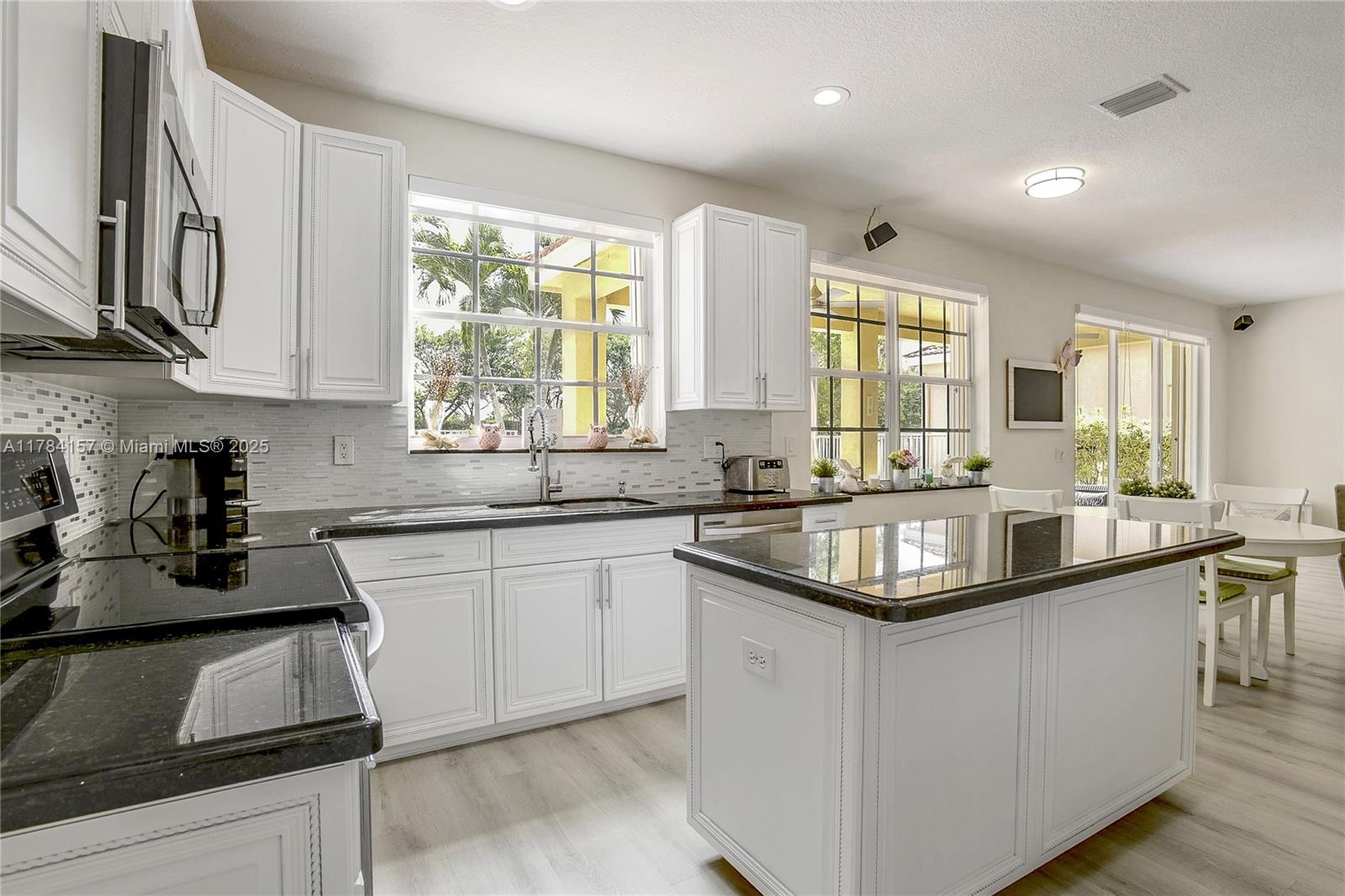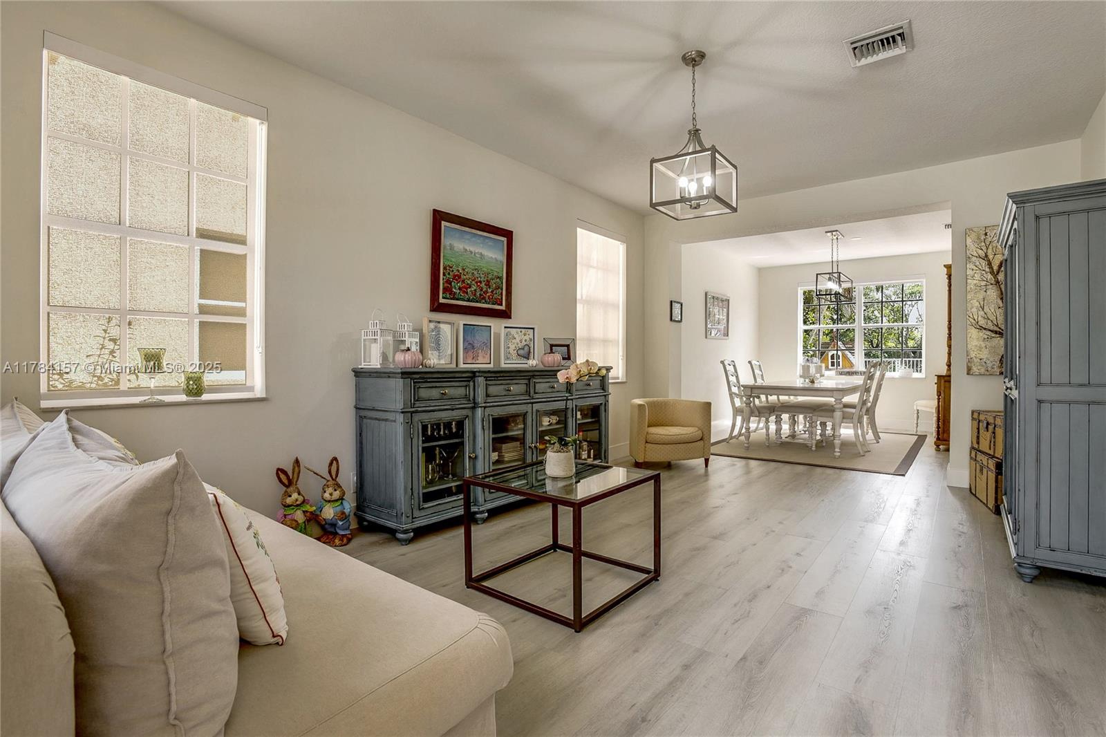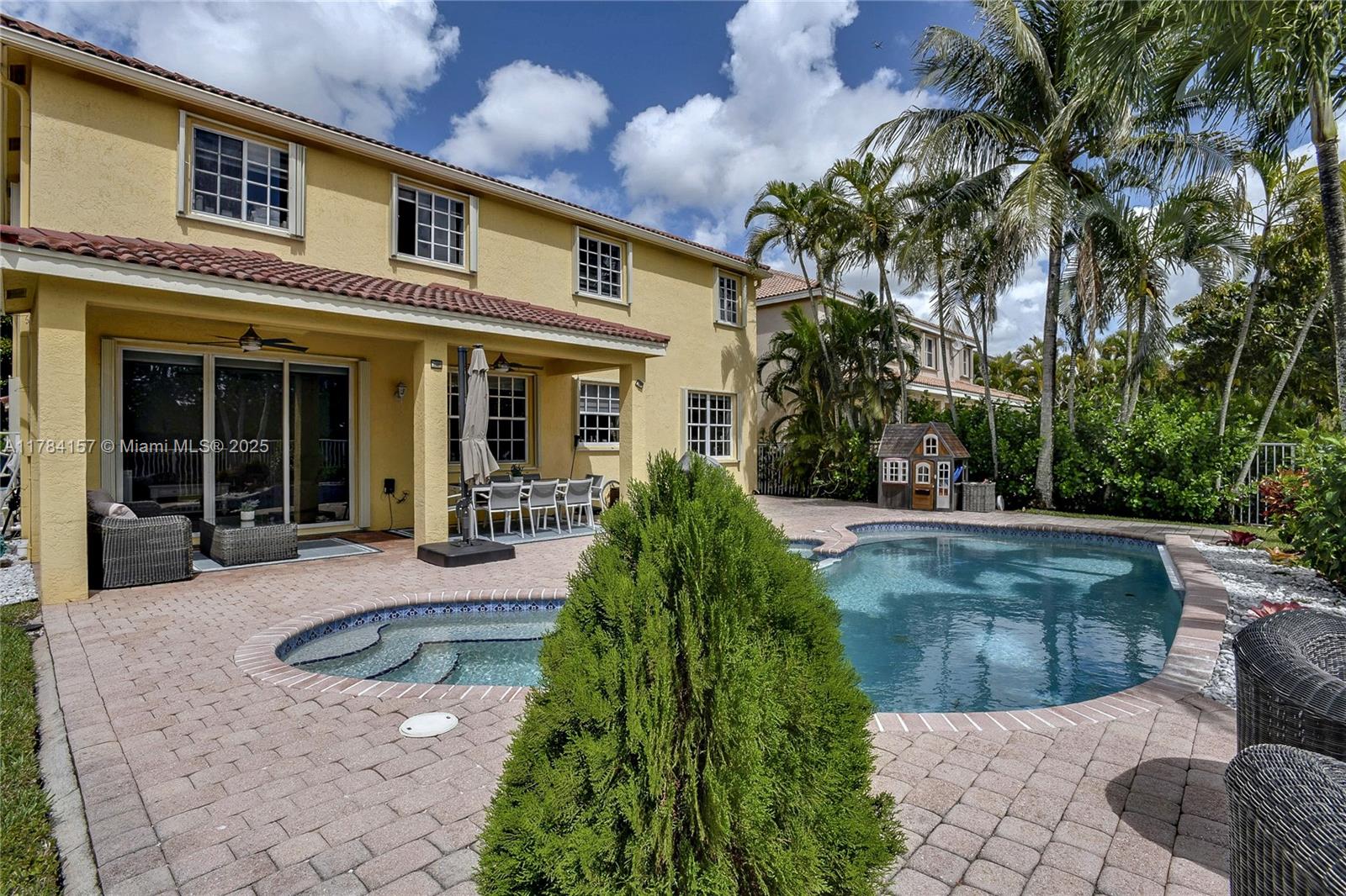Gorgeous waterfront home situated in the highly desired gated community of THE RIDGES with resort-style amenities. This spacious floor plan features 5 BEDROOMS, 4 BATHROOMS and a 3-car garage. There is one bedroom with a full bathroom conveniently located on the main level. The main suite has a large private sitting area in addition to a private extra room that can be used as a gym, or an office. The open concept kitchen is designed to entertain while offering amazing views of the saltwater pool and spa, lush landscape and the beautiful lake. The patio area is the private oasis buyers will love to relax in and enjoy the view. Walking distance to TOP-RATED A+ PUBLIC SCHOOLS, among the most desired in town.