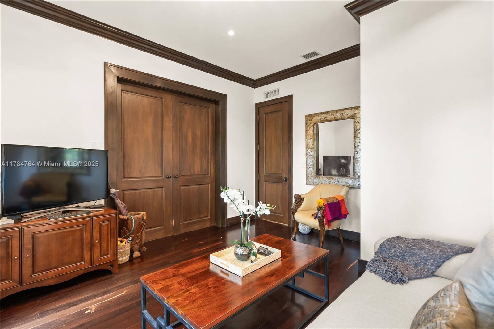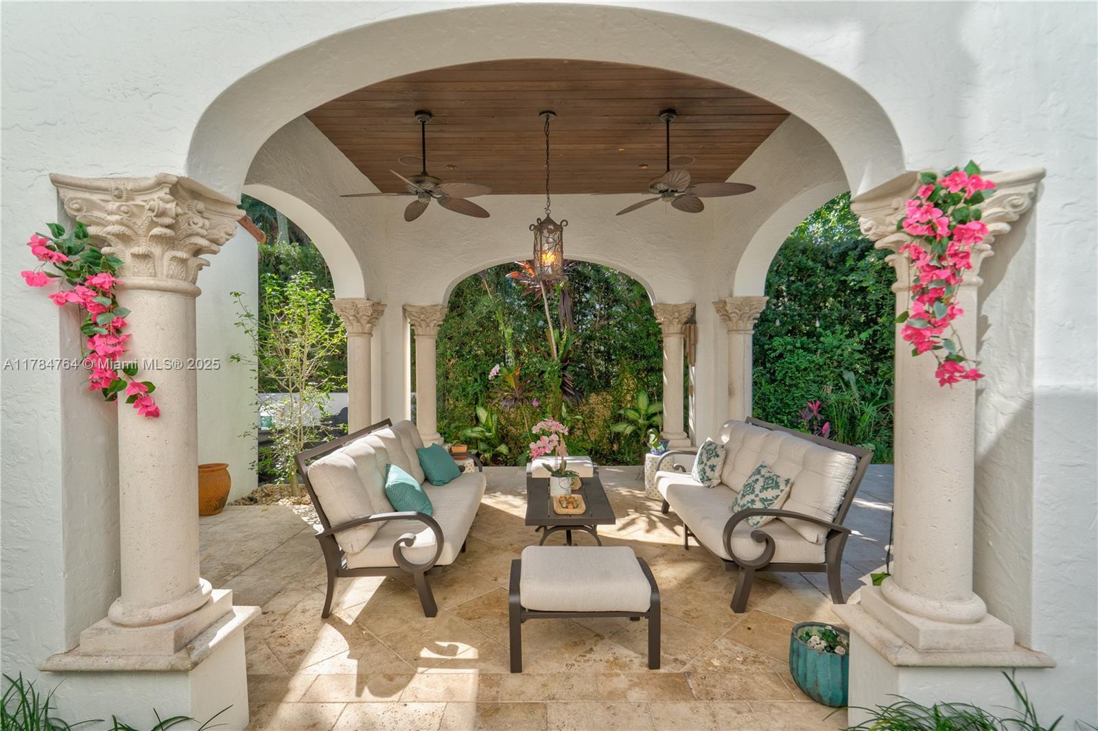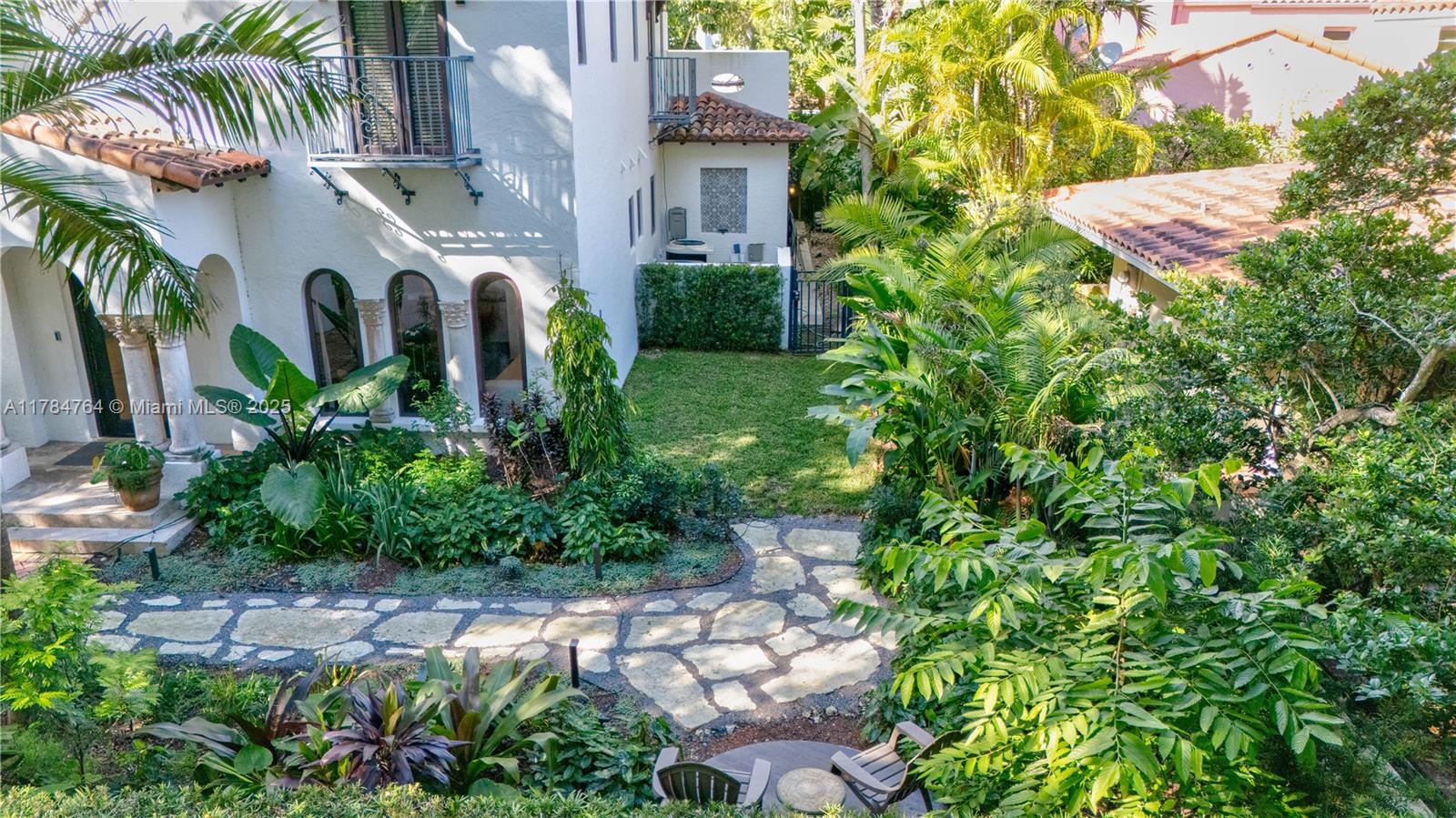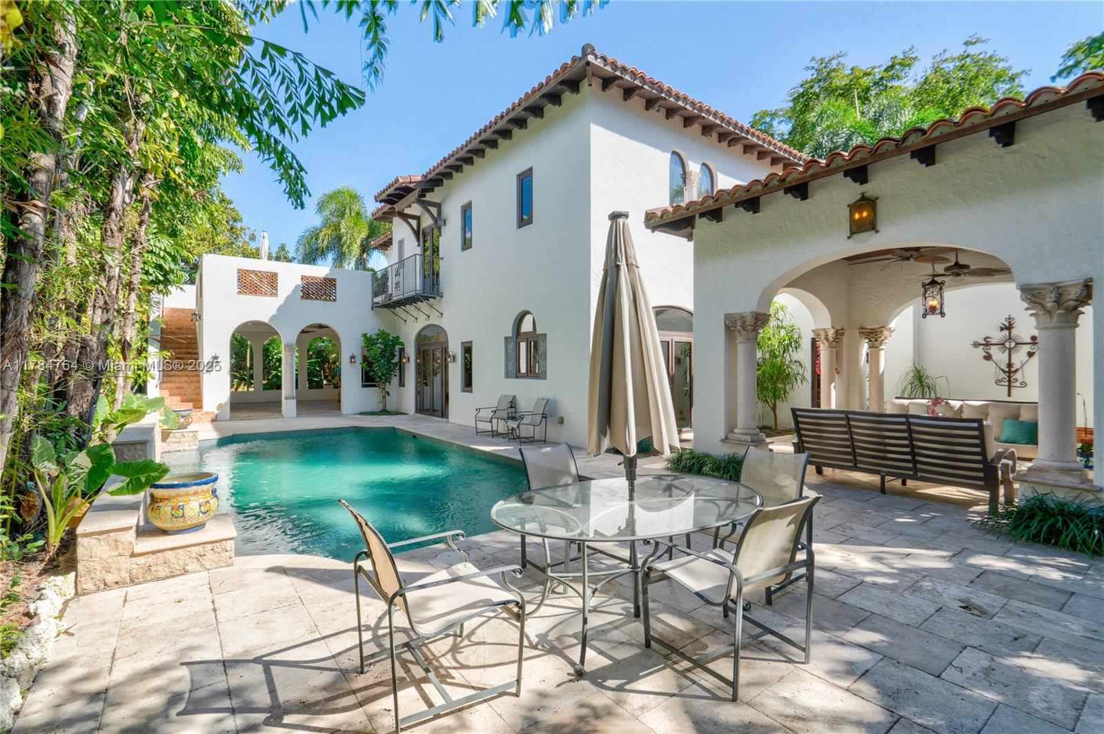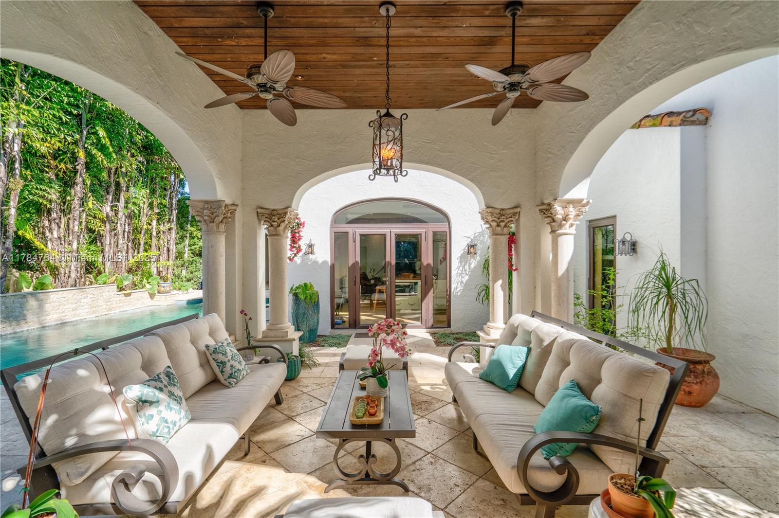 Fully walled, exotically landscaped to be lush and private. Built in 2010 with the highest attention to architectural detail and the highest energy standards. 10,000 sq ft lot with 3,879 sq ft of A/C living space plus 1,245 sq ft of additional space and an air conditioned garage/home gym. 5 + 1 bedroom, 6 bath, with high ceilings. La Finestra Italian impact windows and doors, stone & hardwood flooring, and smart home lighting. The eat in chef’s kitchen with exotic hardwood island includes natural gas Wolf and Sub Zero appliances. The primary bedroom leads to a private sun terrace with stairs to the heated salt water pool. Purposely built for quiet weekends at home and for entertaining family and friends. Close to everything on a gorgeous canopy tree lined street. This one will not last.