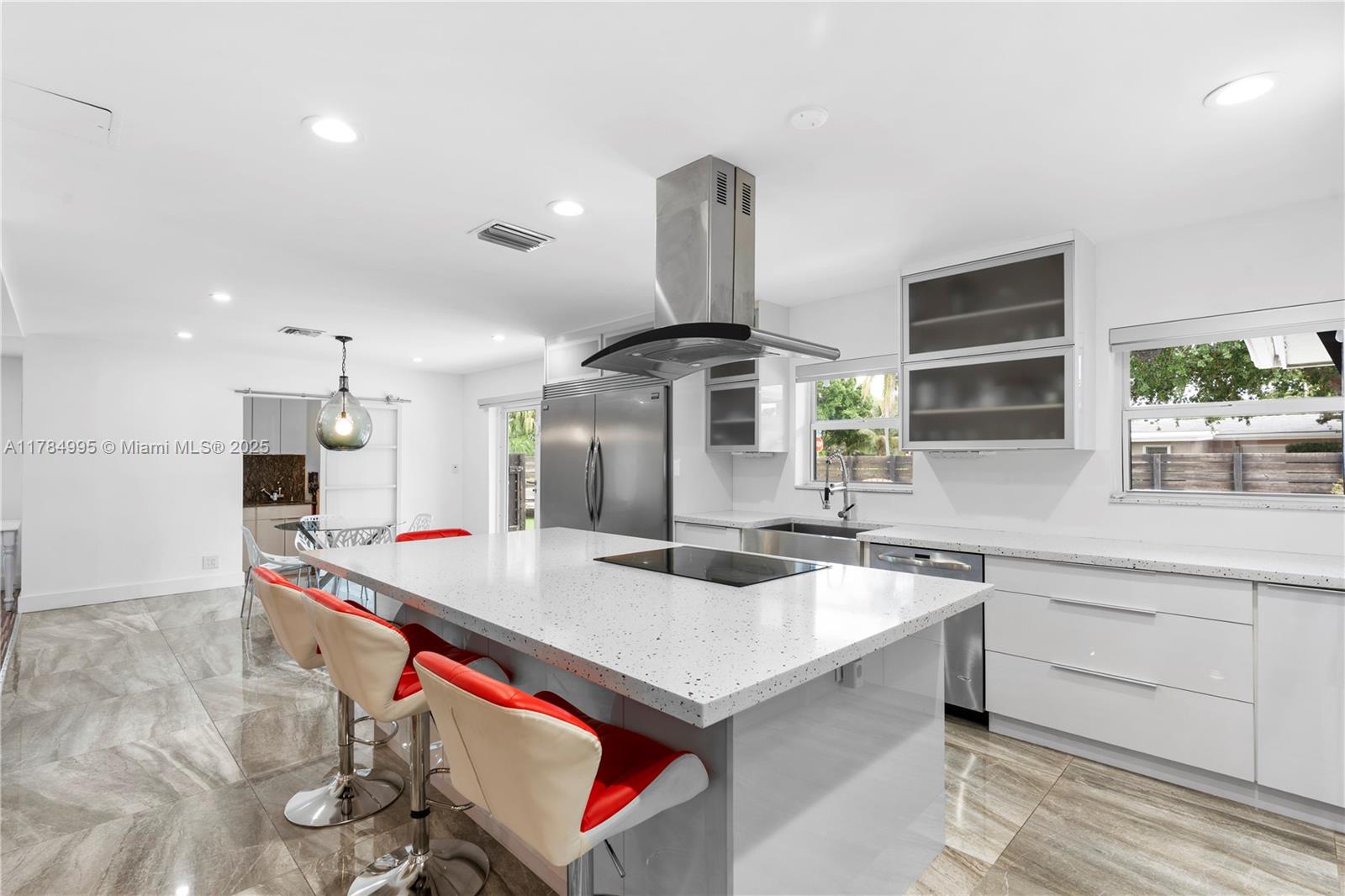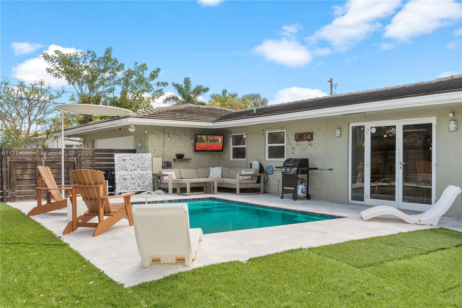 Located on an oversized corner lot in the prestigious Coral Ridge Country Club neighborhood, this 3-bedroom, 2,700+ sqft residence offers the ultimate in South Florida living - seamlessly blending indoor comfort with outdoor entertaining. The home features a custom-designed chef’s kitchen with an expansive island, induction cooktop, professional-grade hood, and oversized built-in refrigerator/freezer. The open-concept layout flows effortlessly into the main living and dining areas. The primary suite is a private retreat with a massive walk-in closet and a spa-inspired bath. Step outside to your private backyard, a new heated saltwater pool, hot tub, lush landscaping, a 2-car garage, and two oversized driveways. All just minutes from the beach, top-rated schools, restaurants, and shopping.