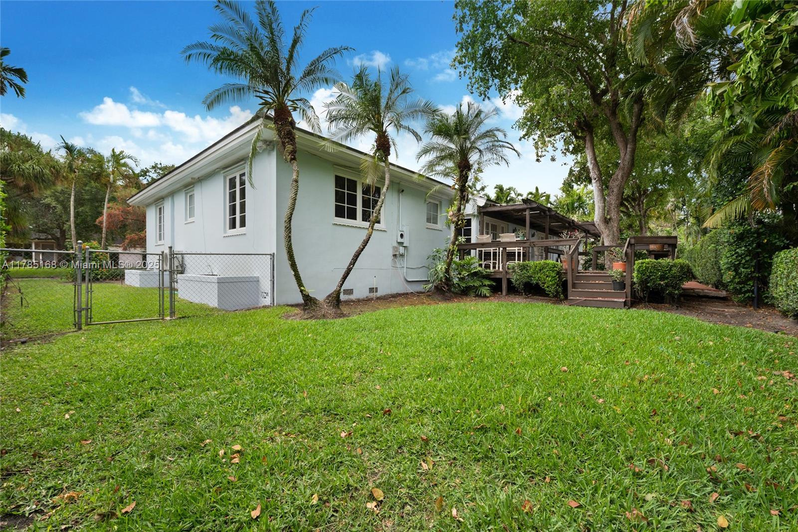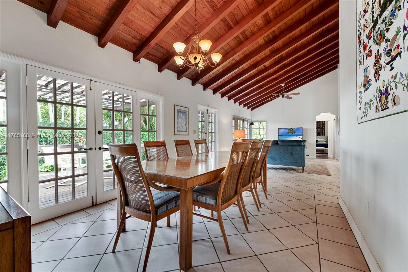 Thoughtfully updated and well maintained, this charming home blends timeless character with modern upgrades. Gorgeous high vaulted ceilings and plenty of natural light shining in. A spacious kitchen addition which includes a stunning granite center island, gas stove, built-in wet bar, complete with wine cooler and ice maker, and walk-in pantry closet. Roof replaced in 2022. Wood floors run throughout the home, with tile in the dining and Florida room, adding texture and warmth to each space. Impact windows and shutters for the entry and French doors. Two septic systems, and A/C less than 5-years old. The outdoor deck is perfect for slow weekend mornings. A perfect blend of function and comfort in a serene setting on a 12,500 lot.