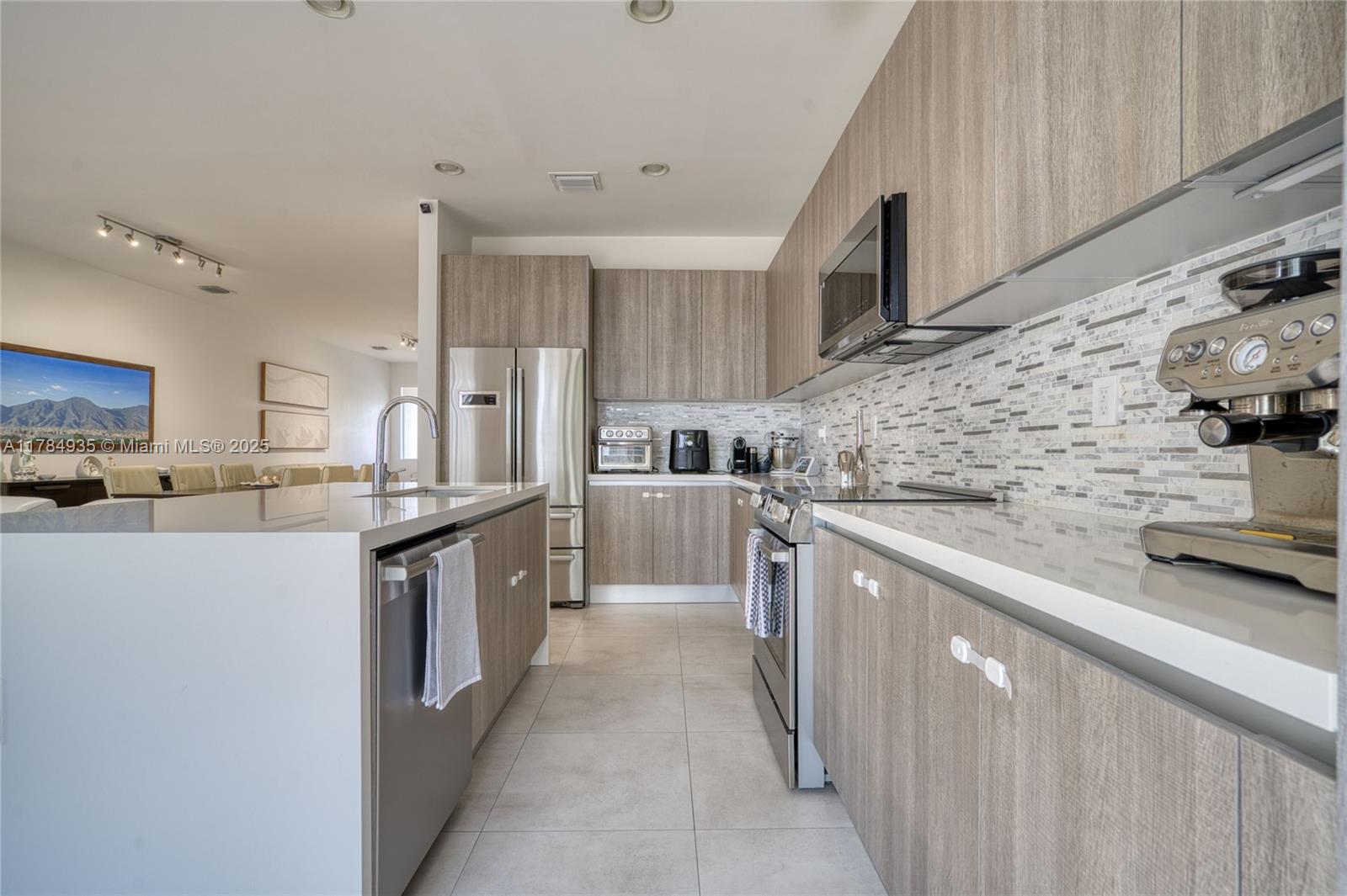 Welcome home to elegant style and comfort! This bright and spacious modern townhouse is meticulously maintained and ready for you to move right in. The heart of the home is the beautiful kitchen, boasting premium stainless steel appliances and luxurious quartz countertops – a theme repeated in the bathrooms. Chic, large floor tiles enhance the modern aesthetic. As a smart home, it offers modern conveniences at your fingertips. Located in a vibrant, family-friendly community complete with resident amenities and dedicated security patrols ensuring a safe environment. Its central location is a commuter's dream, just moments from major highways, fantastic shopping centers, popular restaurants, and local shops. Check the 360 virtual tour for more details!