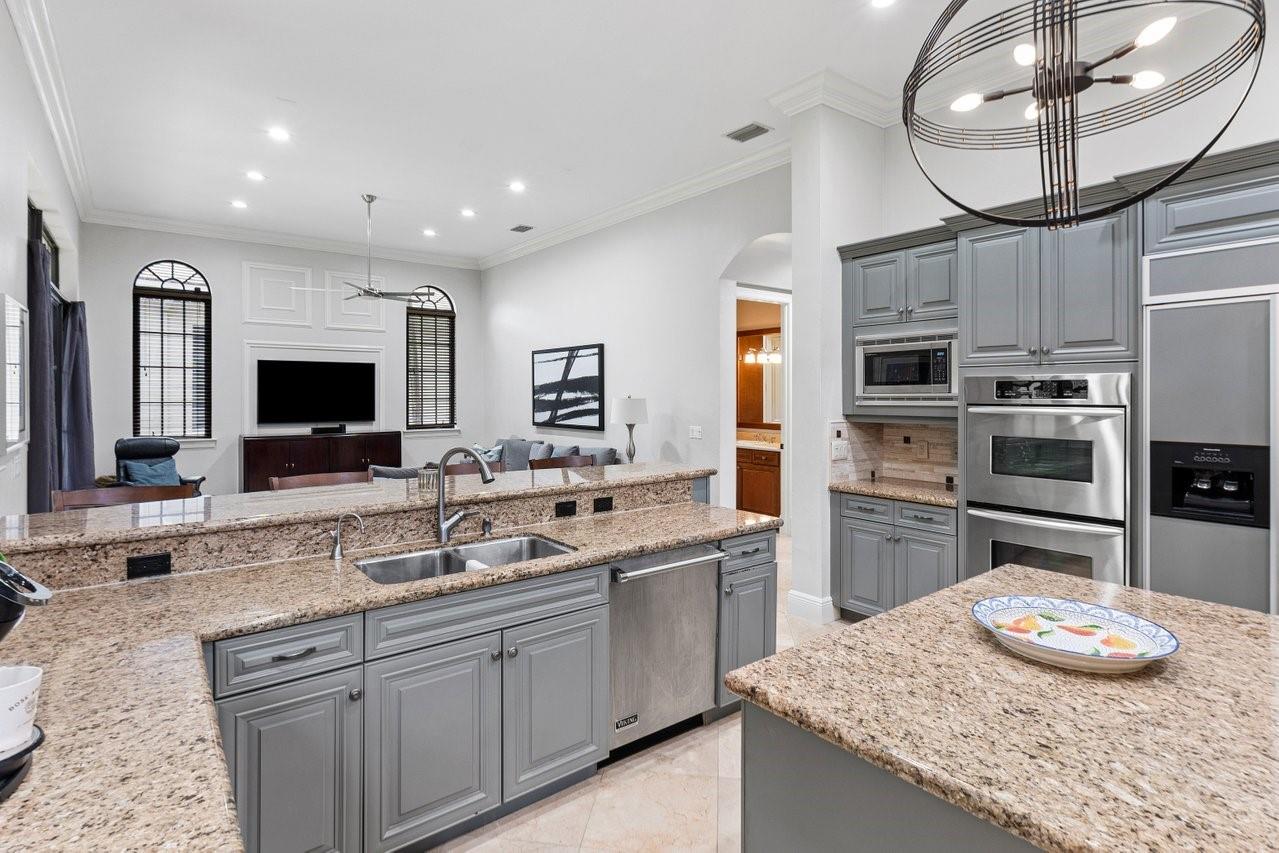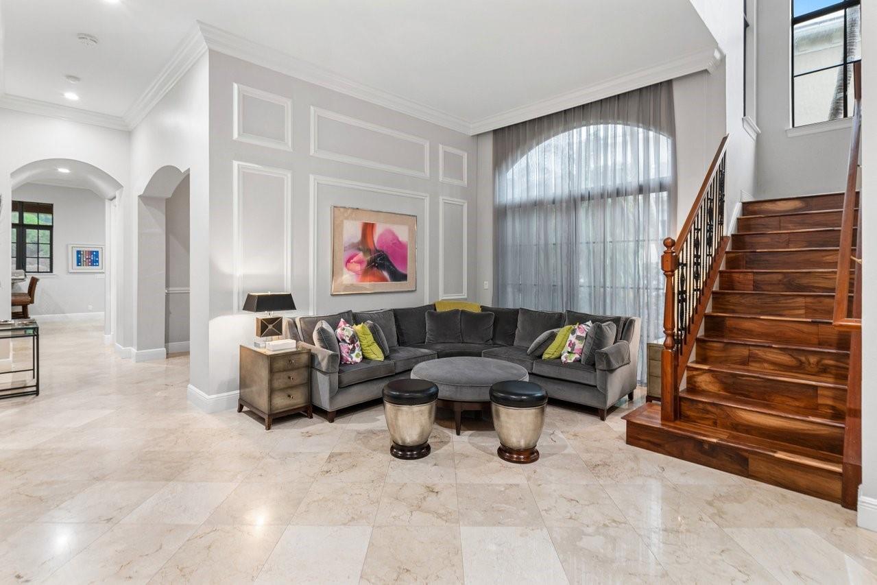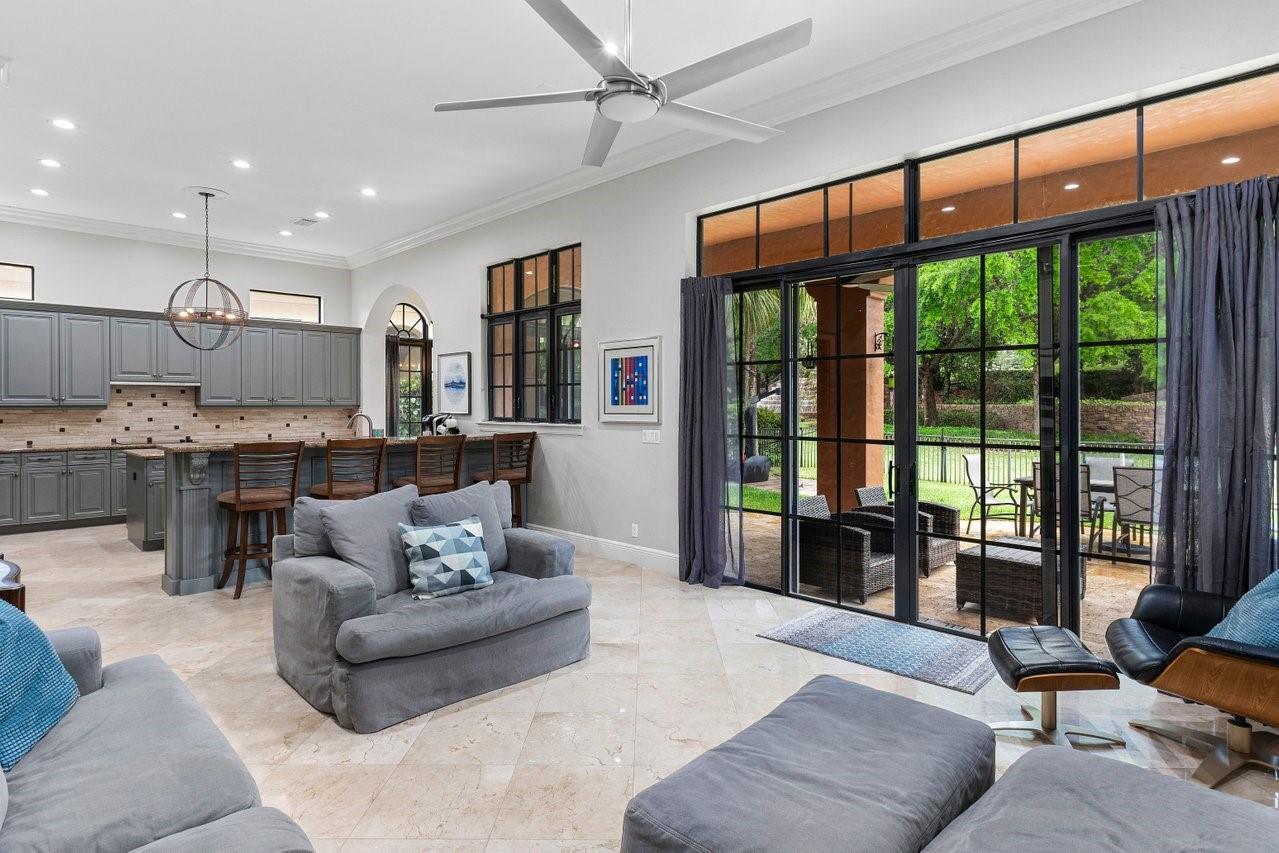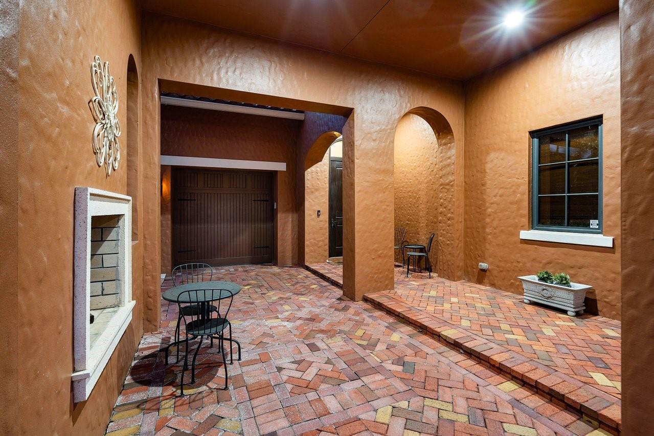 Parkland Golf and Country Club! Idyllic curb appeal with a porte-cochere, charming courtyard with fireplace & balcony. The light-filled interior offers formal living spaces bathed in soft natural light, via walls of glass doors that open to private outdoor spaces. The expansive family room seamlessly connects to a generous open island kitchen & a sunlit breakfast nook. The Primary suite is a private sanctuary, featuring a spa-inspired bath & a balcony overlooking the tranquil backyard. As the sun sets, the magic begins in the backyard via the lighted water features/waterfalls. Other offerings: a 3-car garage, impact windows/doors, loft etc. Timeless elegance blends with resort-style living.