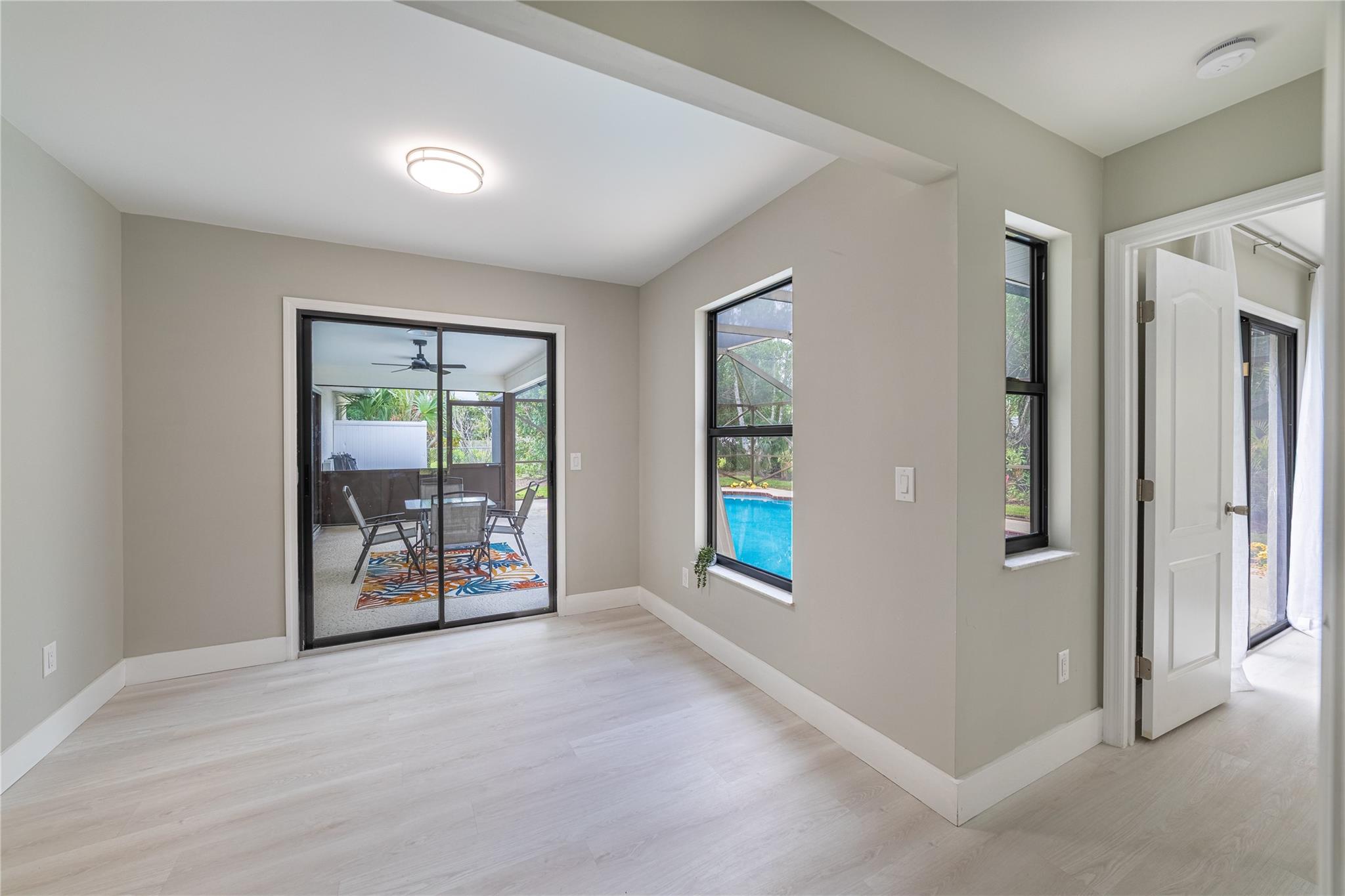 Improved price! Fall in Love with this beautiful East Port St. Lucie Pool Home - only 15 minutes to Jensen Beach! This beautifully updated and fully turnkey 4-bedroom (3 + bonus room), 2-bath pool home features a DEN, 2-car garage, and a flexible layout—perfectly located in desirable East Port St. Lucie with no HOA! Highlights include: • NEW Roof (2023) • NEW Pool Screen & Pump • NEW Gutters • NEW Luxury Vinyl Plank Flooring • Fresh Interior & Exterior Paint • NEW Appliances + Grill • Cozy Fireplace • NEW Dimmable Chandeliers & Kitchen Lighting • NEW Smart Thermostat • Beautiful Upgraded Shed • Freshly Painted Garage