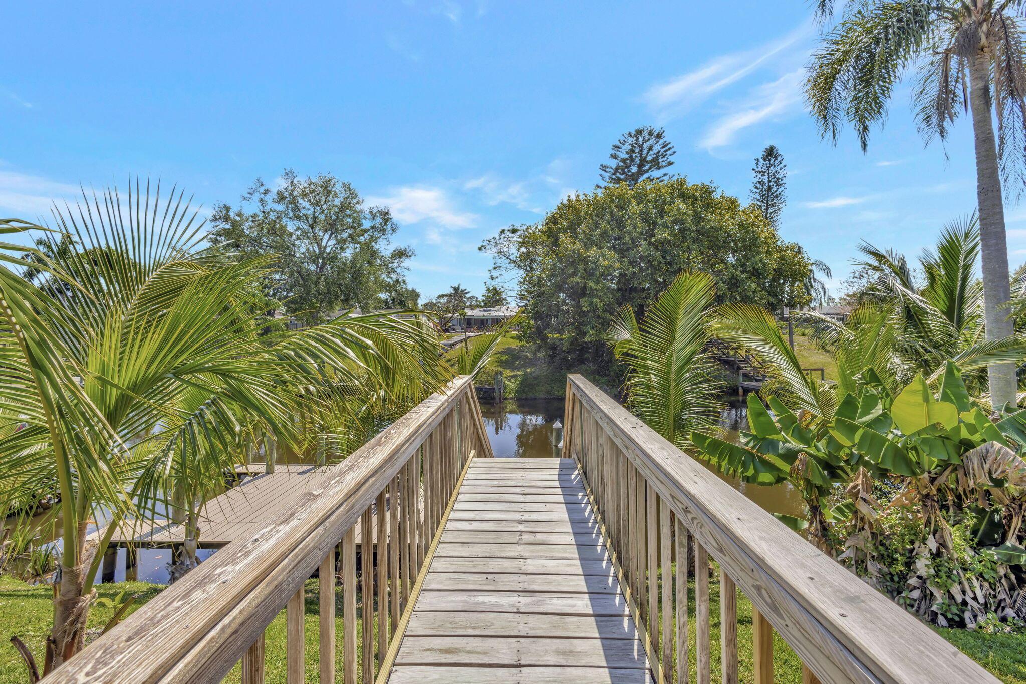 Great 3 bedroom 2 bath waterfront home on huge .4 acre lot with new roof (April 2024) and dockage for a 50 foot boat. Single car garage and separate outbuilding/workshop that could be a second garage. Room for a pool and to expand house footprint. Paver drive, screened patio, indoor laundry, nicely appointed kitchen, built in window seats in bedrooms, covered porch, tile floors. This house is cute and cozy and has huge potential. Fish from your own dock, and only a short boat ride to the inlet and ocean. Fix bridge clearance is 25 feet!