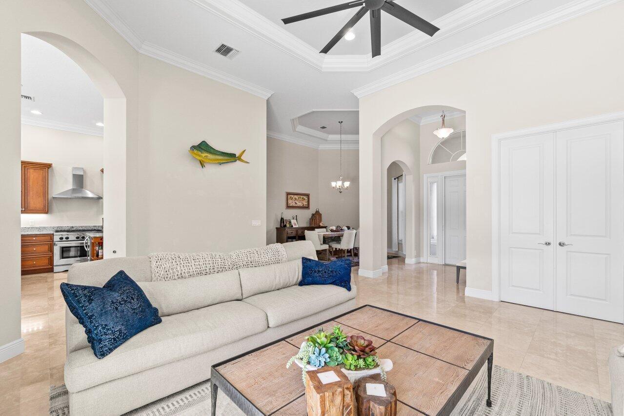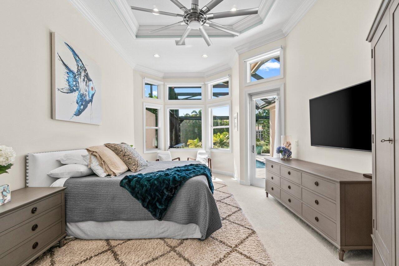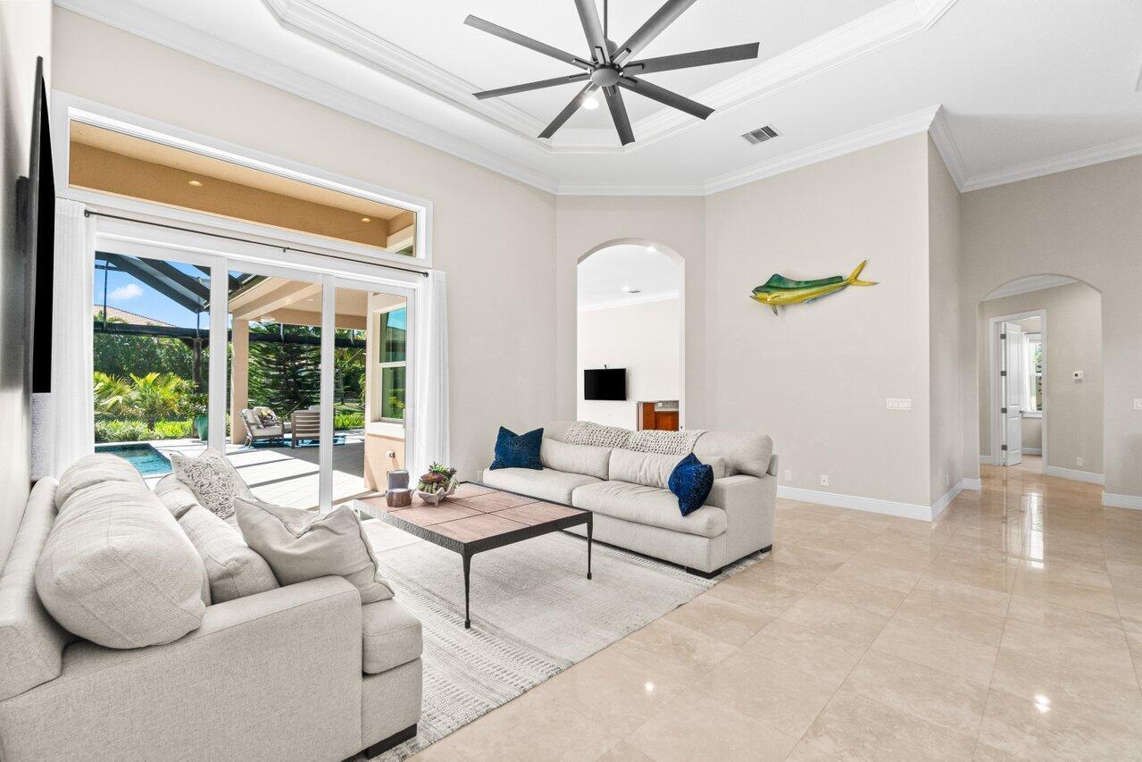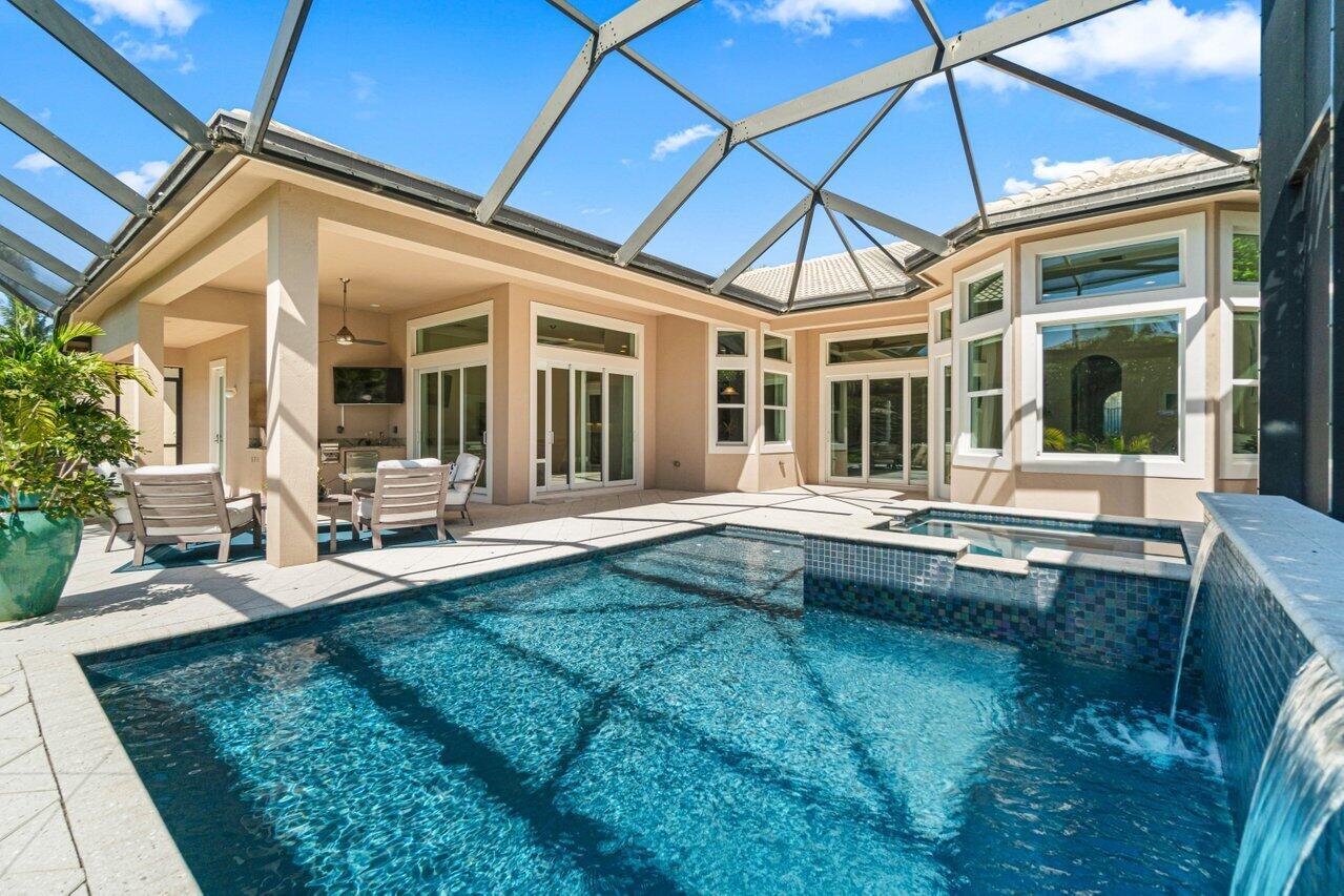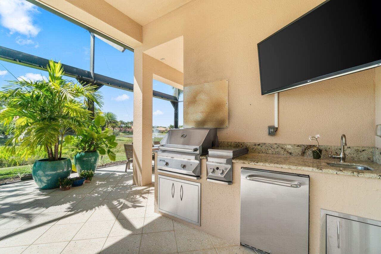 Experience resort-style living in this single-story home, perfectly nestled on a beautifully landscaped lot with lake views. Located in the prestigious community of Azura, this impeccably maintained residence offers 4 bedrooms plus office/den, 3.5 bathrooms, and a desirable 3-way split floor plan. The chef's kitchen features a center island, 6-burner gas cooktop, walk-in pantry, ample storage, and premium SS KitchenAid appliances. Sliding glass doors lead to a covered patio with a Miami-Dade approved screened enclosure, a heated saltwater pool and spa with new Diamond Brite finish and glass tile, and a fully equipped summer kitchen--perfect for entertaining or relaxing while enjoying sunset views. The expansive primary suite serves as a serene retreat, complete with a spa-like bathroom
