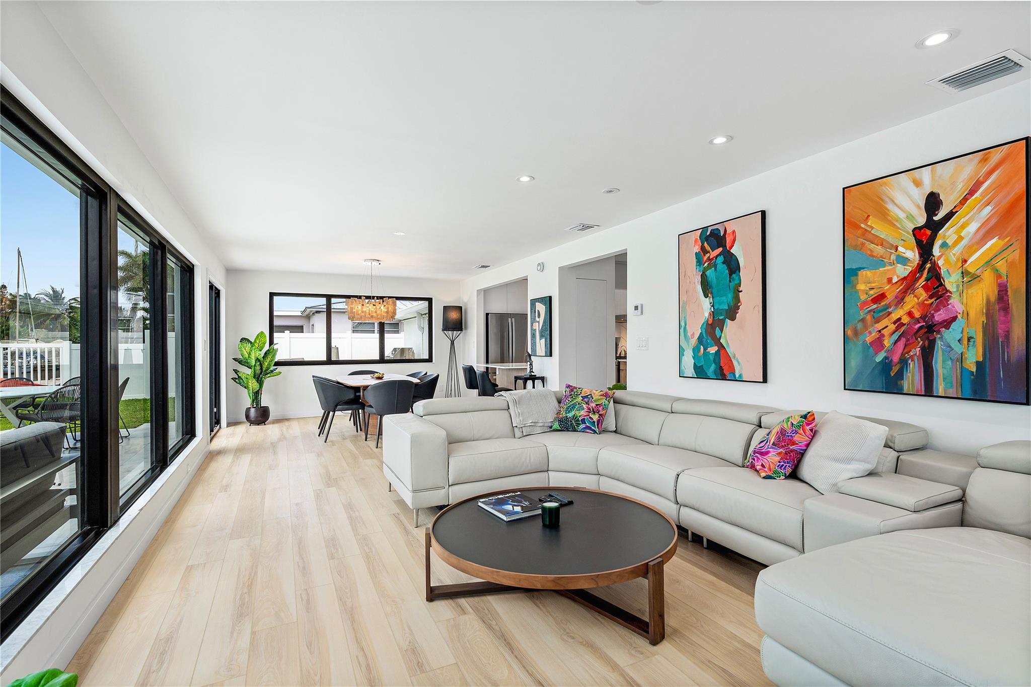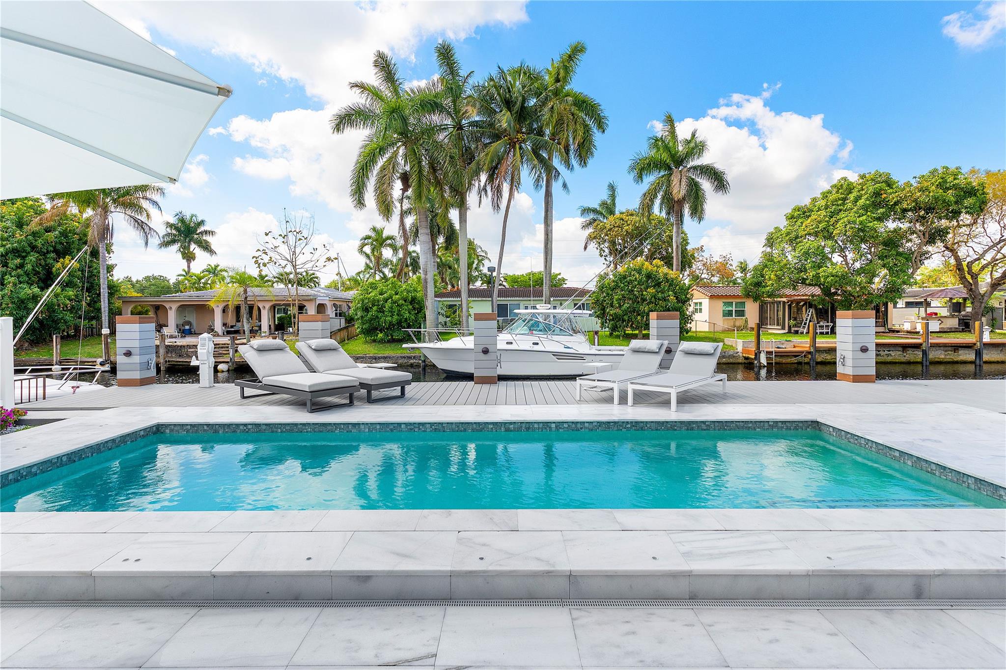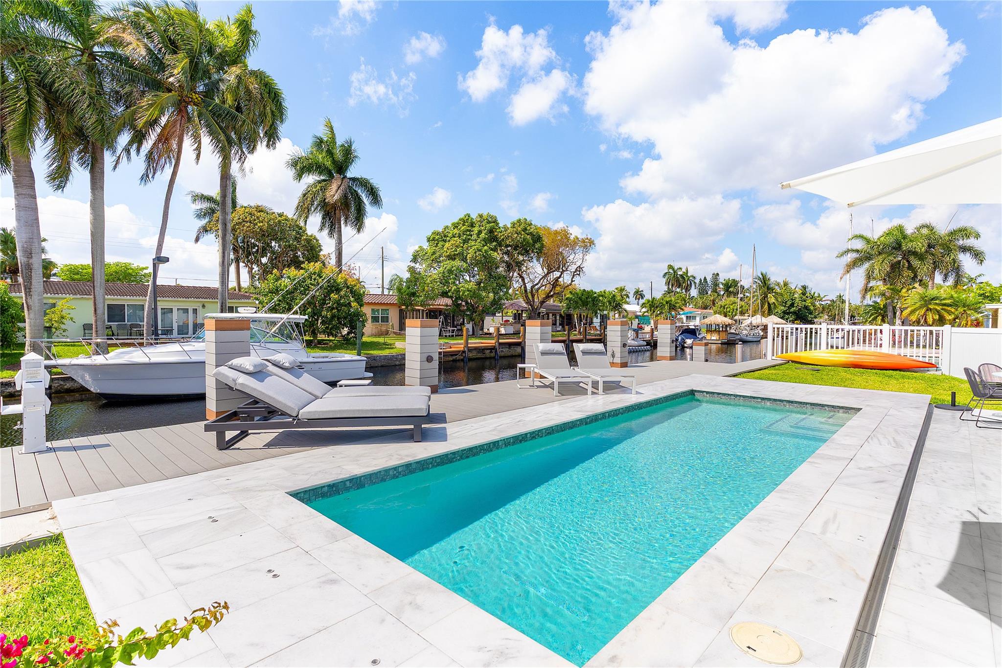 Remodeled Waterfront Pool Home w/65' Waterfront & No Fixed Bridges+oversized 2-Car Garage. This turnkey residence has been remodeled & thoughtfully designed for comfort, style, & functionality. Raised & reinforced seawall with new pilings, 50A electric, oversized composite deck with step-down area. Impact windows & doors throughout, new flooring & high-end finishes. Spacious oversized laundry & storage area, rare oversized 2-car garage, ideal for storage, toys, or a workshop. The backyard is your own private oasis with a newly built(2023) BBQ area, state-of-the-art heated pool(2023) & ample space for entertaining or relaxing under the South Florida sun. Nearby attractions; Intracoastal, beaches, top-rated schools, dining, & downtown Ft Lauderdale/Las Olas.