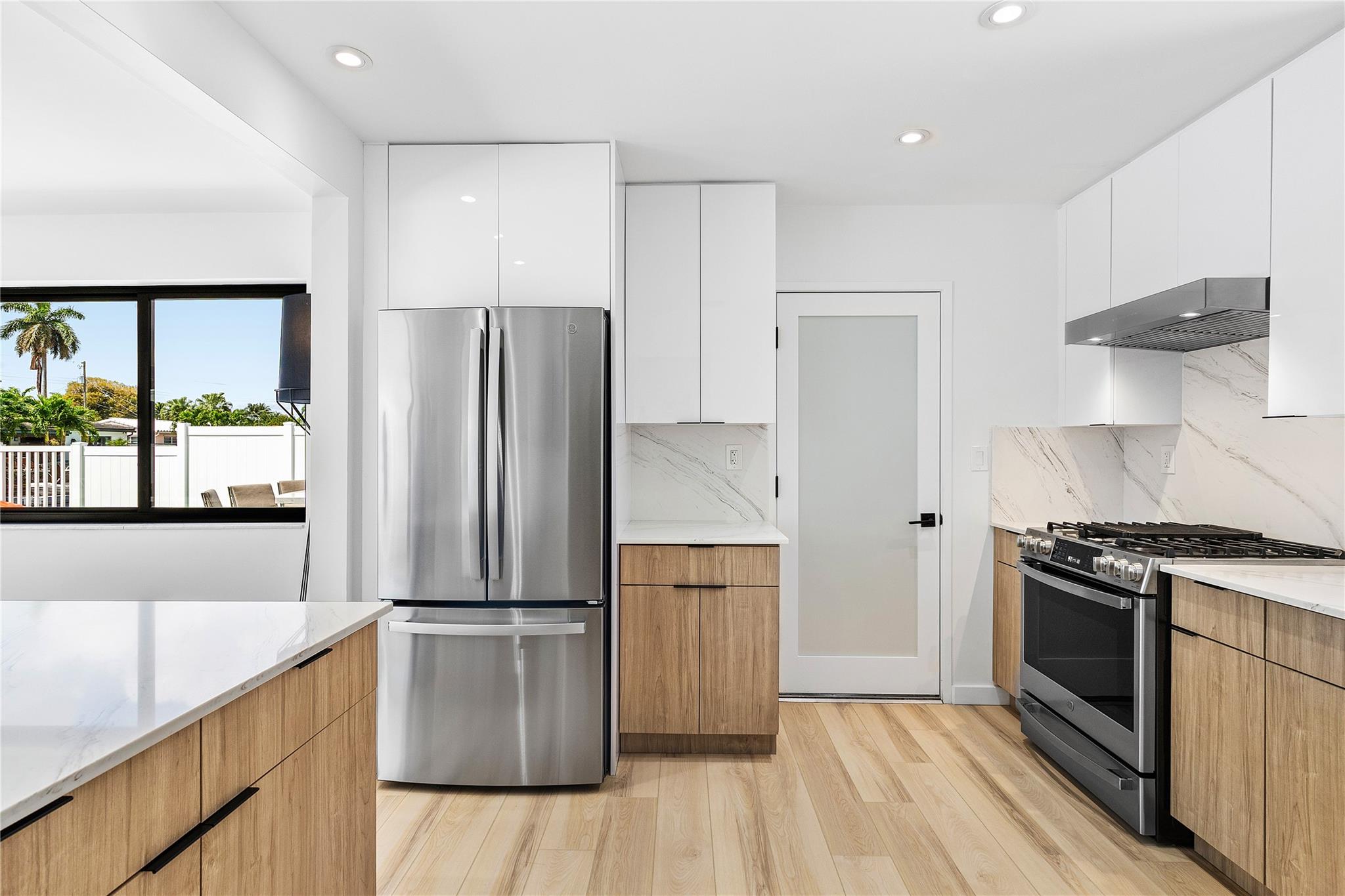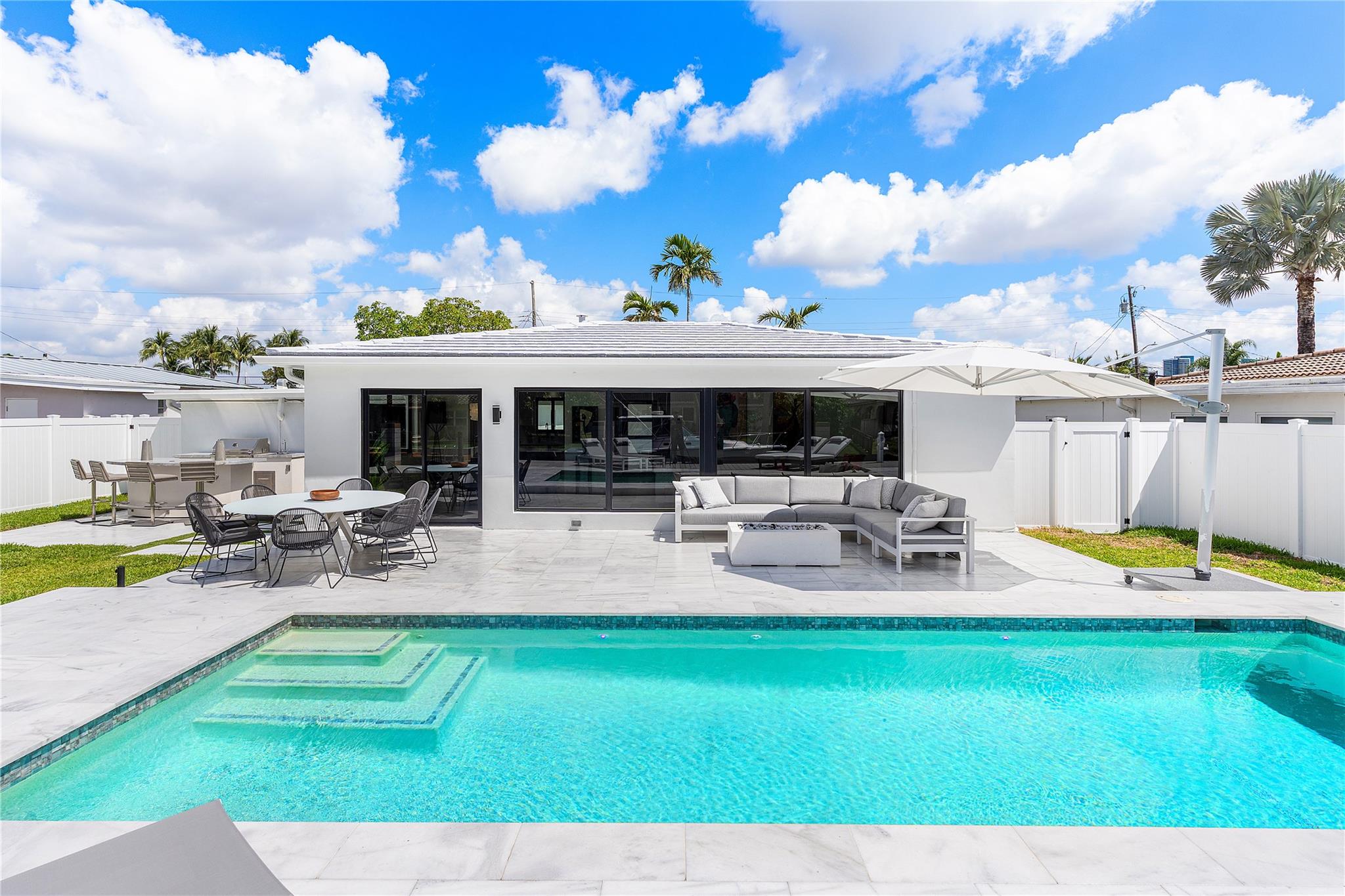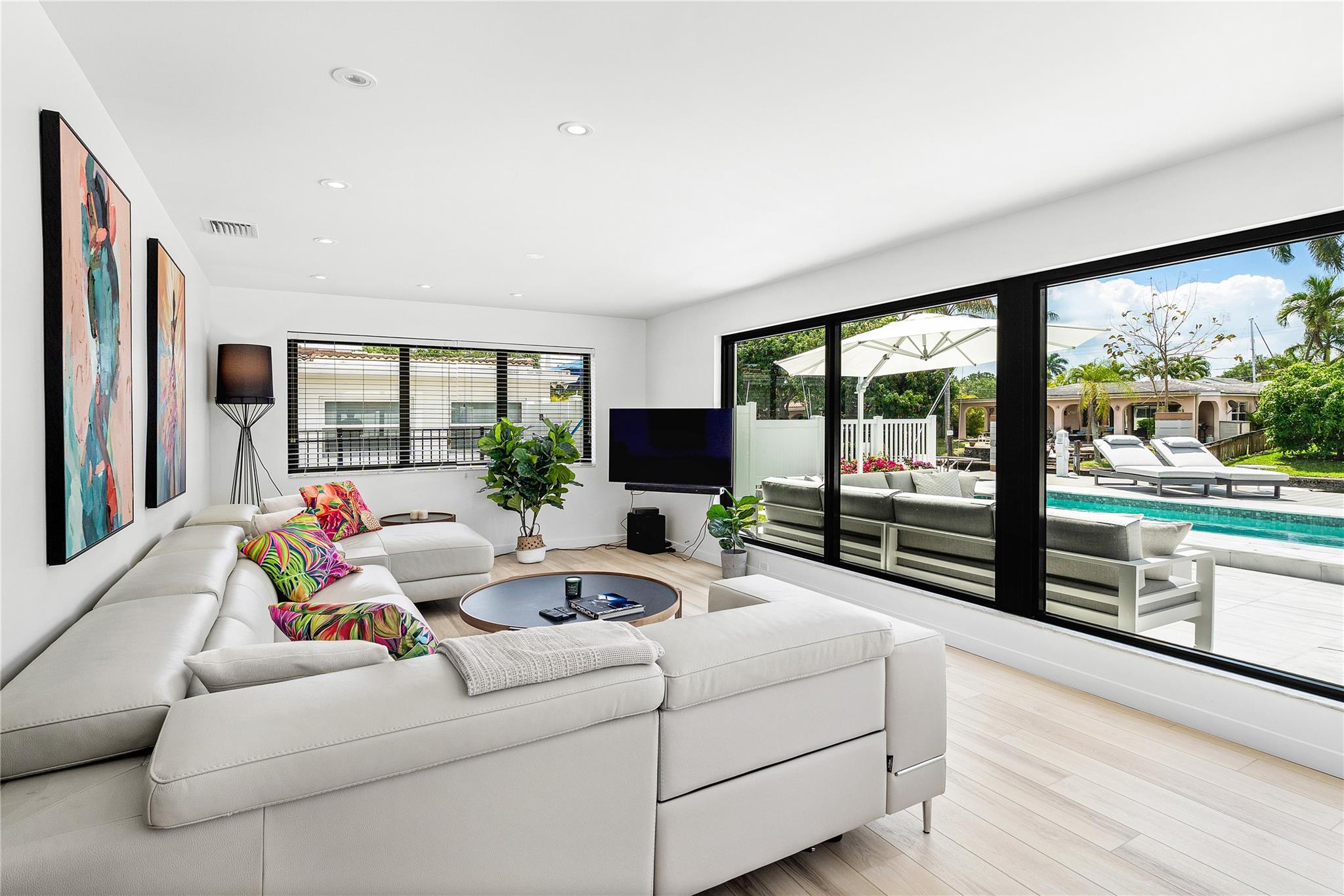 Remodeled Waterfront Pool Home w/65' Waterfront & No Fixed Bridges+oversized 2-Car Garage. This turnkey residence has been remodeled & thoughtfully designed for comfort, style, & functionality. Raised & reinforced seawall with new pilings, 50A electric, oversized composite deck with step-down area. Impact windows & doors throughout, new flooring & high-end finishes. Spacious oversized laundry & storage area, rare oversized 2-car garage, ideal for storage, toys, or a workshop. The backyard is your own private oasis with a newly built(2023) BBQ area, state-of-the-art heated pool(2023) & ample space for entertaining or relaxing under the South Florida sun. Nearby attractions; Intracoastal, beaches, top-rated schools, dining, & downtown Ft Lauderdale/Las Olas.
