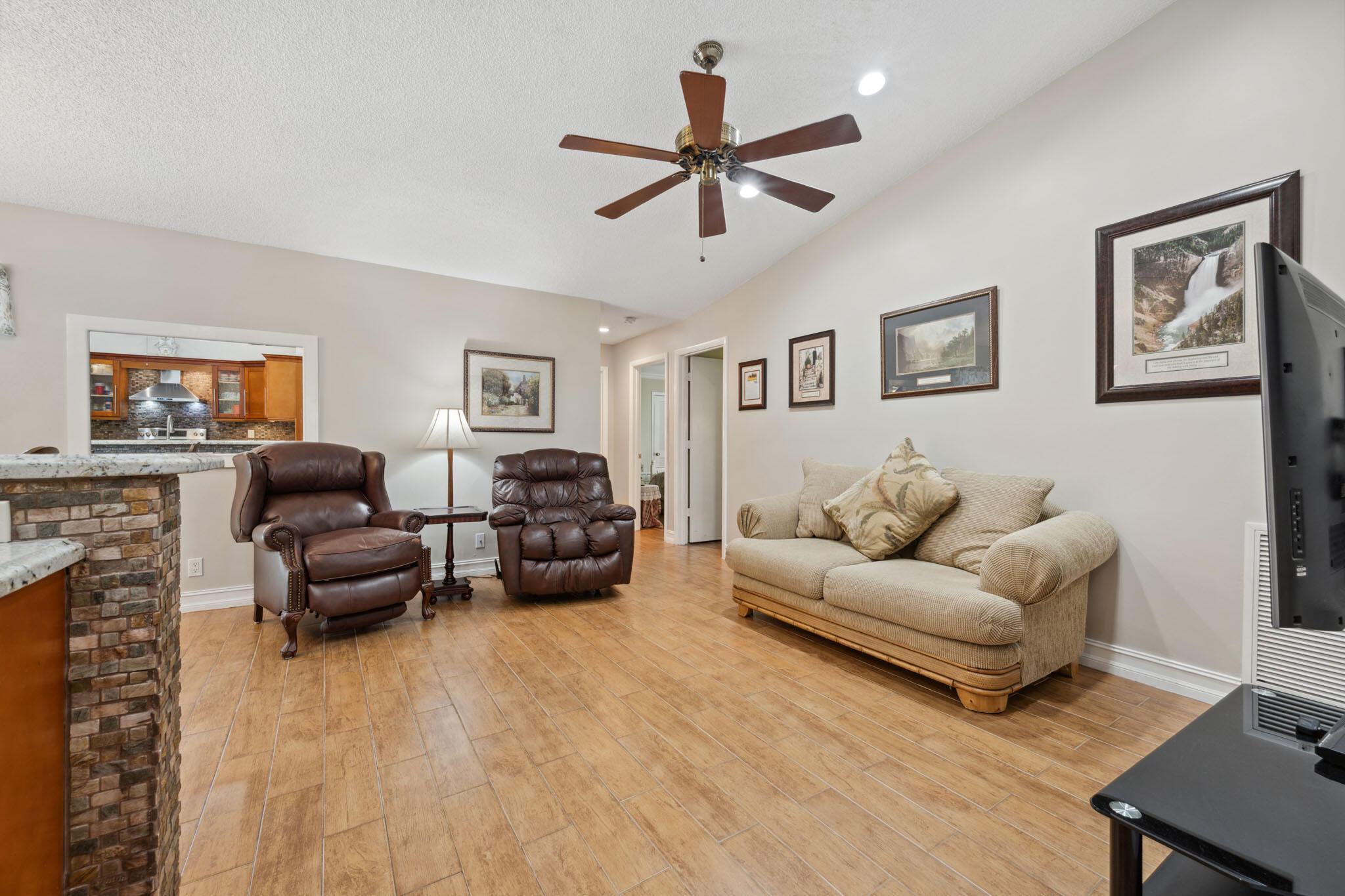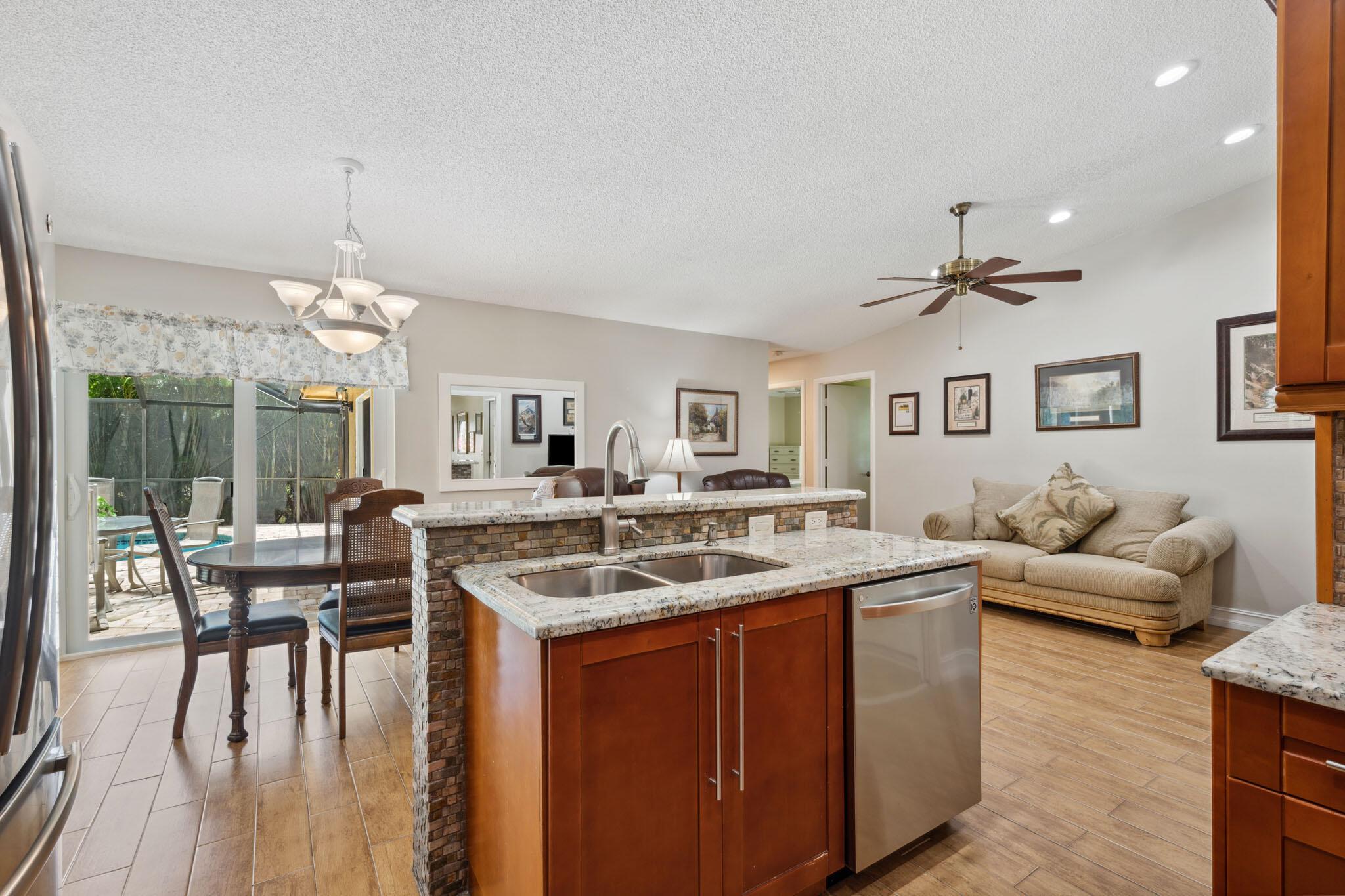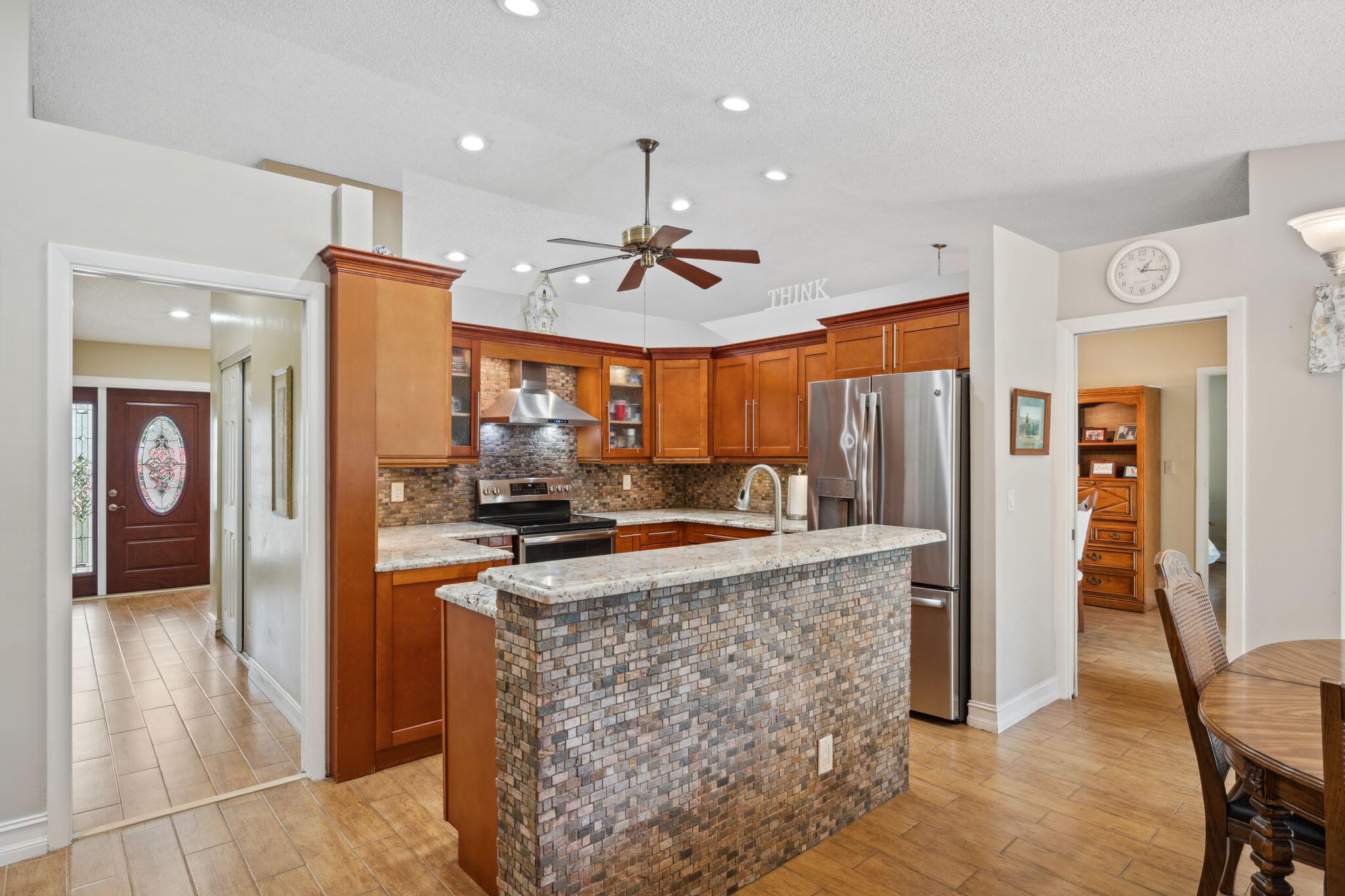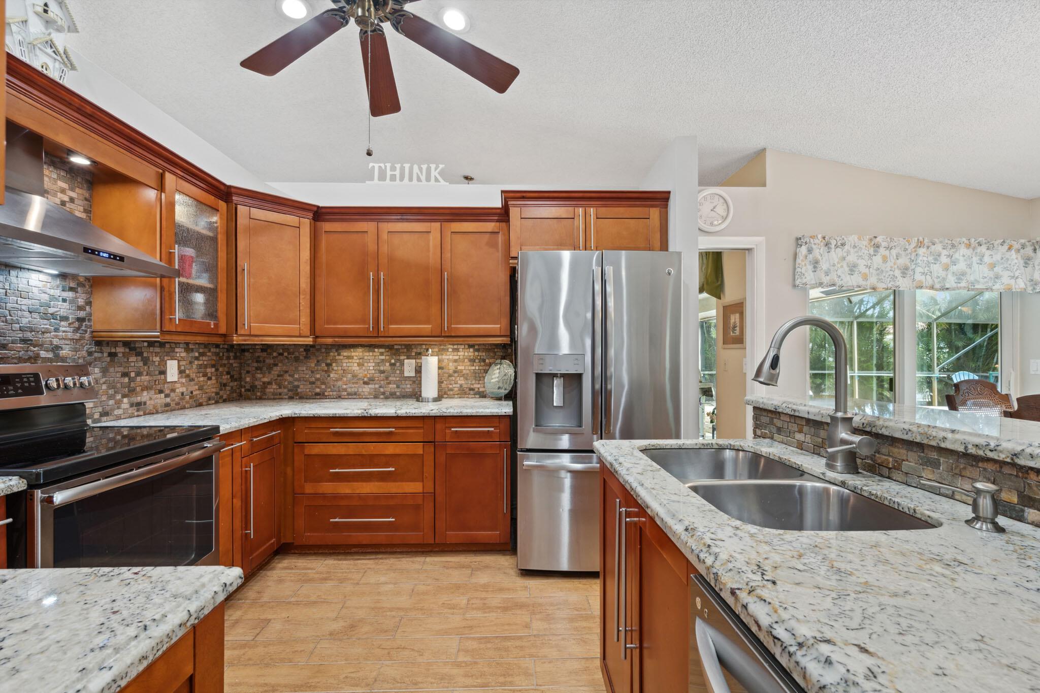 Imagine pulling into your driveway and being greeted by the impeccable curb appeal of this stunning single-family home nestled in the highly sought-after community of Hidden Lake of Boca Raton. This isn't just a house; it's the gateway to the vibrant East Boca Raton lifestyle you've always desired.Step inside and be bathed in natural sunlight cascading through the home, highlighting the elegant volume ceilings and the sophisticated wood-like tile flooring that flows seamlessly throughout.The heart of this home, the beautifully renovated kitchen (2017), is a chef's delight. Envision yourself preparing culinary masterpieces amidst sleek stainless steel appliances, atop gorgeous granite countertops, and within the timeless elegance of rich wood cabinets.