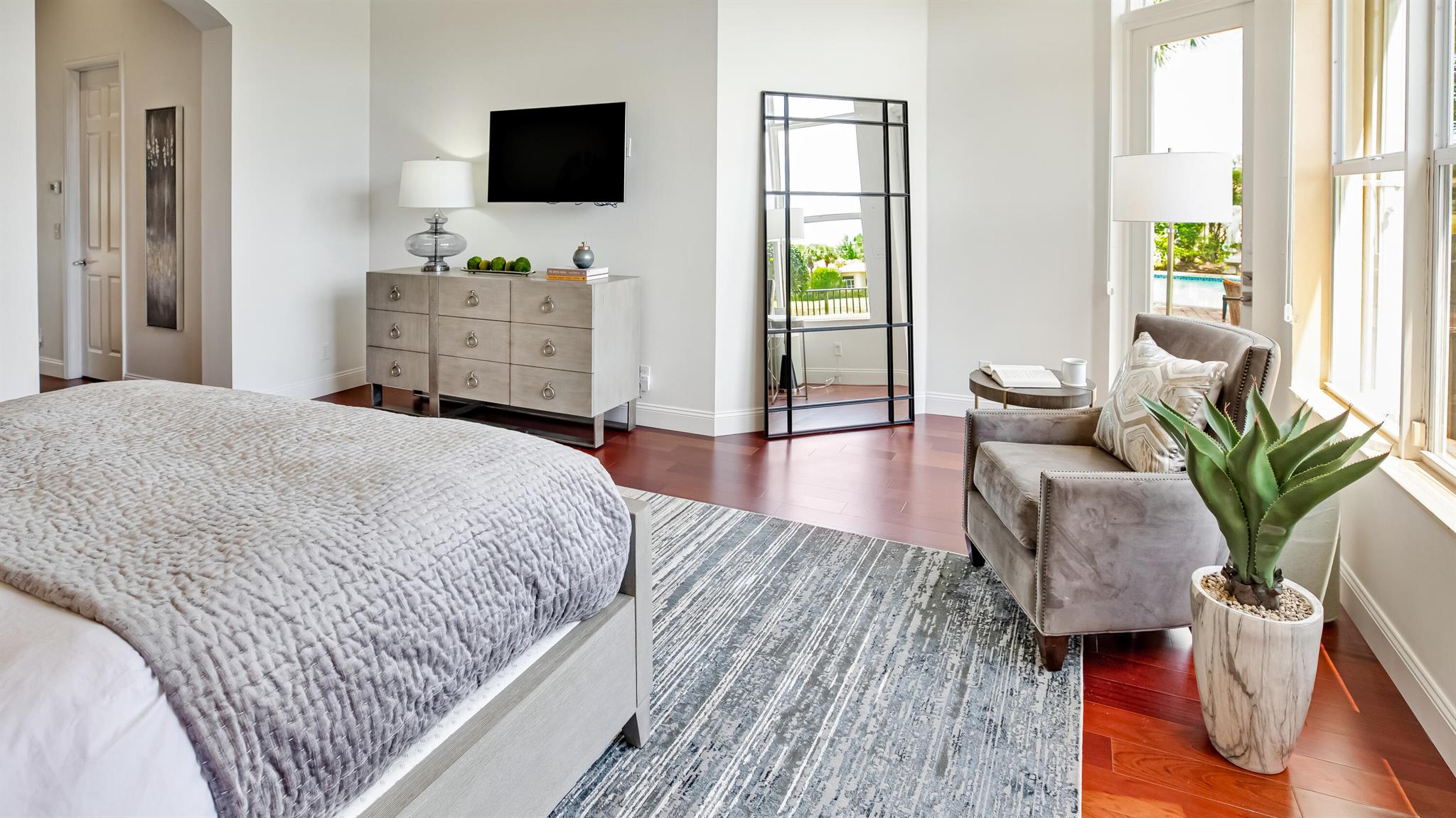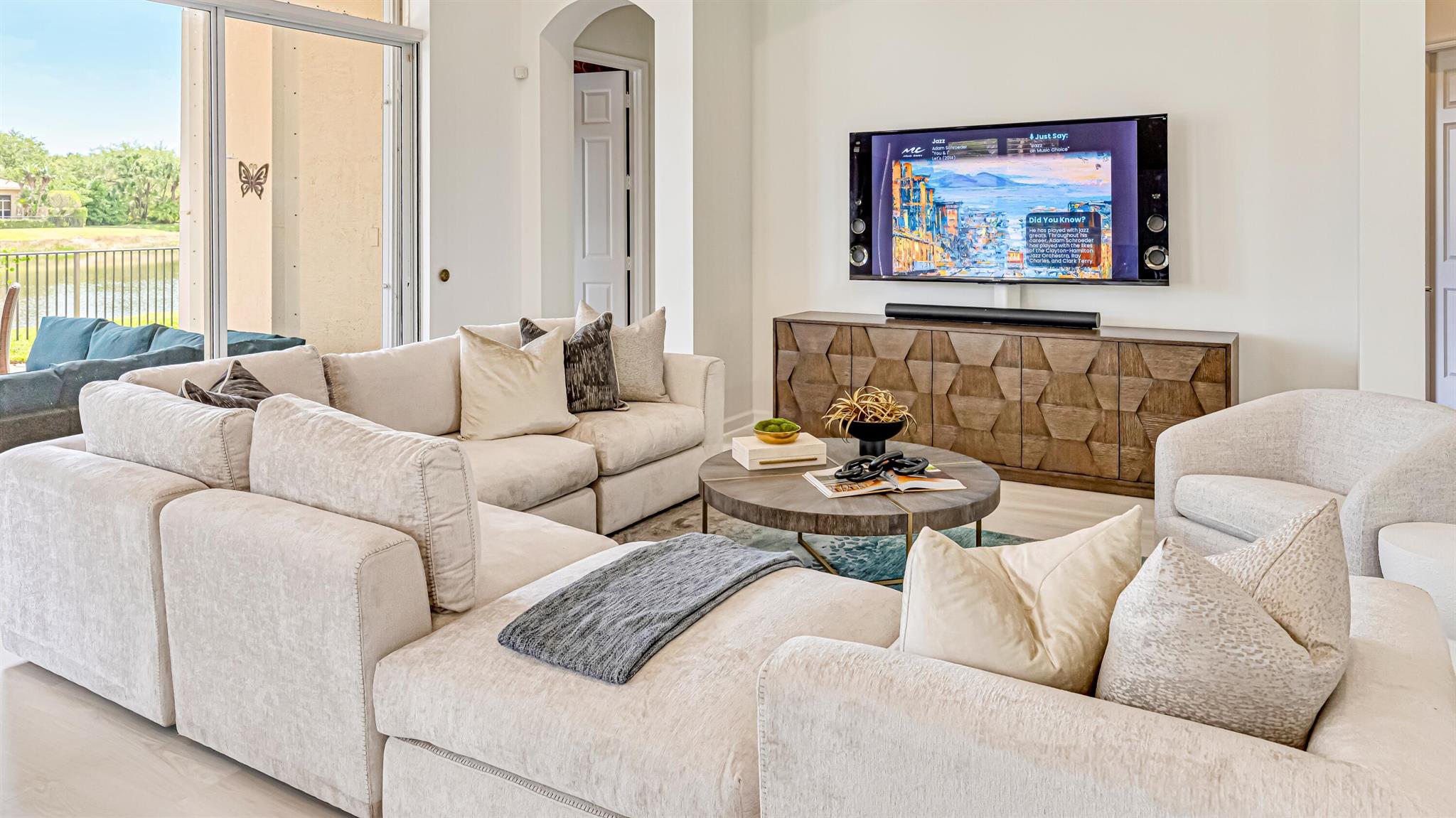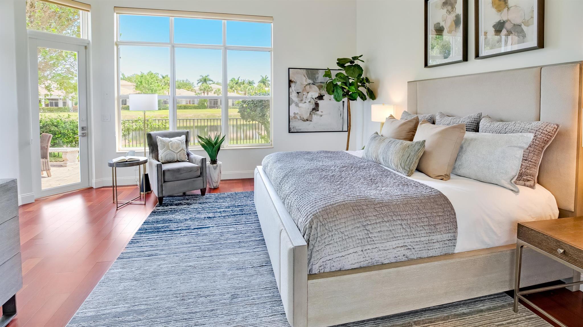 Nestled within the prestigious Mirasol Country Club is this exquisite home offering 5 bedroom and 5.5 baths. This highly desirable Seville home offers the ultimate South Florida lifestyle. Imagine unwinding in your private backyard oasis, complete with a sparkling poolside retreat and breathtaking lakefront vistas. There is plenty of living space in this expansive residence, with over 4,100 square feet of luxurious living space. Beautifully updated kitchen featuring stunning new quartz countertops and backsplash, and grand island perfect for entertaining. The first floor oversized master suite provides a serene escape with tranquil lake views and custom-designed closets.