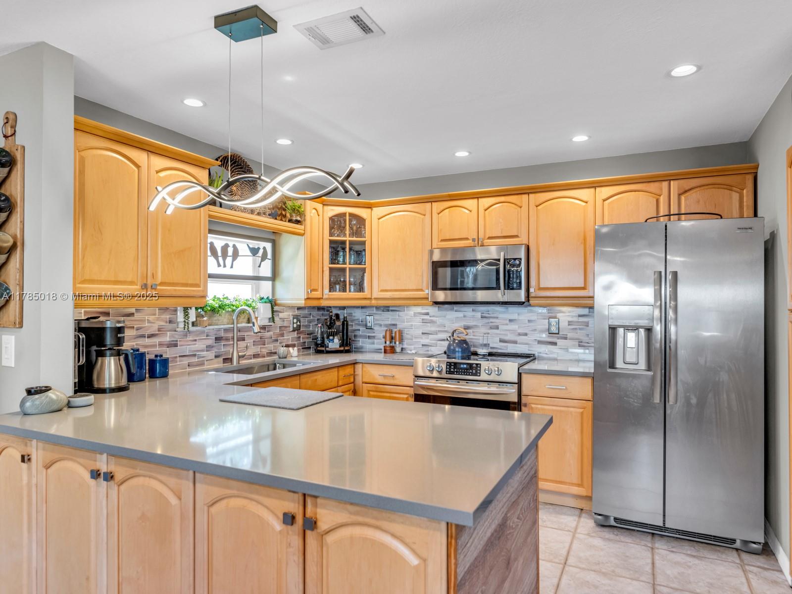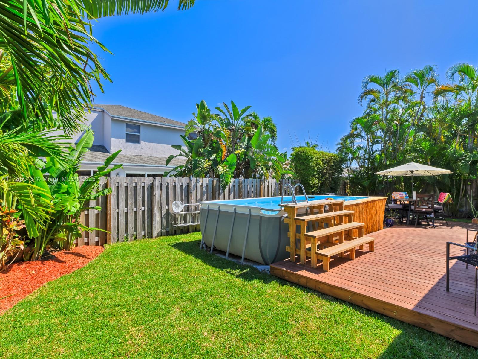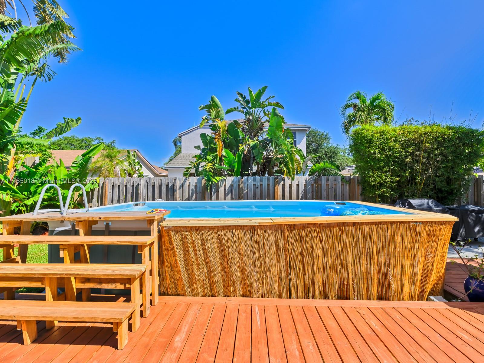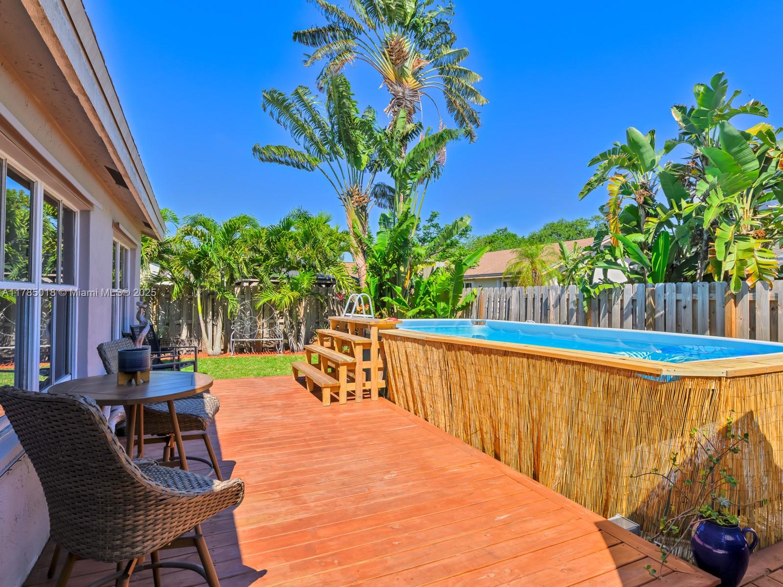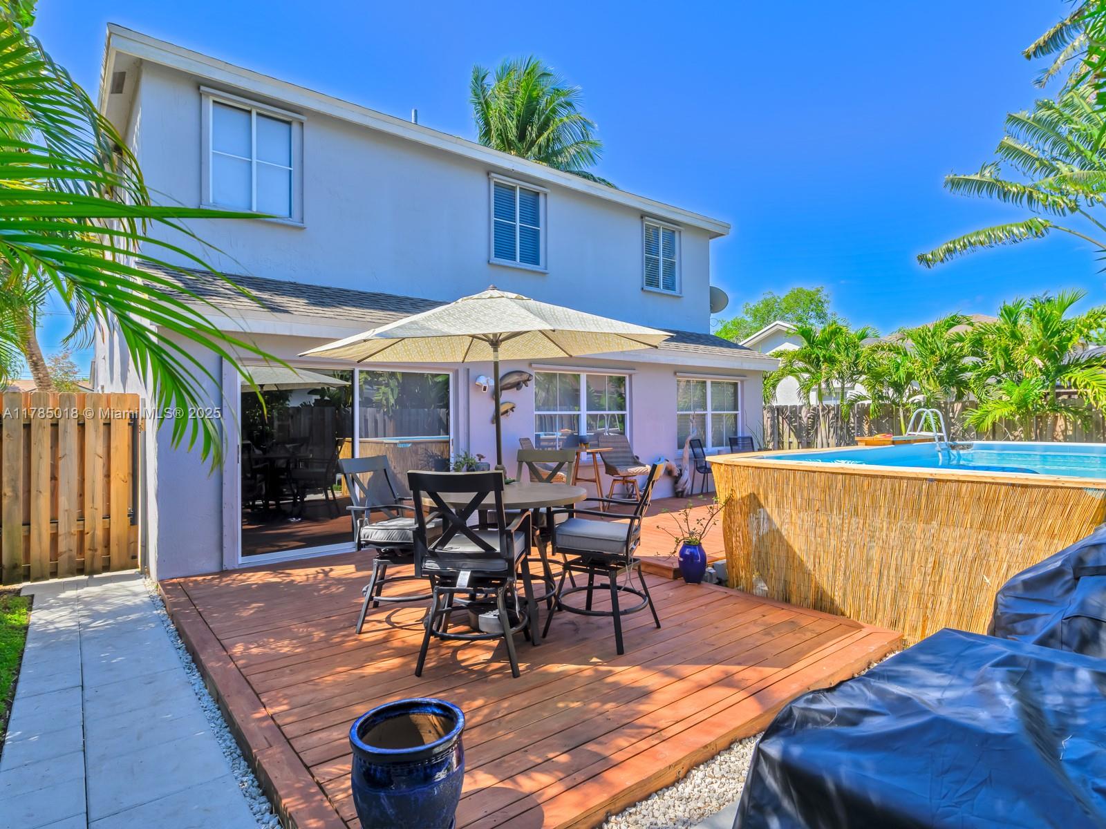 Stunning & Elegantly Upgraded! This bright and spacious home is a true showstopper, featuring high-end finishes from top to bottom. Enjoy a beautifully remodeled kitchen with rich wood cabinetry, sleek quartz countertops, and modern bathrooms with luxurious upgrades. Stylish details include popcorn-free ceilings with recessed lighting, remote-controlled ceiling fans, an elegant wrought iron staircase railing, and an impact-rated front door. Step outside to lush, tropical landscaping and a private backyard oasis, complete with a large above-ground swimming pool—perfect for relaxing or entertaining. This home blends comfort, class, and functionality in every corner!