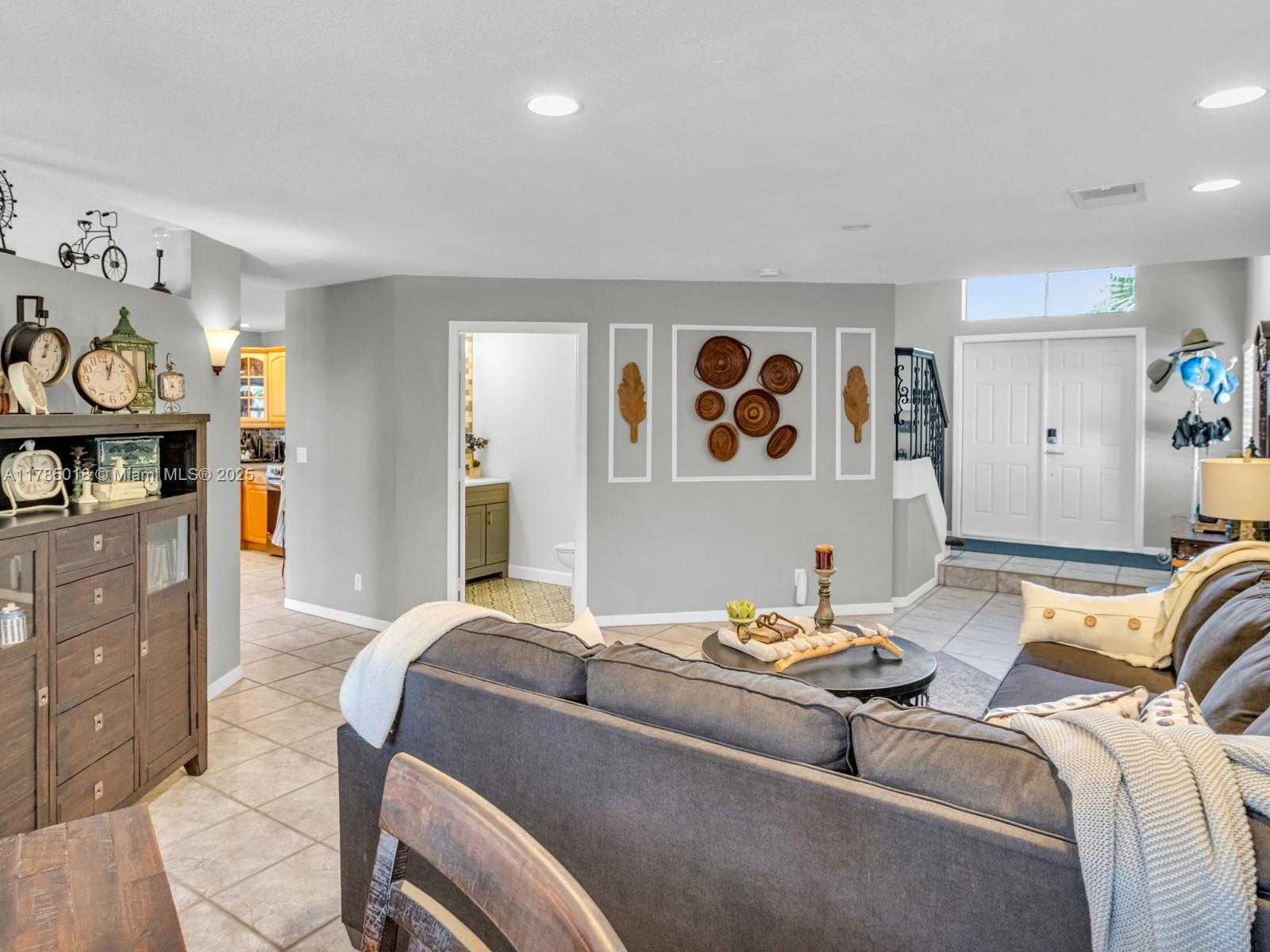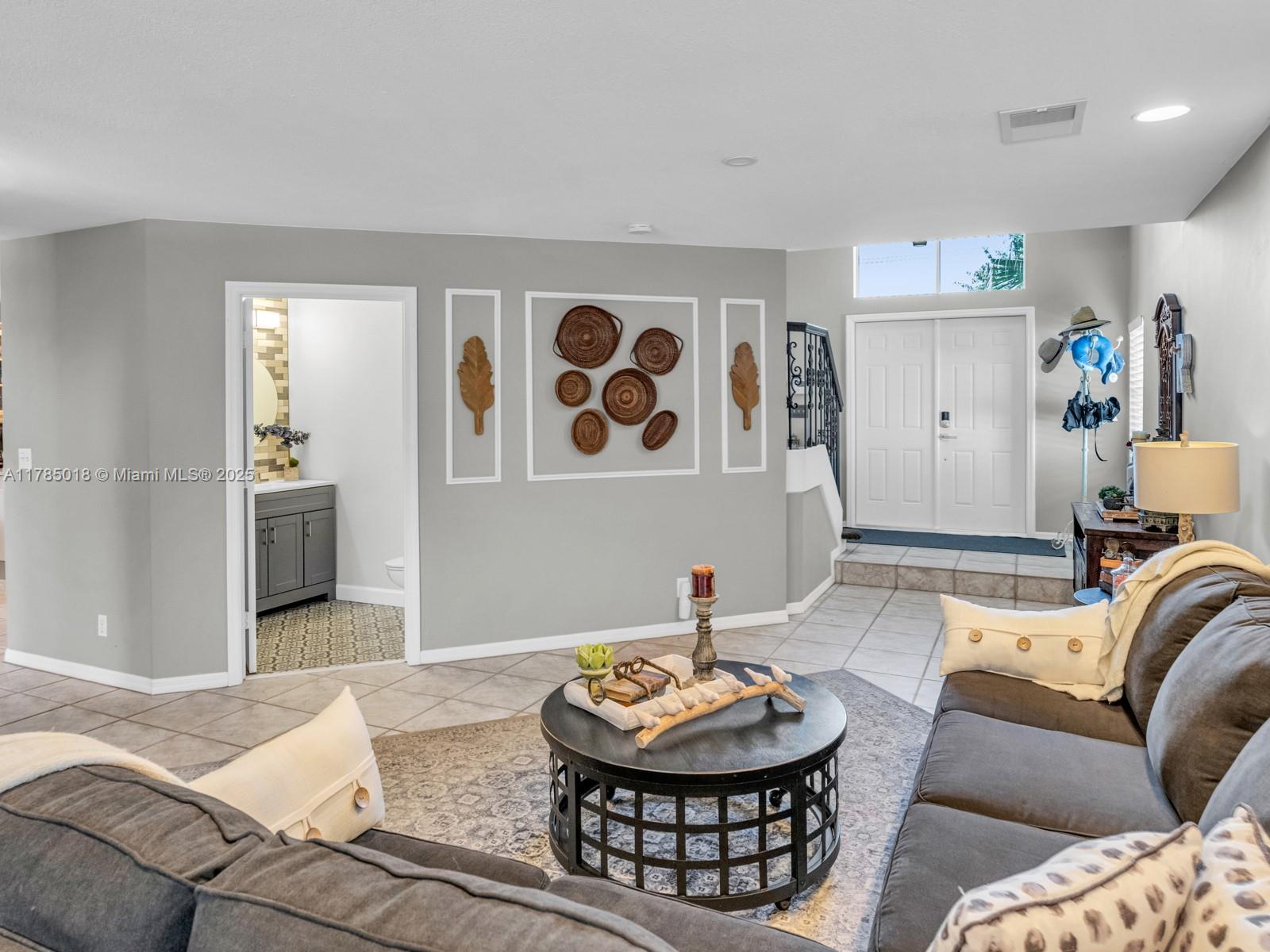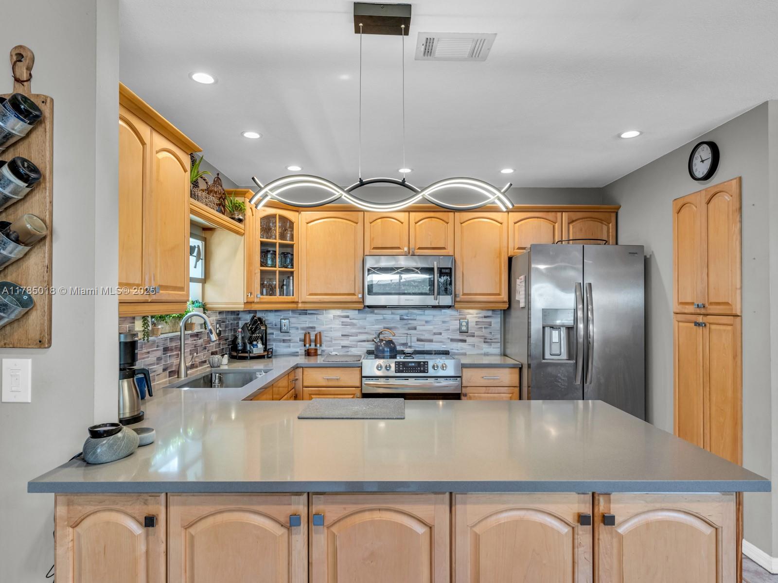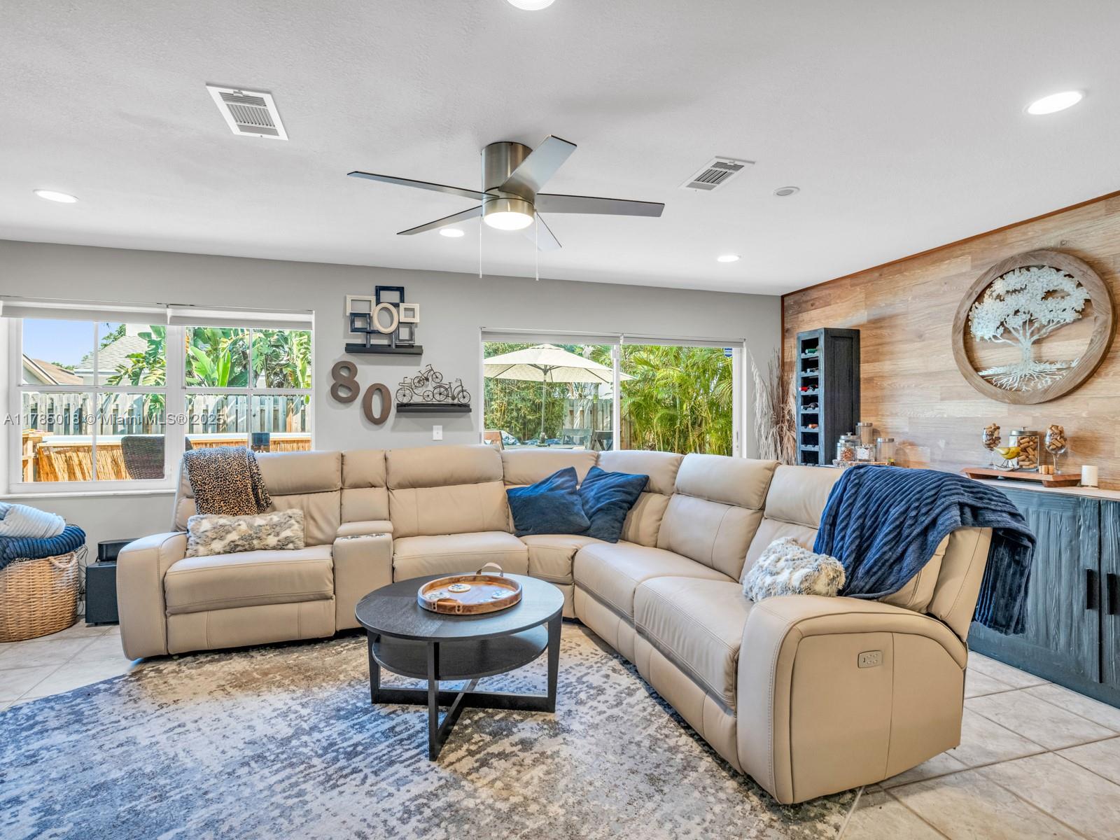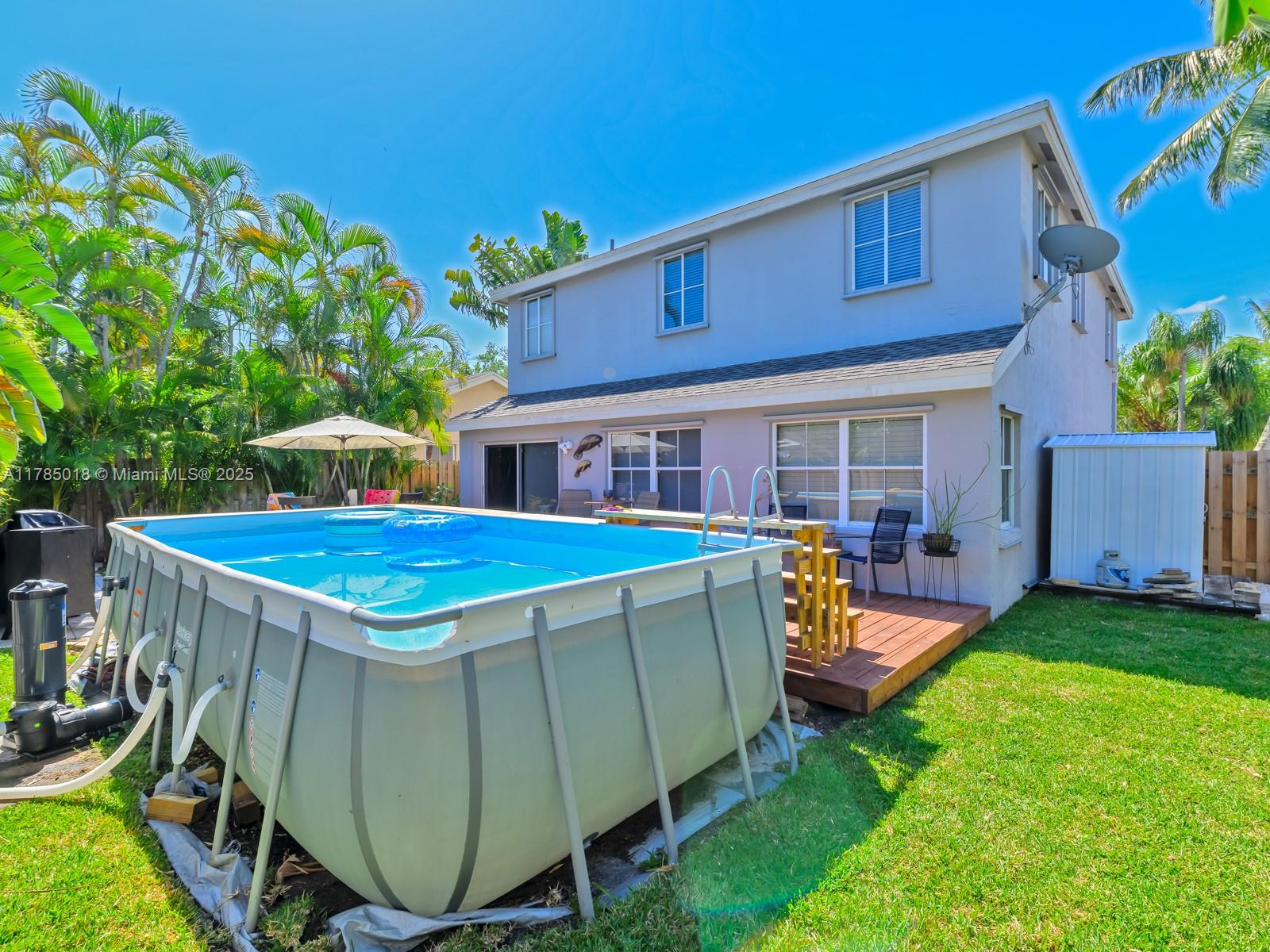 Stunning & Elegantly Upgraded! This bright and spacious home is a true showstopper, featuring high-end finishes from top to bottom. Enjoy a beautifully remodeled kitchen with rich wood cabinetry, sleek quartz countertops, and modern bathrooms with luxurious upgrades. Stylish details include popcorn-free ceilings with recessed lighting, remote-controlled ceiling fans, an elegant wrought iron staircase railing, and an impact-rated front door. Step outside to lush, tropical landscaping and a private backyard oasis, complete with a large above-ground swimming pool—perfect for relaxing or entertaining. This home blends comfort, class, and functionality in every corner!