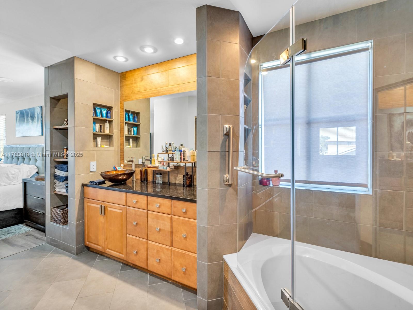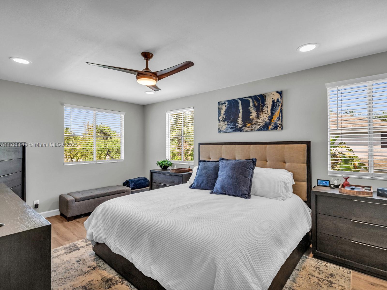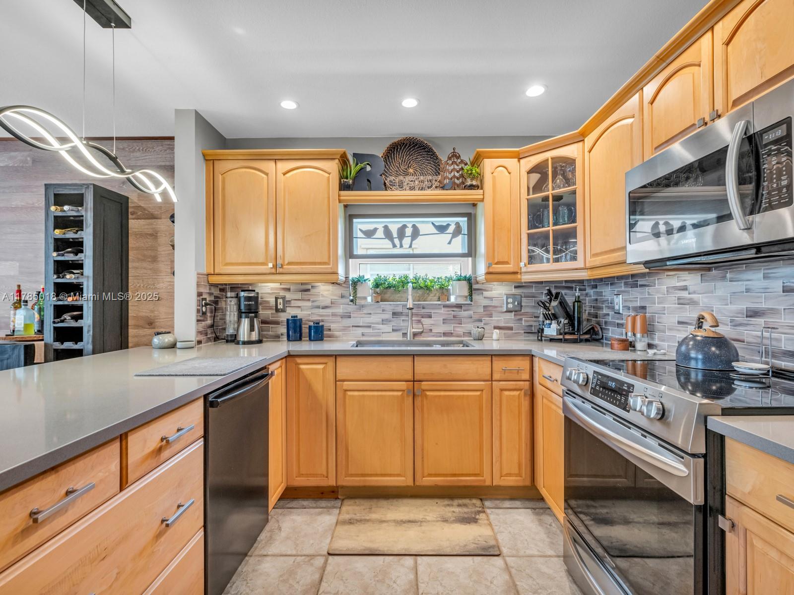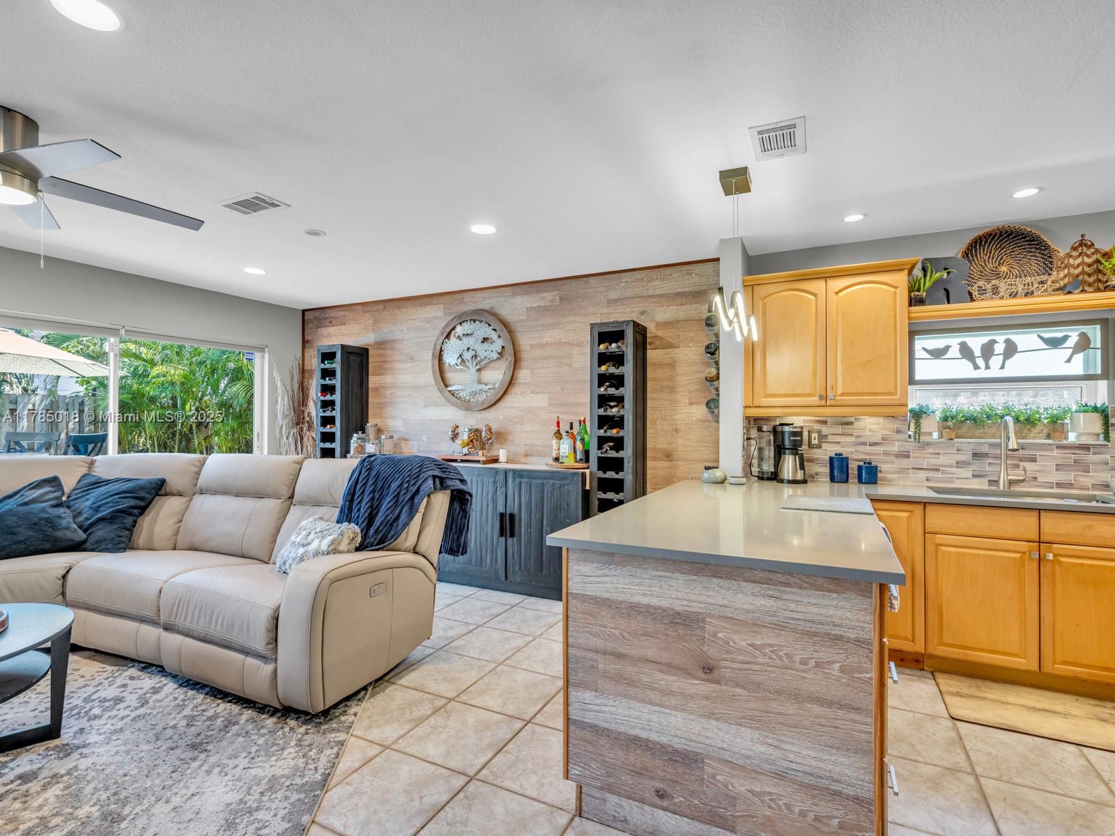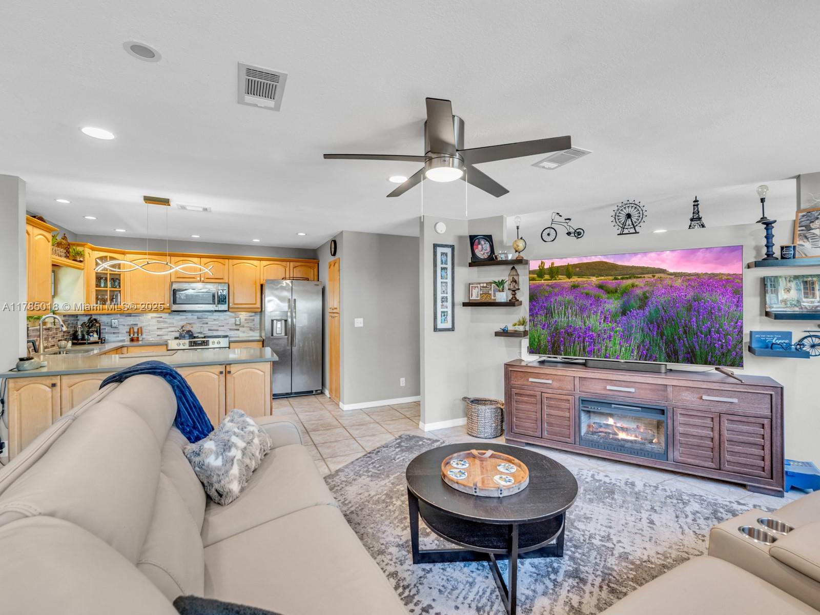 Stunning & Elegantly Upgraded! This bright and spacious home is a true showstopper, featuring high-end finishes from top to bottom. Enjoy a beautifully remodeled kitchen with rich wood cabinetry, sleek quartz countertops, and modern bathrooms with luxurious upgrades. Stylish details include popcorn-free ceilings with recessed lighting, remote-controlled ceiling fans, an elegant wrought iron staircase railing, and an impact-rated front door. Step outside to lush, tropical landscaping and a private backyard oasis, complete with a large above-ground swimming pool—perfect for relaxing or entertaining. This home blends comfort, class, and functionality in every corner!