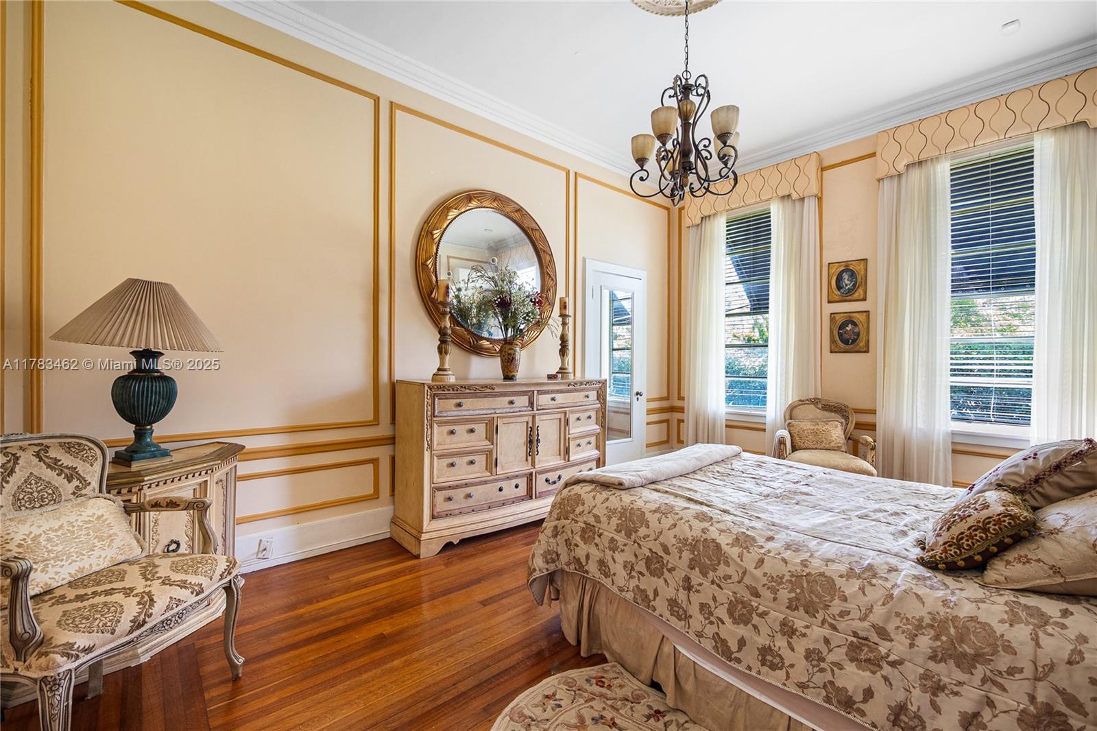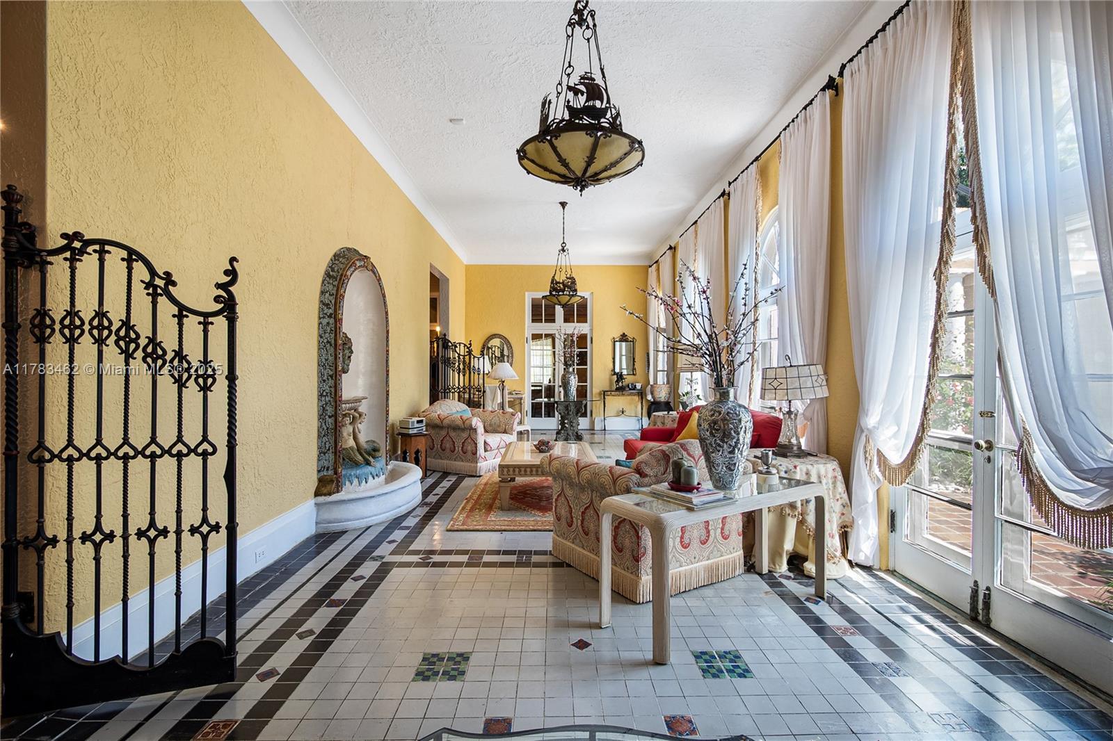 A rare opportunity to own a historic Italian villa designed in 1921 by famed architect August Geiger. Set on a 38,000+ SF lot, this one-of-a-kind home spans over 7,000 SF and was originally commissioned to replicate a grand Pompeiian villa. Surrounded by lush lawns and a large pool area. The elegant single-story layout features soaring 12' ceilings, expansive rooms, and impeccably preserved original details. The iconic 16-point Star of Macedonia welcomes you inside, where you’ll find 4 spacious bedrooms, an oversized primary suite, a dramatic great room, formal dining and a large adjoined garden room/loggia salon. A generous kitchen flows into a separate secondary kitchen/prep area, seamlessly connected to private staff quarters. A refined composition of history and architectural heritage.