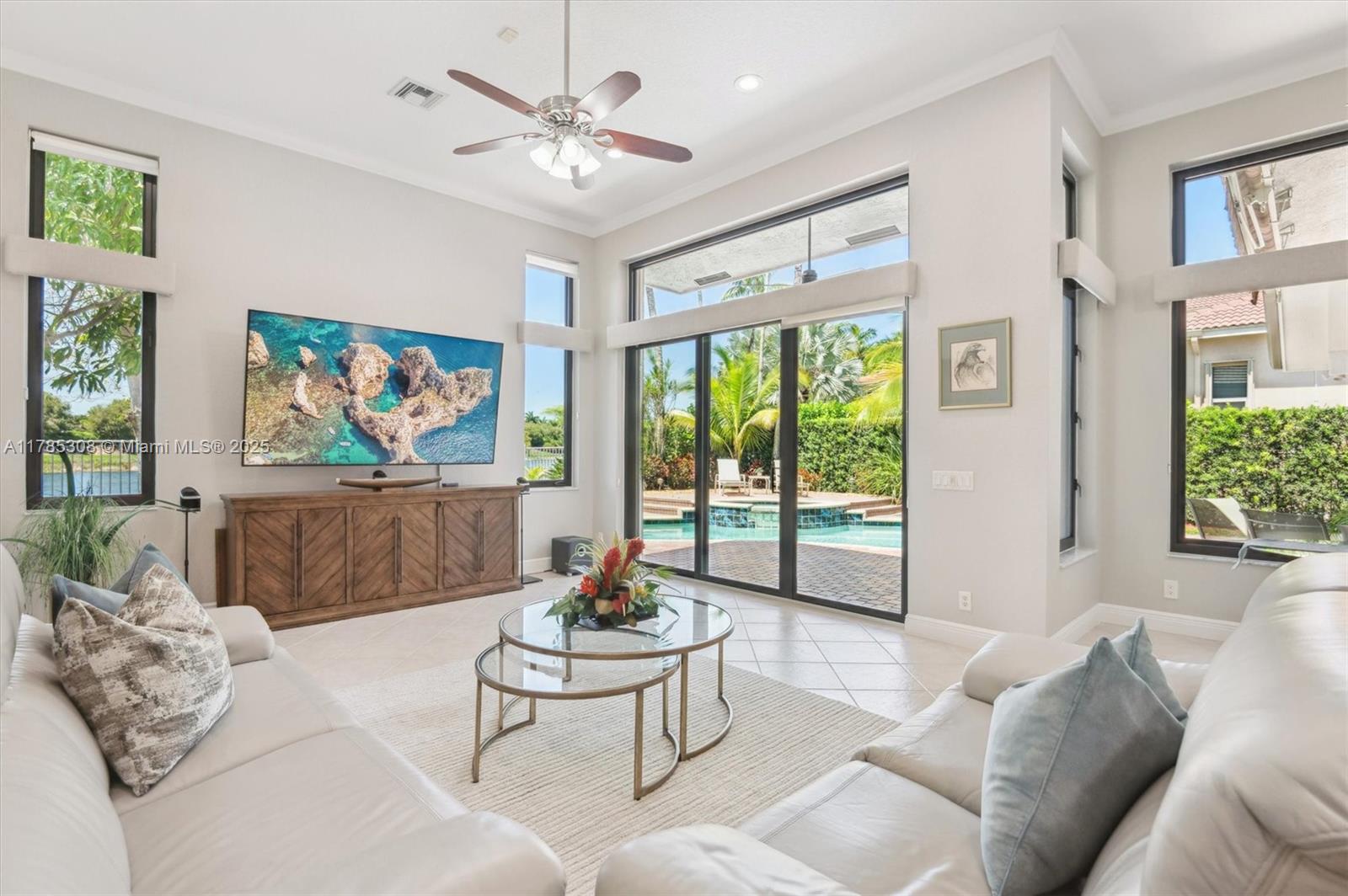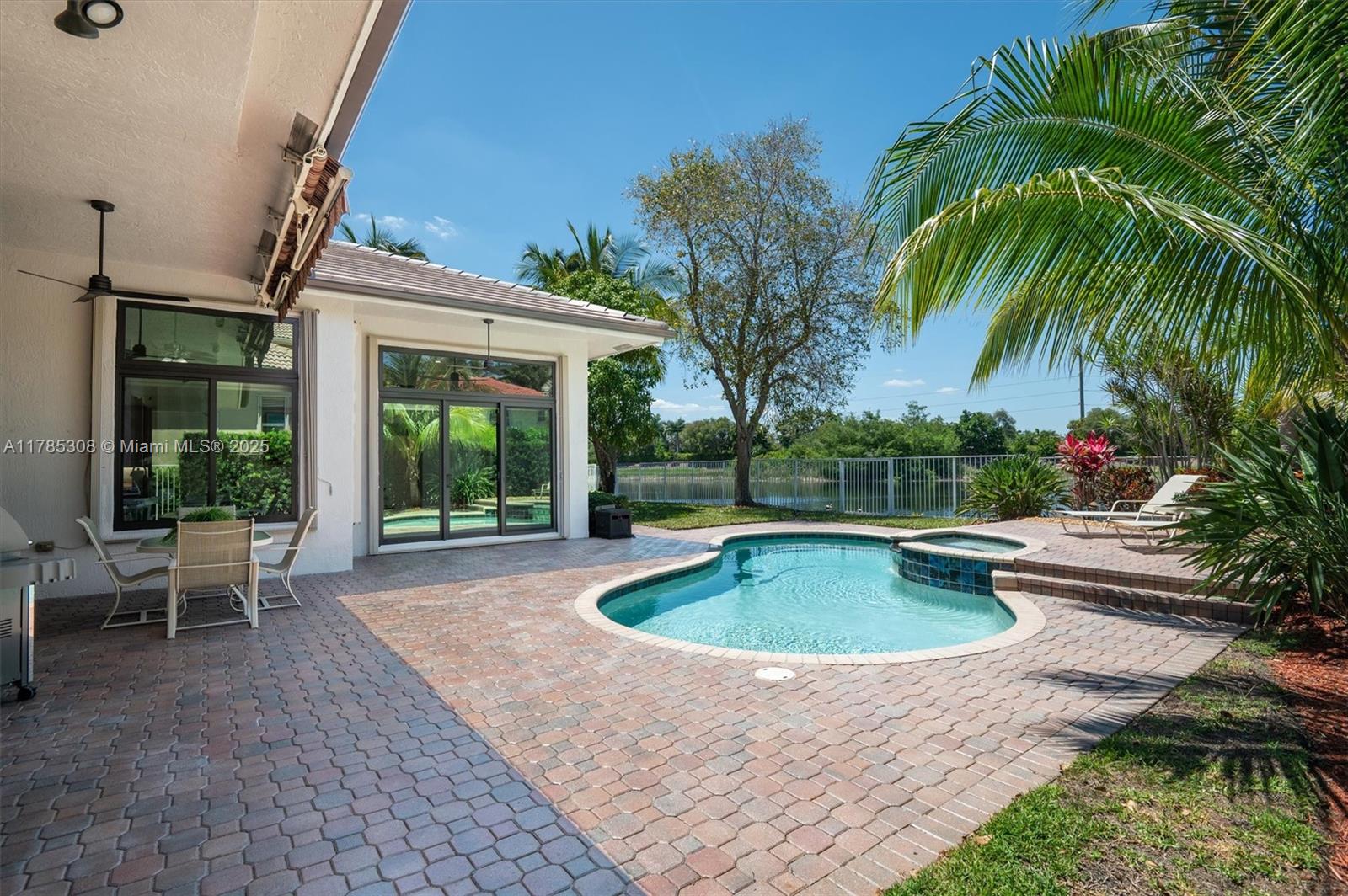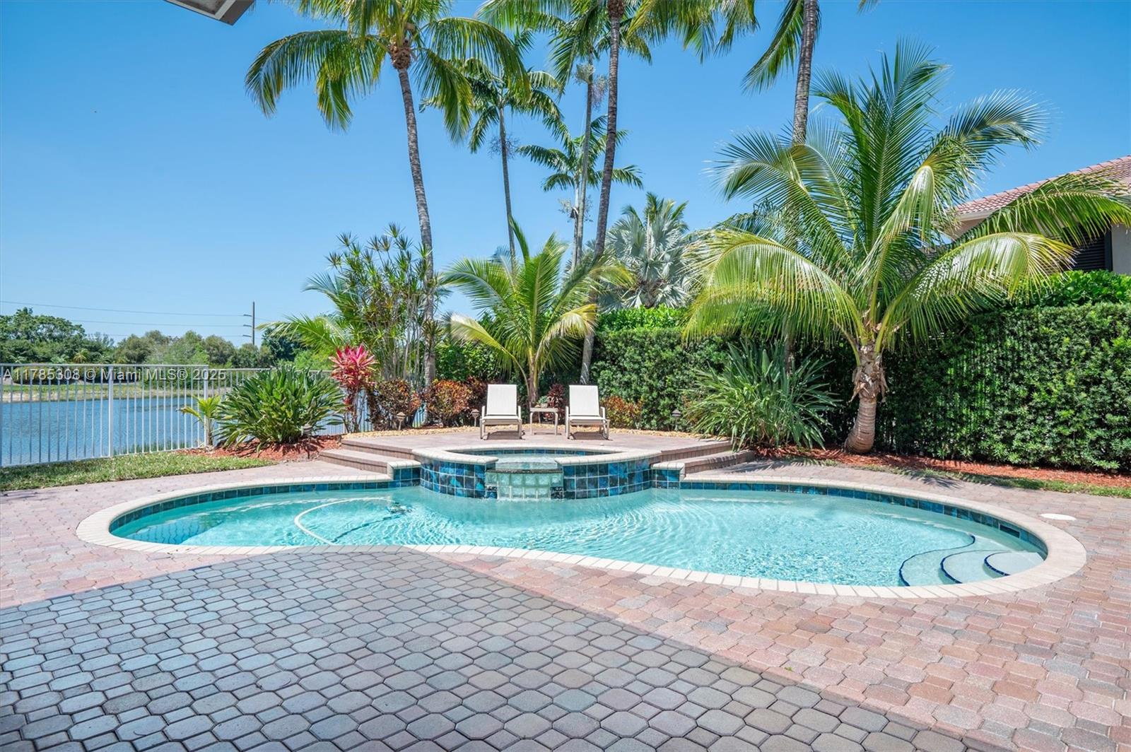 Welcome to the prestigious Weston Hills community. This bright and immaculate 4-bedroom, 3bath, 3 car garage home offers stunning views of tropical landscaping, salt water pool and spa, and a tranquil lake – private, with no neighbors behind you! Enjoy peace of mind and security with a brand-NEW ROOF (less than ONE year old), gutters, IMPACT WINDOWS AND DOORS through out, NEW AC (TWO month old), and freshly painted. The 3-car garage features a finished vinyl floor, pull-down stairs and is EV-ready. The home boasts upgraded bathrooms, spacious custom closets, and a modern kitchen with 46-inch cabinets and central vac. Conveniently located near shopping, places of worship, parks, highways, and A-rated schools.