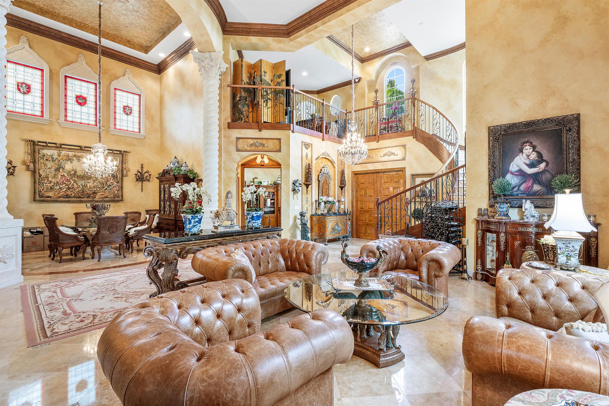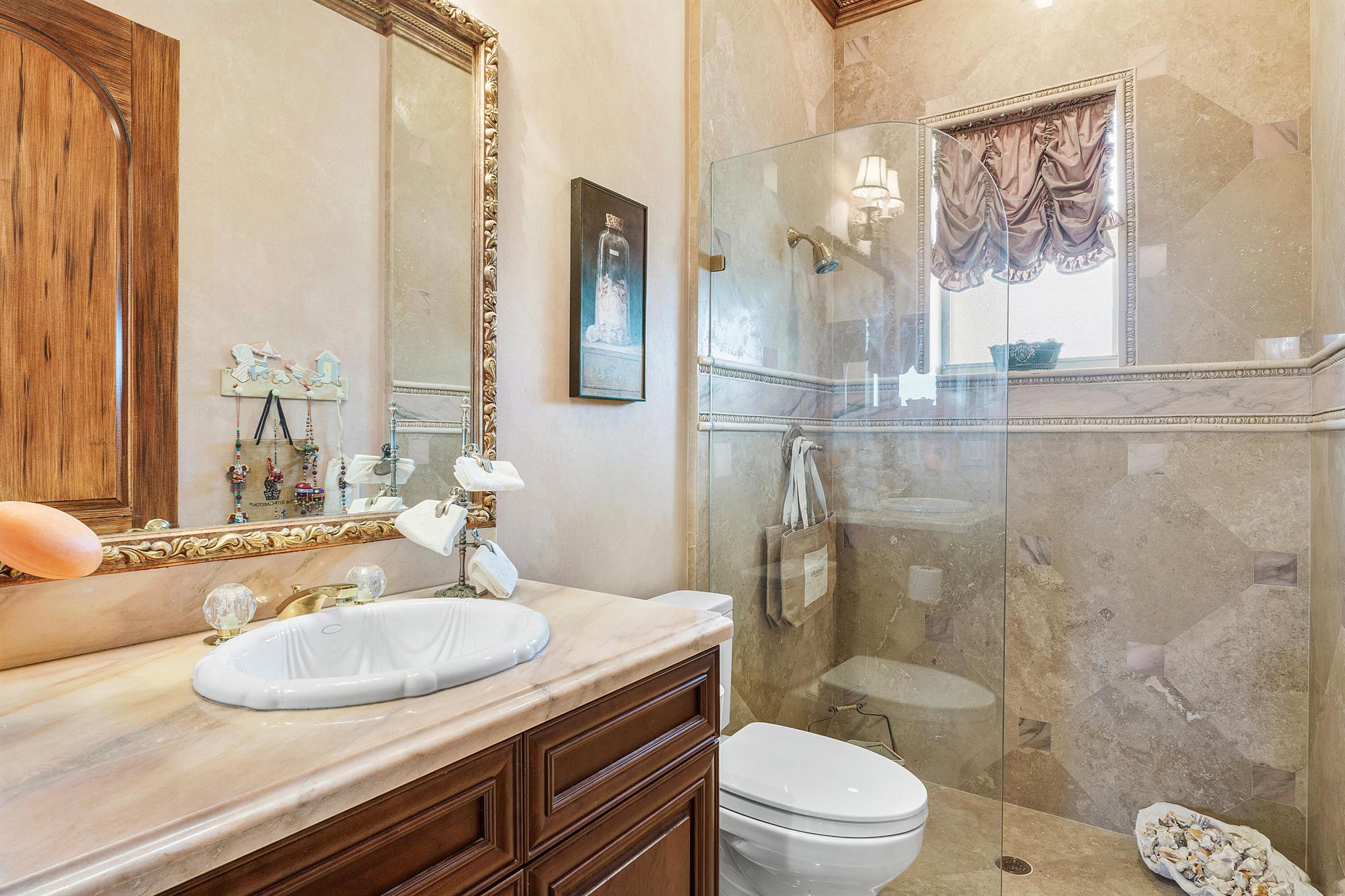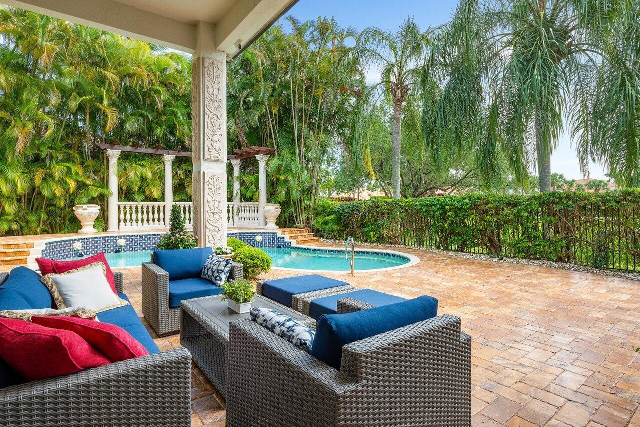 This exceptional 4 Bedroom, 4.1 Bath Home in Mizner Country Club has immediate Golf Equity Available! This beautifully maintained 4-bedroom, 4.1-bath residence is perfectly situated on an expanded lot, offering both privacy & elegance. With immediate Golf Equity available for purchase, this is an exceptional opportunity to step into the country club lifestyle. Enter to find gorgeous marble floors throughout, creating a seamless flow. The home features impact glass windows at the front & accordion hurricane shutters in the rear, & a whole-house 48K generator. This home also features an expanded driveway for added convenience, newer A/C units (none older than 4 years), & perimeter surveillance cameras for enhanced safety. The downstairs guest suite/office includes additional windows,