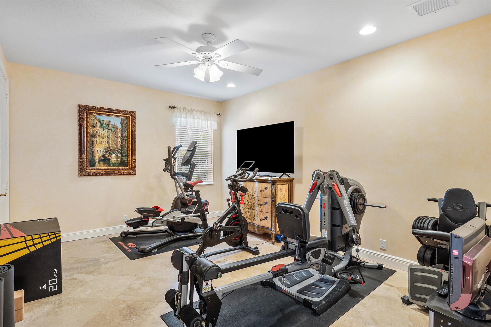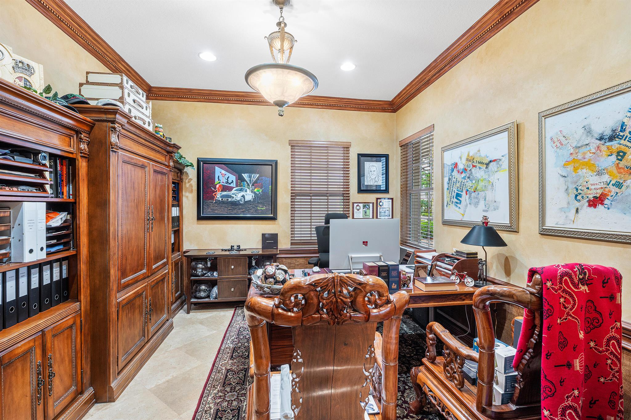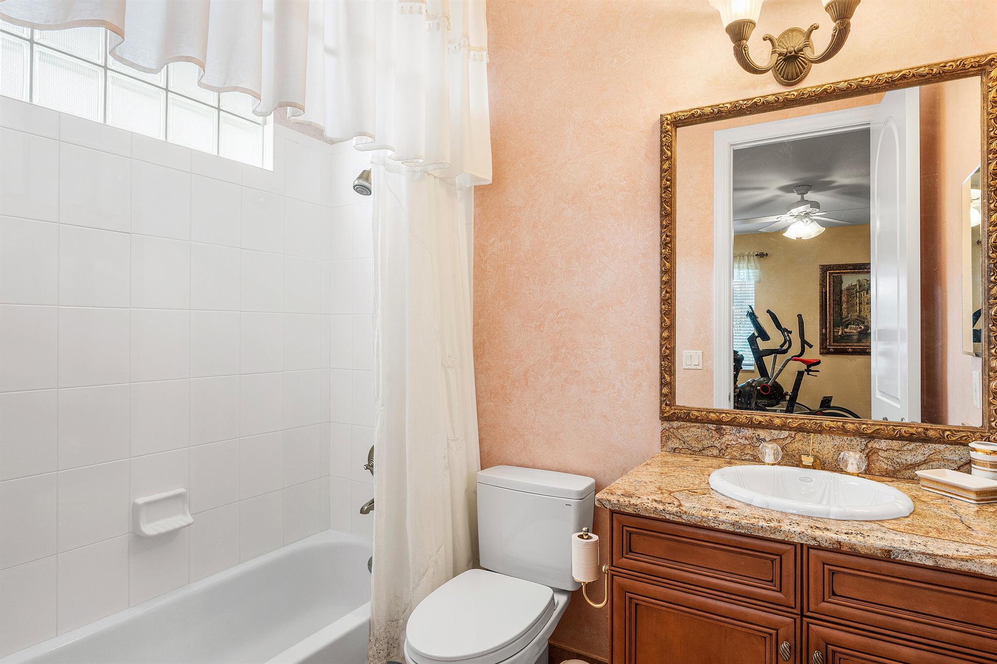 This exceptional 4 Bedroom, 4.1 Bath Home in Mizner Country Club has immediate Golf Equity Available! This beautifully maintained 4-bedroom, 4.1-bath residence is perfectly situated on an expanded lot, offering both privacy & elegance. With immediate Golf Equity available for purchase, this is an exceptional opportunity to step into the country club lifestyle. Enter to find gorgeous marble floors throughout, creating a seamless flow. The home features impact glass windows at the front & accordion hurricane shutters in the rear, & a whole-house 48K generator. This home also features an expanded driveway for added convenience, newer A/C units (none older than 4 years), & perimeter surveillance cameras for enhanced safety. The downstairs guest suite/office includes additional windows,
