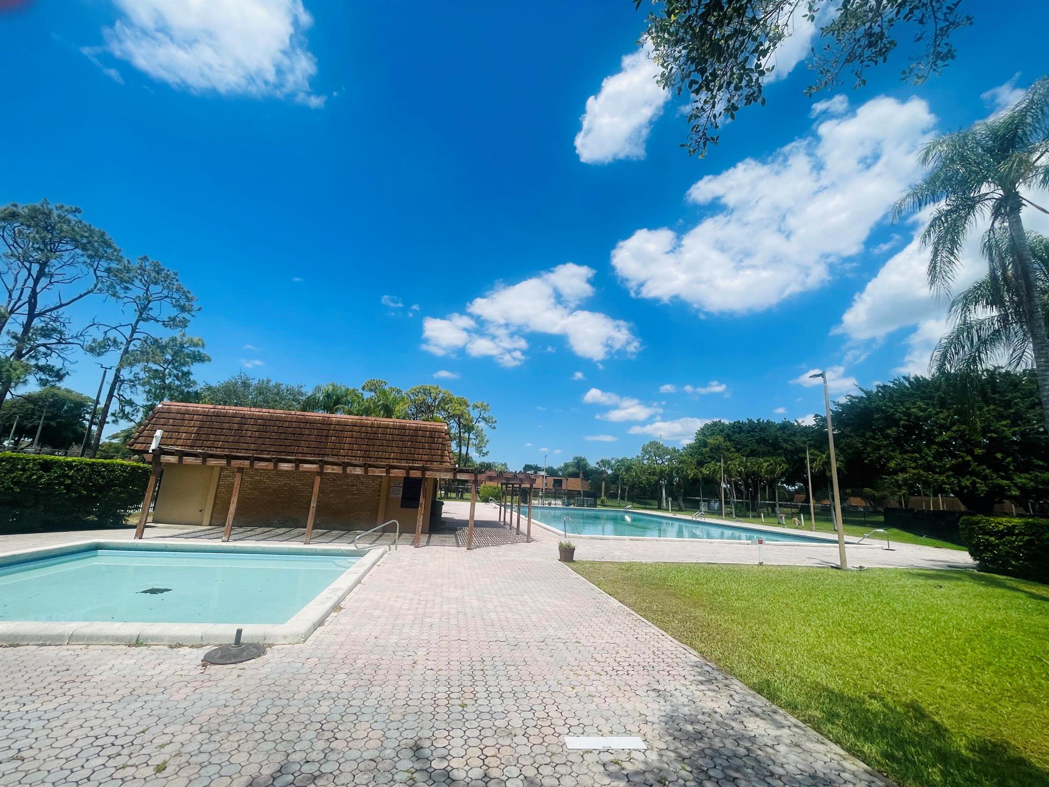 Spacious and charming NEWLY PAINTED 3/3 townhouse nestled in the serene & friendly community of Sherwood Lakes known for its scenic, natural beauty. Desirable open floor plan with 1BR & 1BA on first level. NEW roof, newer AC (2022), All NEW hardwood floors throughout. NEW fridge (2025). Primary suite features RENOVATED bathroom, walk-in closets & private balcony. Complete set of hurricane shutters. 2 assigned parking spots with guest parking. Olympic-size heated community pool, baby pool, playground, walking trails, basketball & tennis courts just steps away! HOA covers amenities, roof, exterior painting, lawn/landscaping, reserves. Conveniently located near the beaches, shopping, restaurants, I-95, the FL Turnpike & PBA.