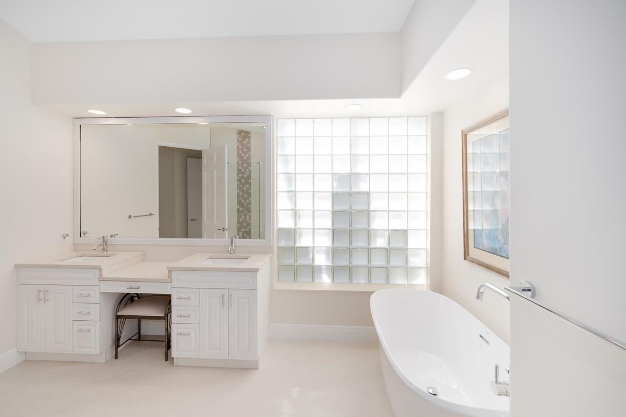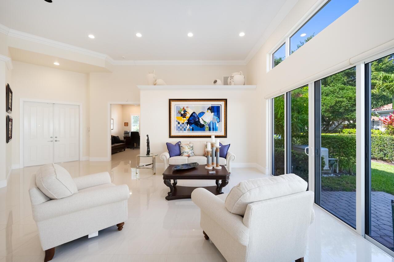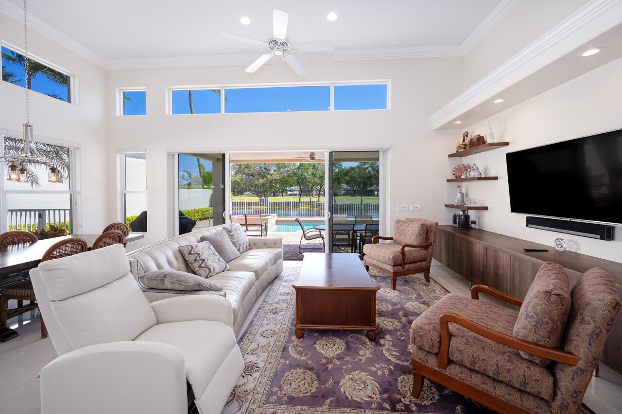 Stunning Lake & Golf Course Views in Prestigious Bay Pointe at Broken Sound. Welcome to this beautifully maintained 3-bedroom, 3.5-bath residence nestled in the exclusive village of Bay Pointe within the award-winning Broken Sound Country Club. From the moment you enter, you'll be captivated by the soaring volume ceilings and expansive porcelain tile floors that create a sense of openness and sophistication.The desirable split bedroom floor plan offers privacy and comfort, with each bedroom featuring its own en-suite bath. Impact windows and doors throughout provide peace of mind, while the full-house generator ensures uninterrupted comfort. Step outside to your own private oasis--an enclosed backyard featuring a sparkling pool and heated spa, all overlooking breathtaking lake and golf