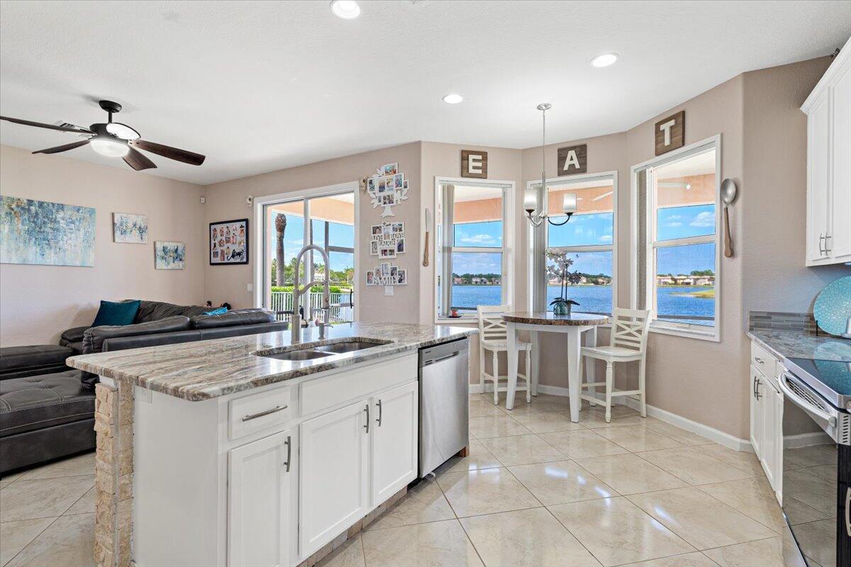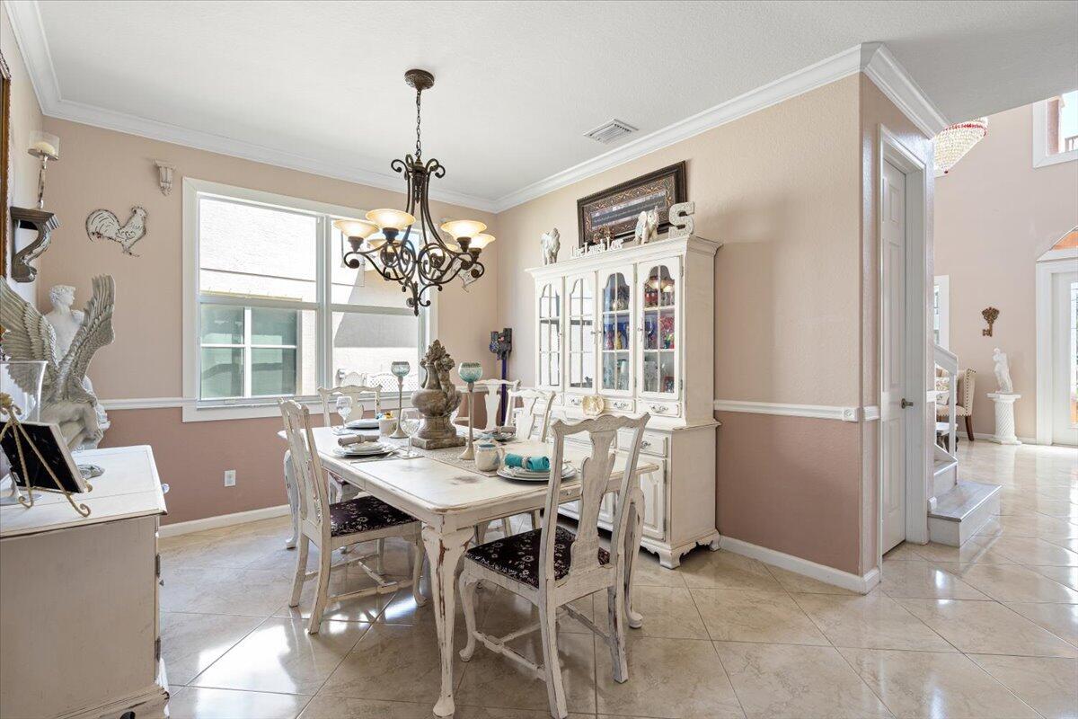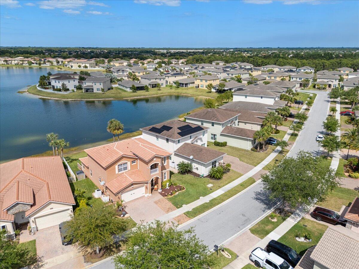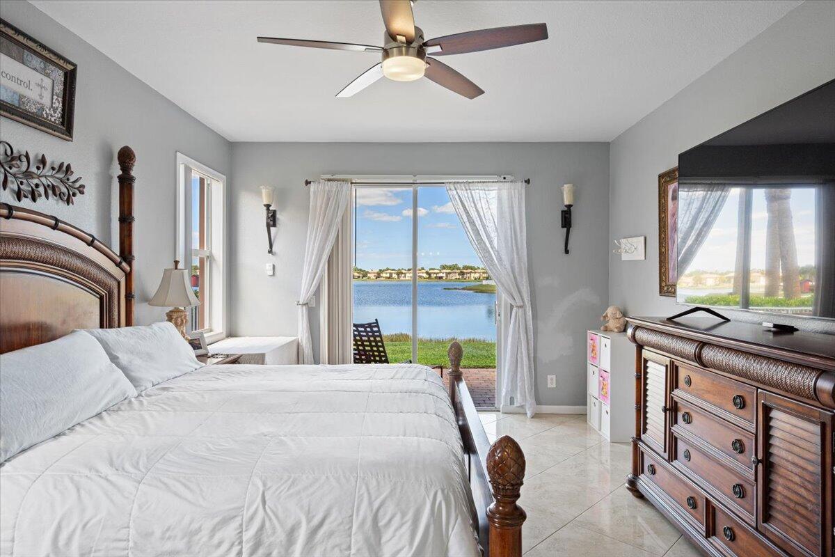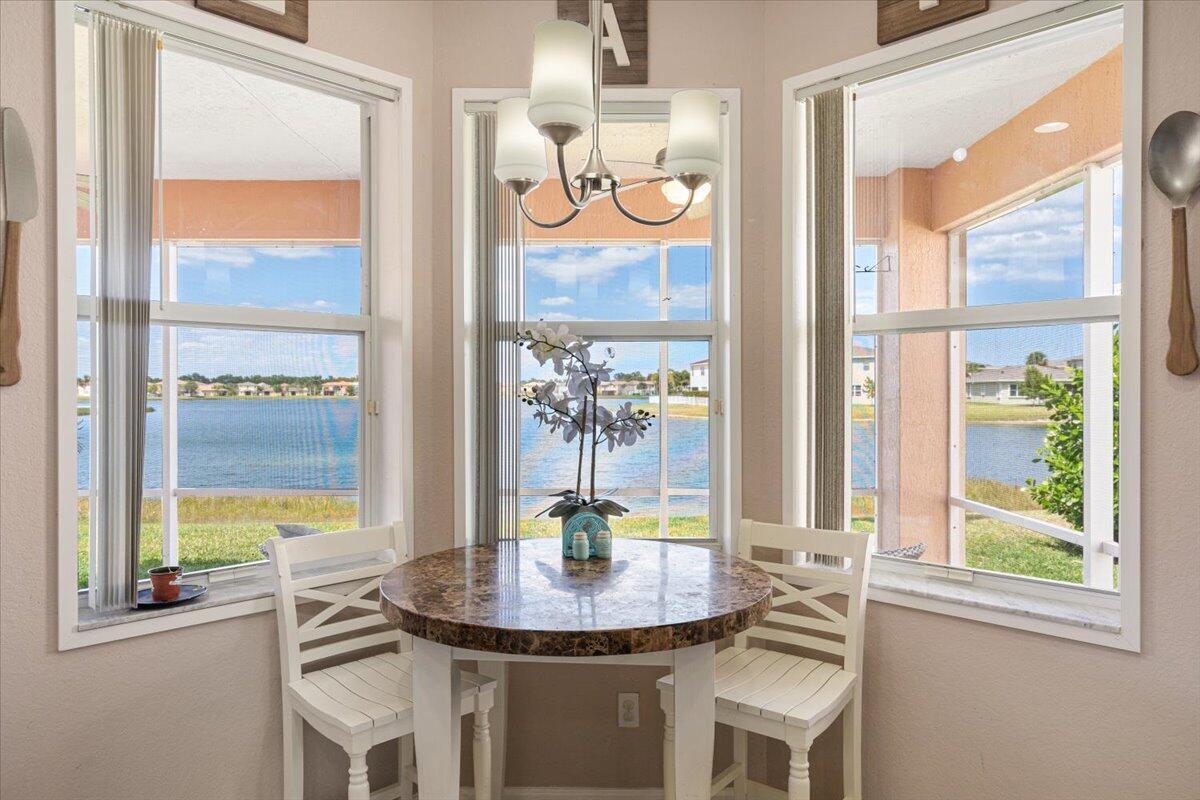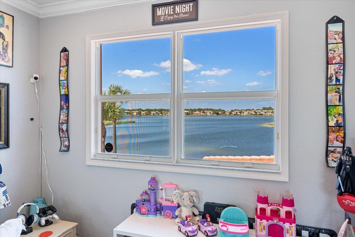 Live like you're on vacation in this stylish 4-bedroom, 2.5-bath home in coveted Vizcaya Falls, showcasing peaceful lake views and a smart, open layout. Solid CBS construction spans two stories with tile throughout the first floor, luxury vinyl on the stairs and upstairs commons, and soft carpet in the bedrooms. Soaring ceilings are elevated by upgraded crown molding, designer fixtures, and a statement chandelier. The upgraded kitchen shines with granite counters, a center island, and a sunny breakfast nook. Retreat to the first-floor primary suite with Roman tub, oversized shower, dual vanities, and a spacious walk-in closet. Recent updates include a 2024 washer & dryer, expanded three-car-width driveway, large entertaining patio, new impact-rated front door, and