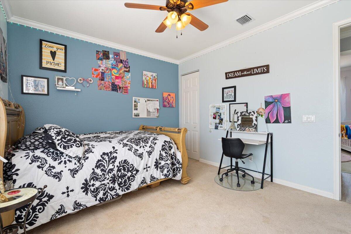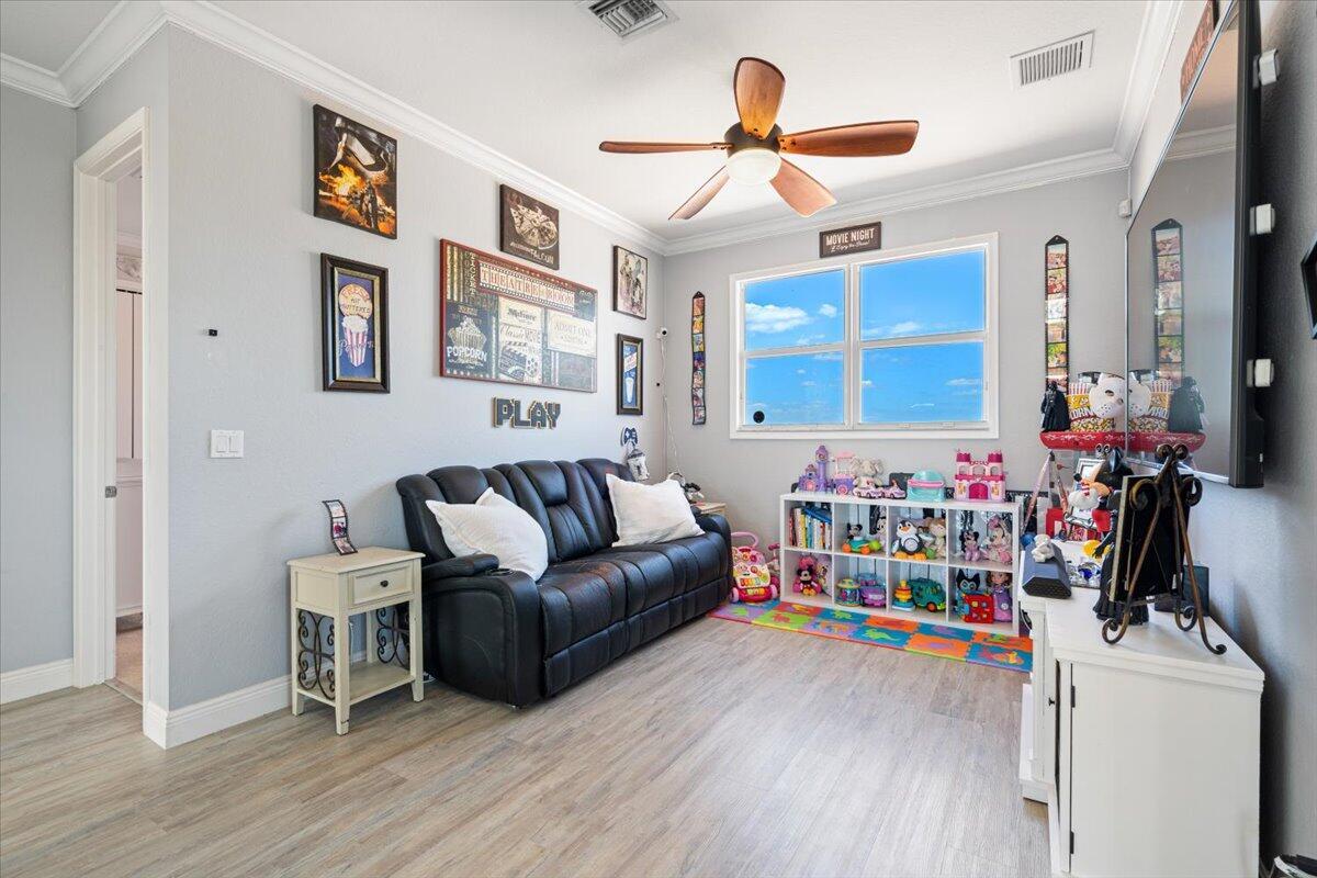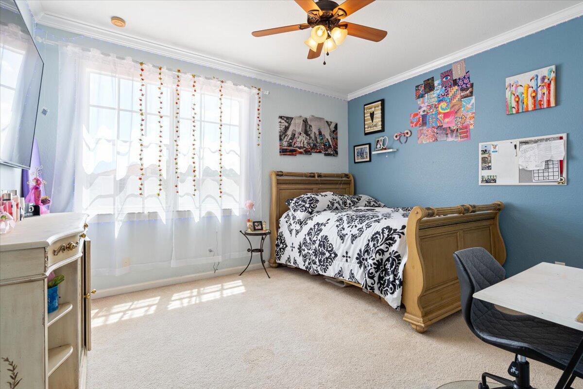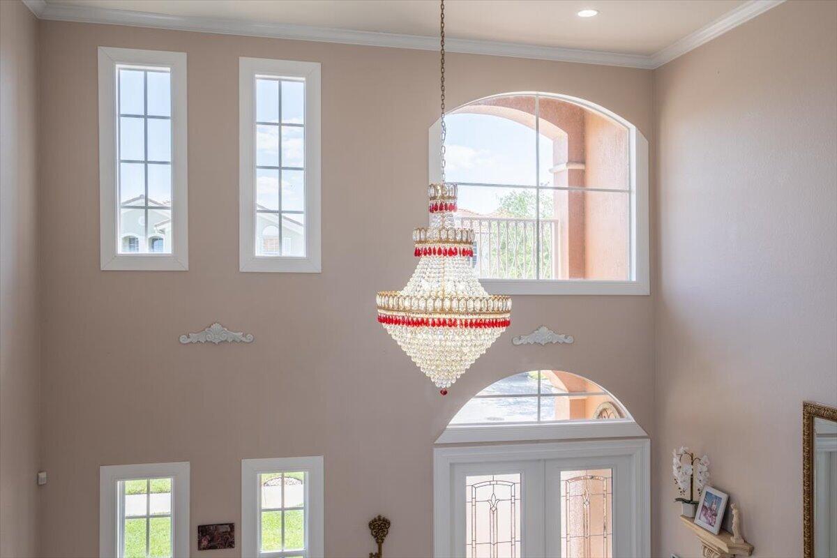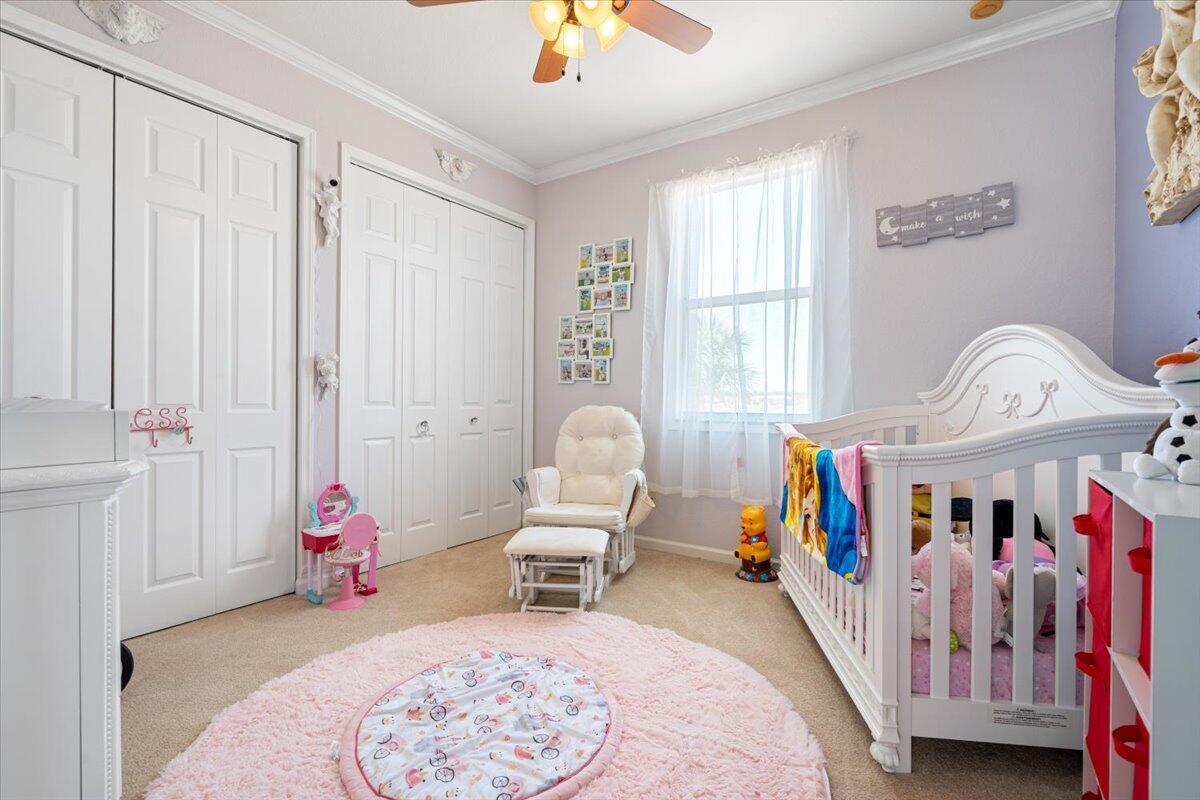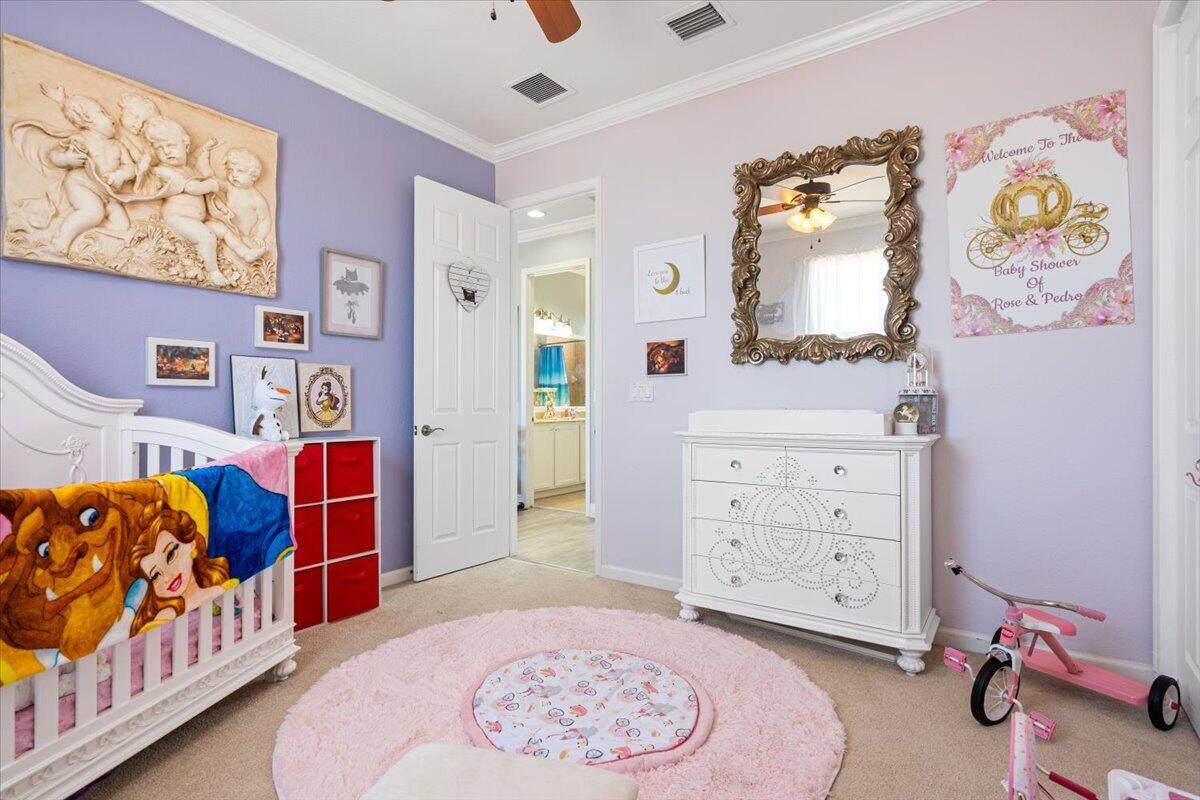 Live like you're on vacation in this stylish 4-bedroom, 2.5-bath home in coveted Vizcaya Falls, showcasing peaceful lake views and a smart, open layout. Solid CBS construction spans two stories with tile throughout the first floor, luxury vinyl on the stairs and upstairs commons, and soft carpet in the bedrooms. Soaring ceilings are elevated by upgraded crown molding, designer fixtures, and a statement chandelier. The upgraded kitchen shines with granite counters, a center island, and a sunny breakfast nook. Retreat to the first-floor primary suite with Roman tub, oversized shower, dual vanities, and a spacious walk-in closet. Recent updates include a 2024 washer & dryer, expanded three-car-width driveway, large entertaining patio, new impact-rated front door, and
