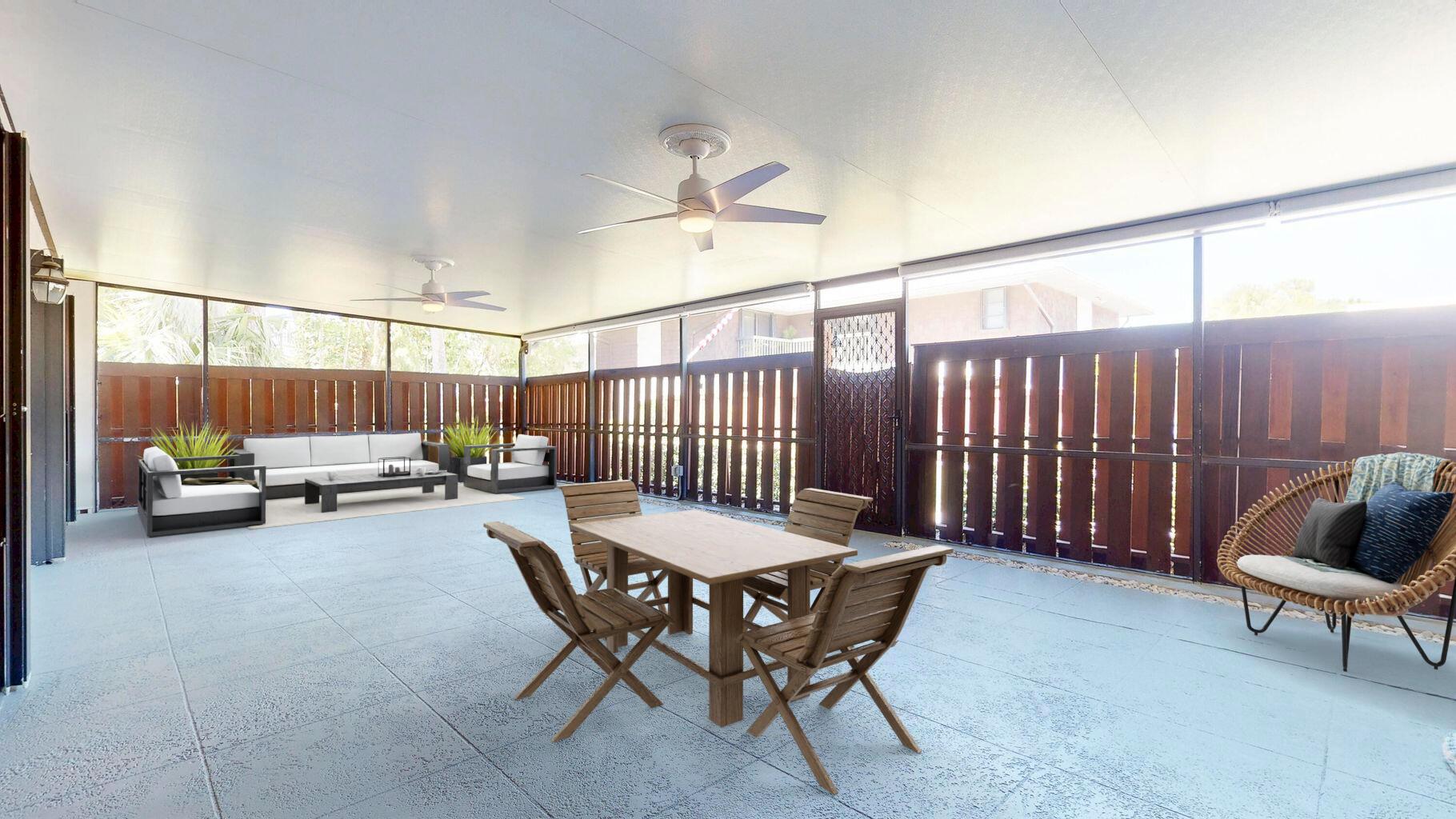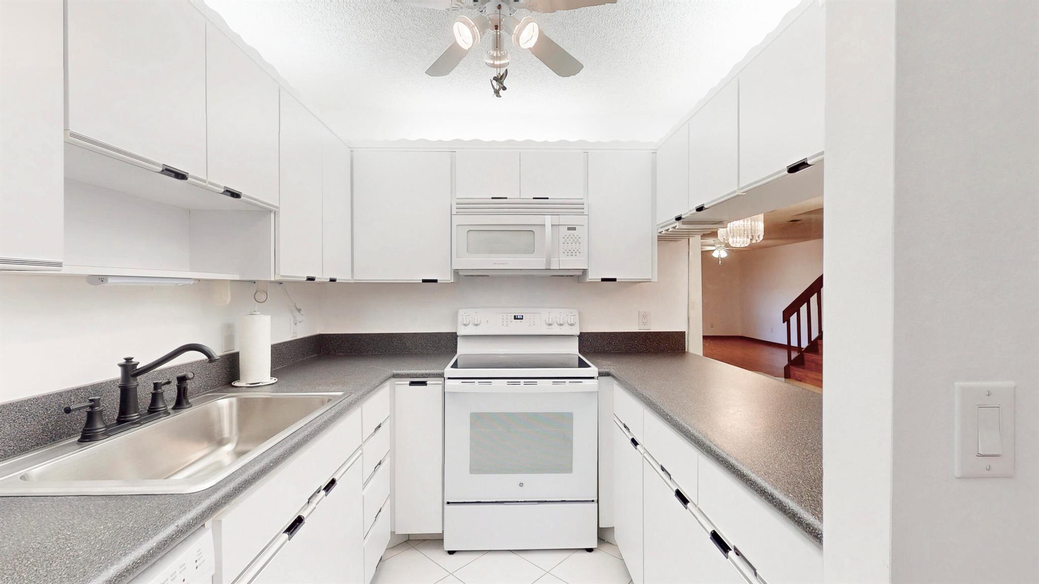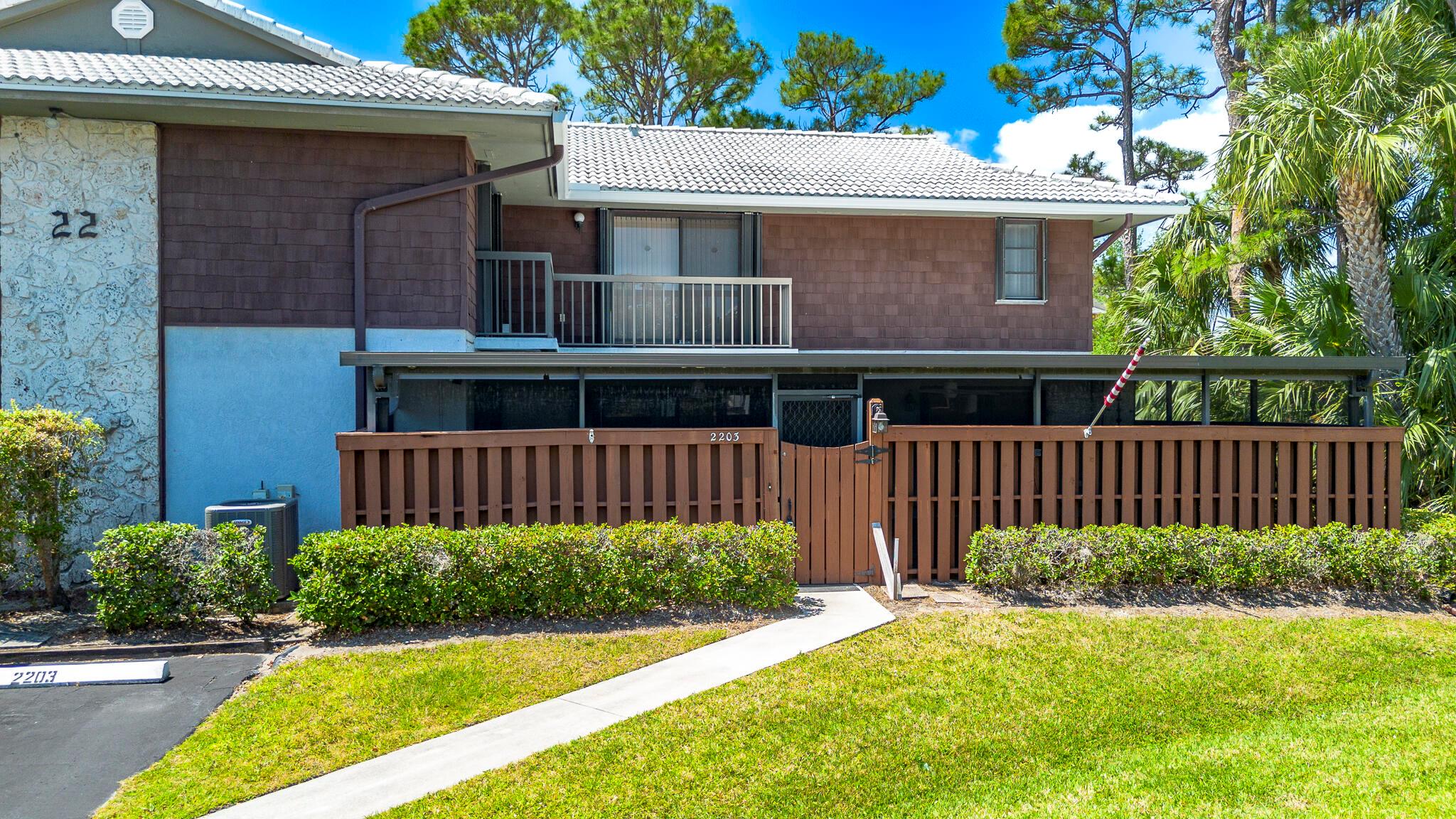 Price Drop! Beautiful End-Unit Townhome in Sought-After Camelot Gardens! This unit is the only one for sale with an additional main floor den which easily converts to a 3rd bedroom This spacious 2-bedroom, 2.5-bath townhome offers the ideal blend of comfort, privacy, and low-maintenance living. Step inside to discover natural light, vaulted ceilings, updated kitchen appliances, and a breakfast bar. Multiple sliding doors lead to a massive screened and covered lanai, ideal for entertaining or enjoying Florida's indoor-outdoor lifestyle year-round. Upstairs, you'll find two generously sized ensuite bedrooms each with balcony access and accordion shutters for storm protection. The primary suite boasts a walk-in closet and private bath, while the