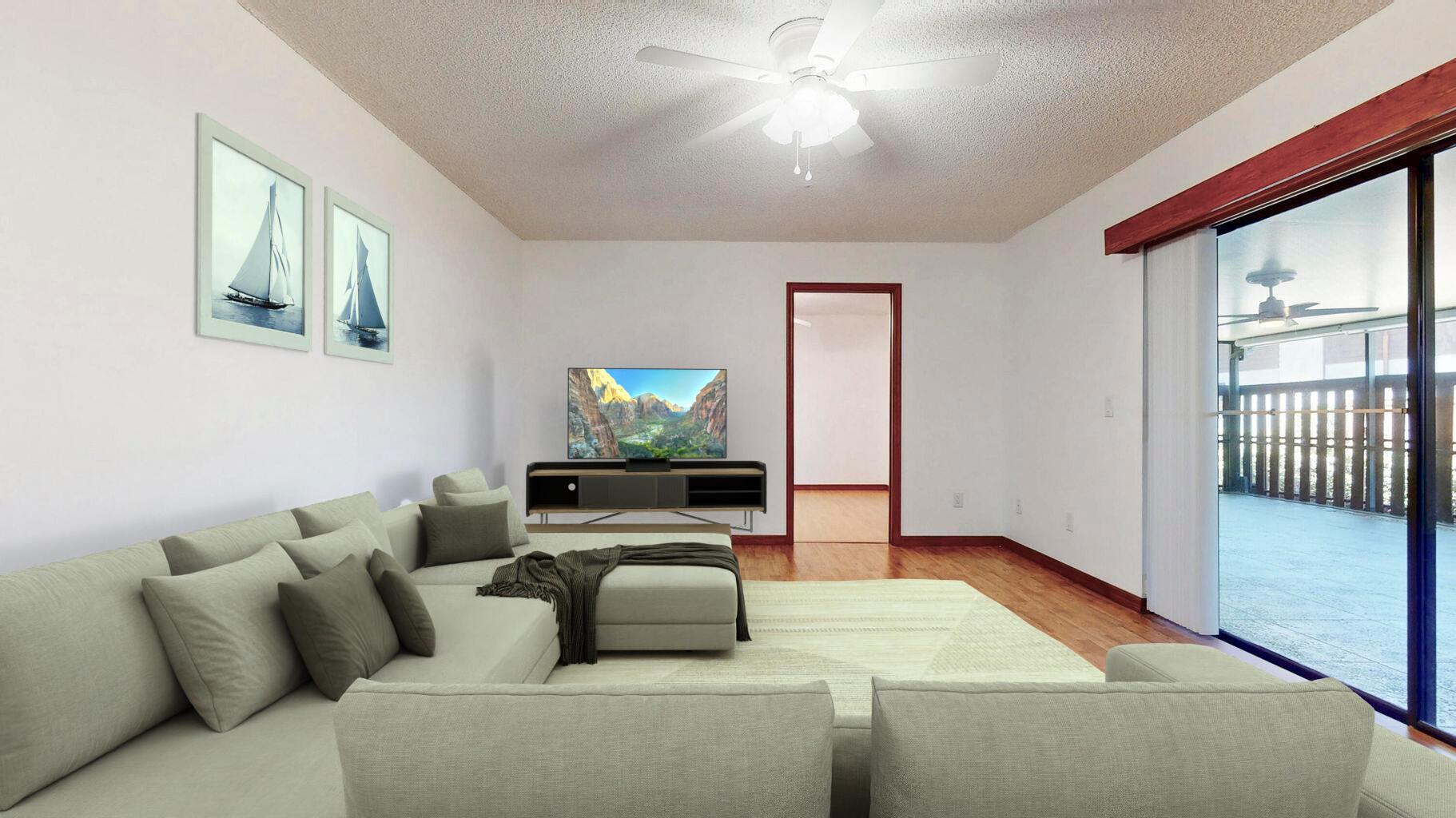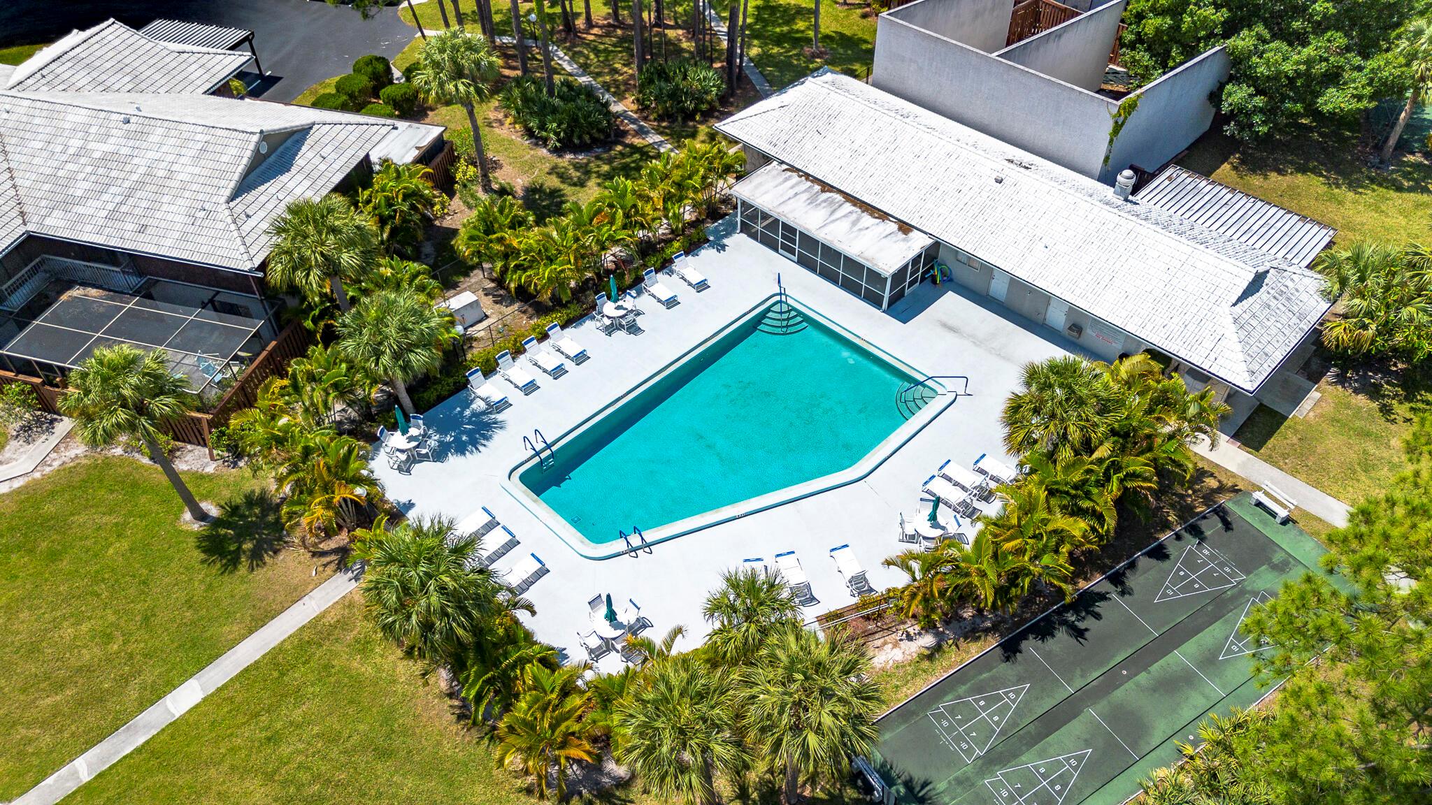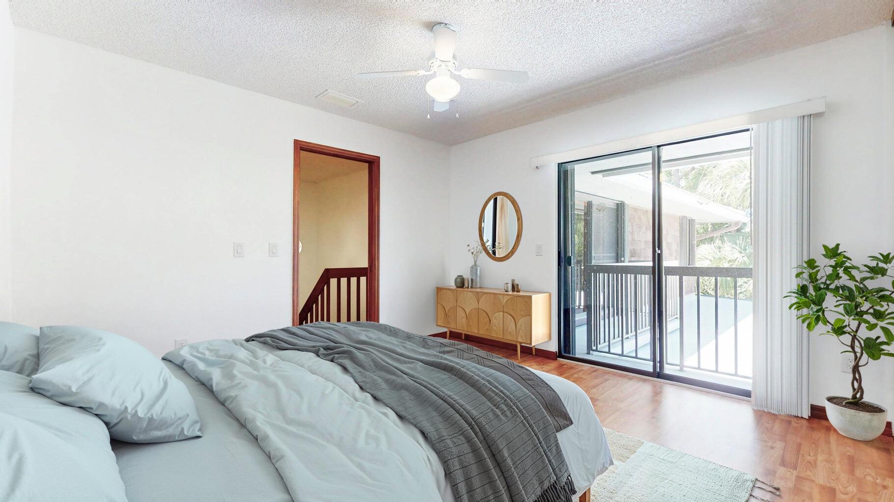 Price Drop! Beautiful End-Unit Townhome in Sought-After Camelot Gardens! This unit is the only one for sale with an additional main floor den which easily converts to a 3rd bedroom This spacious 2-bedroom, 2.5-bath townhome offers the ideal blend of comfort, privacy, and low-maintenance living. Step inside to discover natural light, vaulted ceilings, updated kitchen appliances, and a breakfast bar. Multiple sliding doors lead to a massive screened and covered lanai, ideal for entertaining or enjoying Florida's indoor-outdoor lifestyle year-round. Upstairs, you'll find two generously sized ensuite bedrooms each with balcony access and accordion shutters for storm protection. The primary suite boasts a walk-in closet and private bath, while the