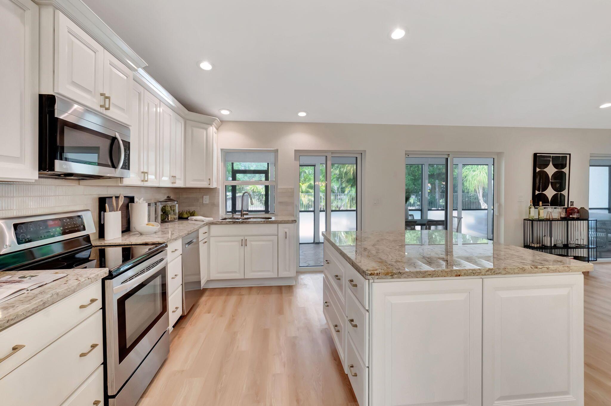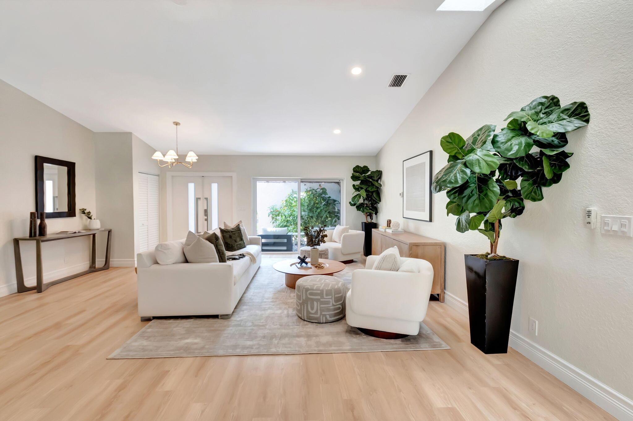 This is the South Florida lifestyle at its finest in the exclusive gated community of Boca Greens! Behind a charming gated courtyard entry, this beautifully staged pool home welcomes you with warmth, style & an abundance of upgrades. From the moment you arrive, you'll notice the attention to detail--from the fresh new backsplash and designer hardware to the new lighting fixtures that elevate every room. This light-filled residence offers just over 2,300 sq ft of elegant living space with soaring ceilings, Luxury Vinyl flooring & a seamless indoor-outdoor flow ideal for entertaining. Structural upgrades include a tile roof (2023), impact windows/doors completed in phases (2022), A/C (2018), water heater (2021)--providing peace of mind & energy efficiency. Step outside to your private