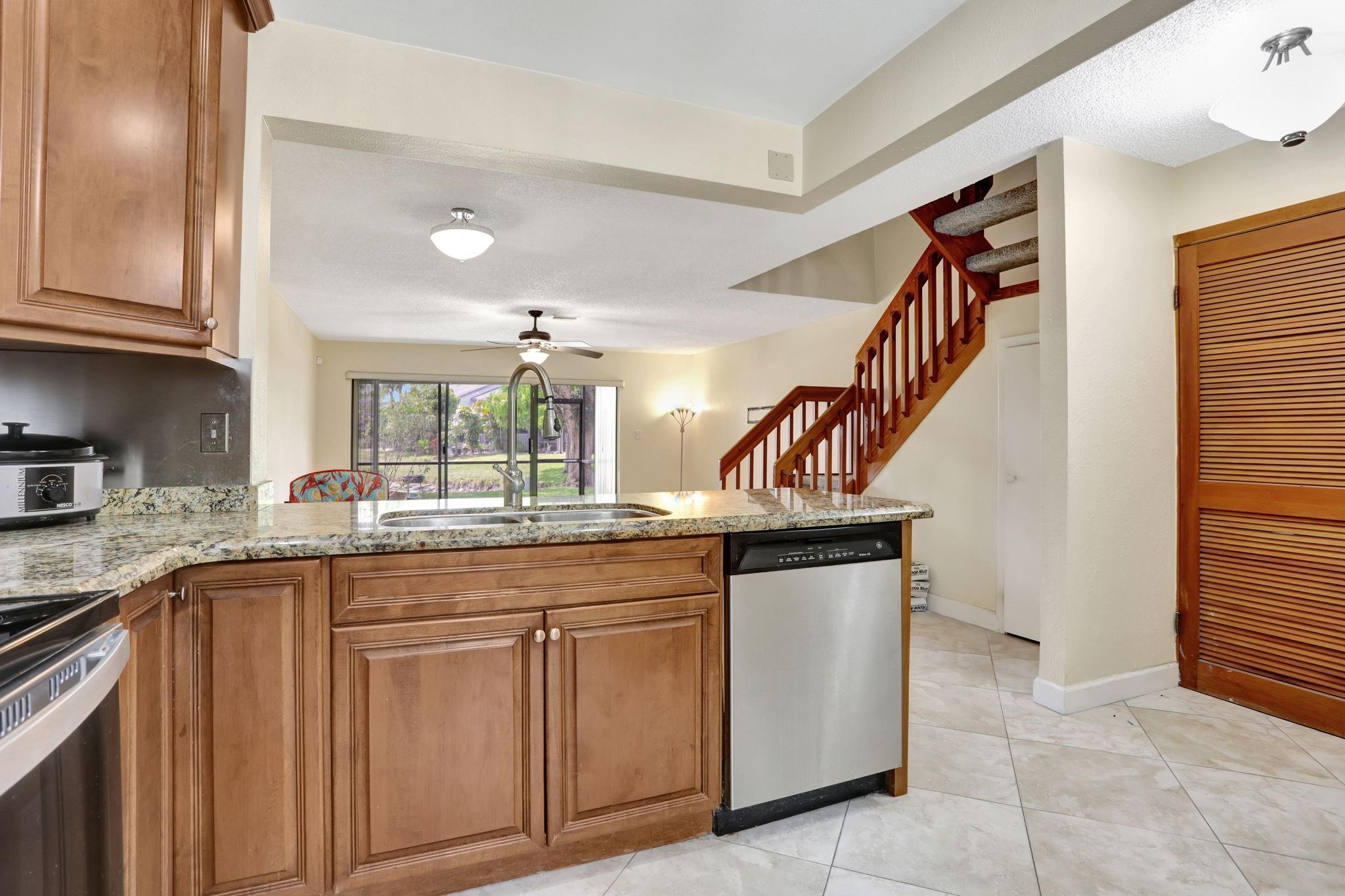 Ready for immediate occupancy, this exceptional 2 bed 2 & Half bath townhome located in the highly sought-after Township of Coconut Creek offers a spacious & flexible living space. Once entering you are greeted with Tile and Laminate wood floors, a renovated kitchen equipped with stainless steel appliances & granite countertops. Full laundry room on 1st floor & half bath. Each bedroom on 2nd floor features its own en-suite bath for ultimate privacy and comfort, with beautiful oak wood cabinets and granite in primary bath & walk in closet. All wood laminate as well on 2nd floor. An open-concept great room that seamlessly flows onto the screened back patio with tranquil water views great for both everyday living and entertaining.