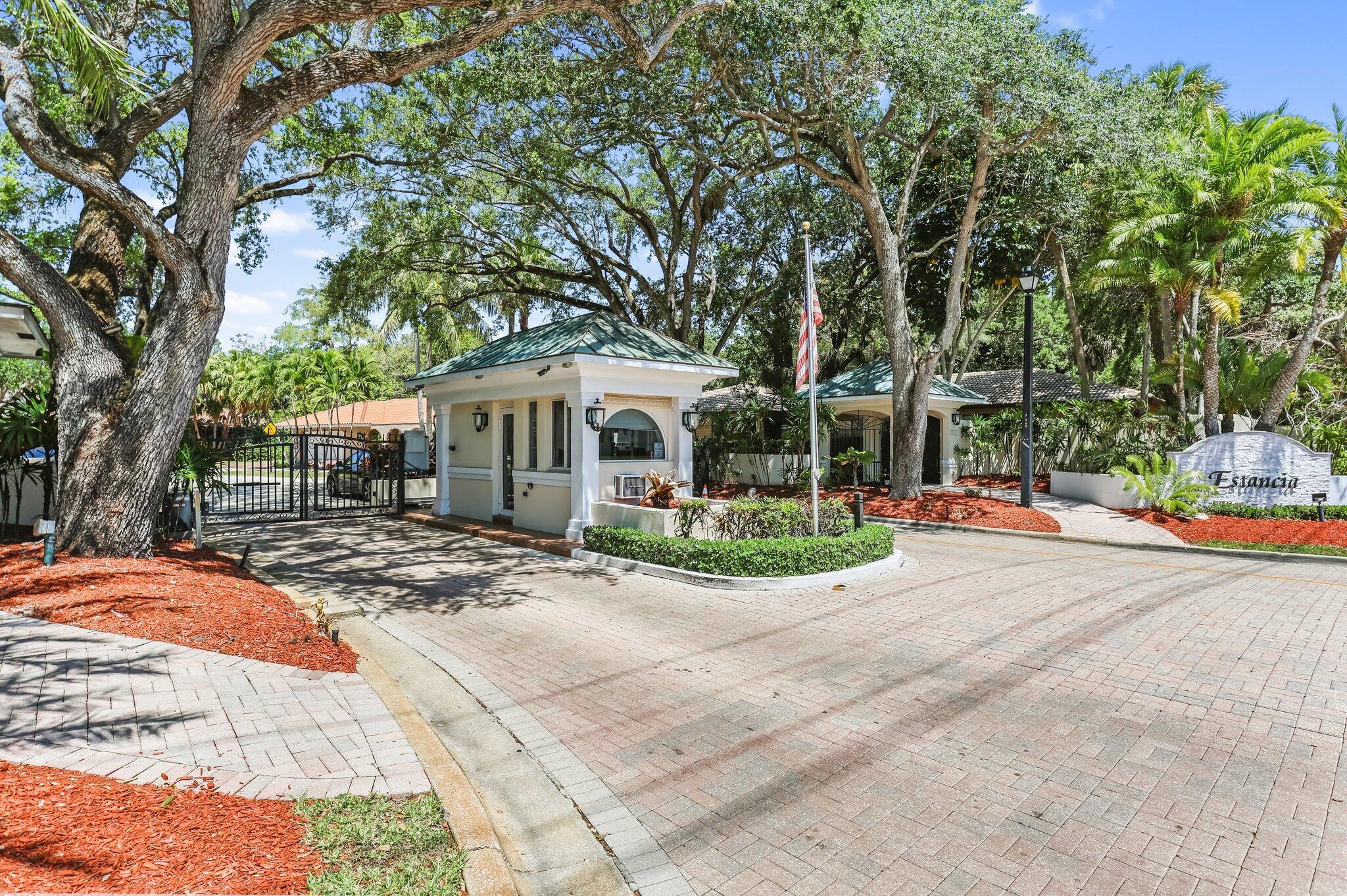 Located in the highly sought-after gated community of Estancia, this charming and meticulously maintained 4-bedroom, 2.5-bathroom home with a 2-car garage offers comfort, privacy, and a prime central Boca Raton location. Positioned on a quiet interior lot, the property offers added seclusion. Step inside to a freshly painted interior with new luxury vinyl flooring, refinished marble floors, LED lighting, plantation shutters, and built-in closets throughout. The expansive primary suite features a walk-in closet, additional closet space, dual vanity sinks, and a glass-enclosed shower. Enjoy outdoor living with a screen-enclosed marble patio, heated refinished pool w/ safety gate, and fenced yard. Impact windows and impact french doors, roof 2014, A/Cs 2020 & 2021, and hot water heaters 202