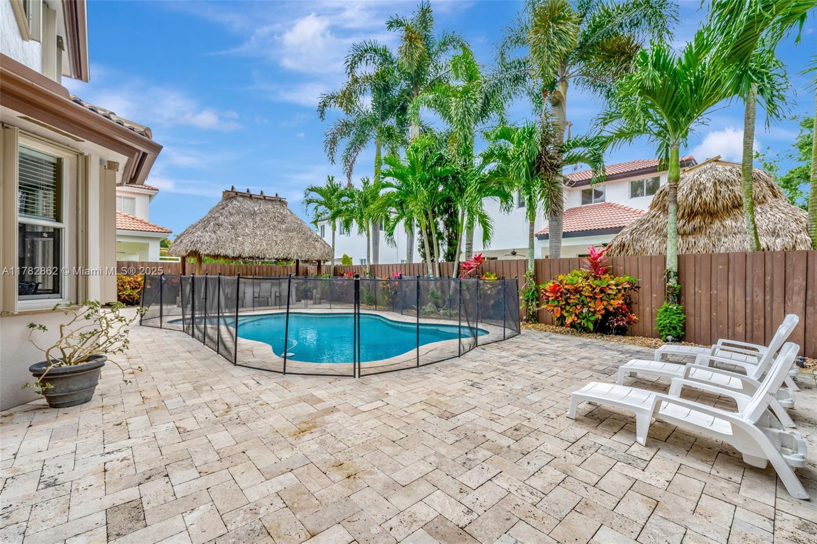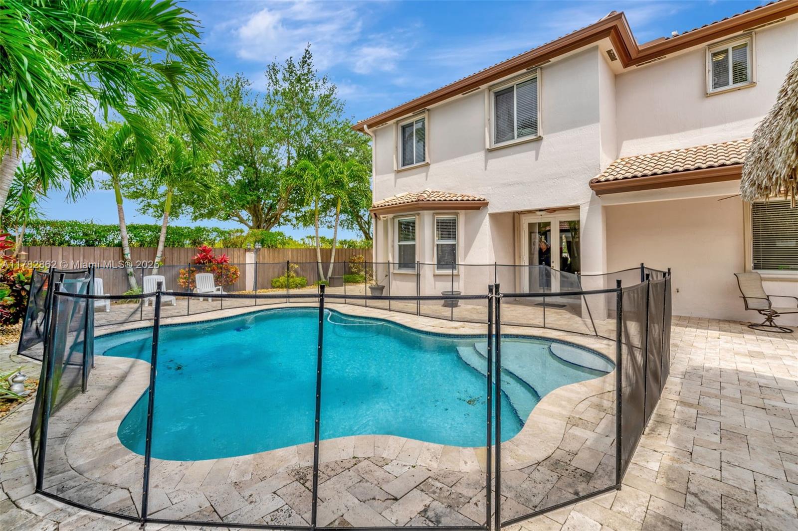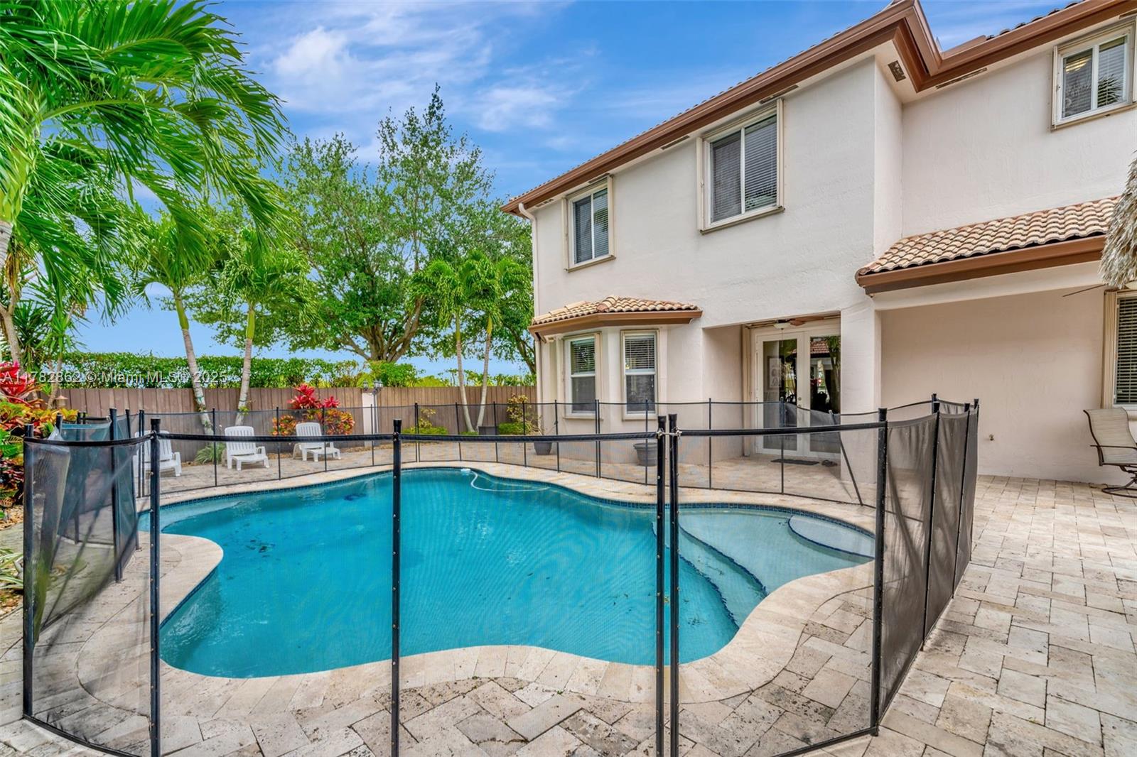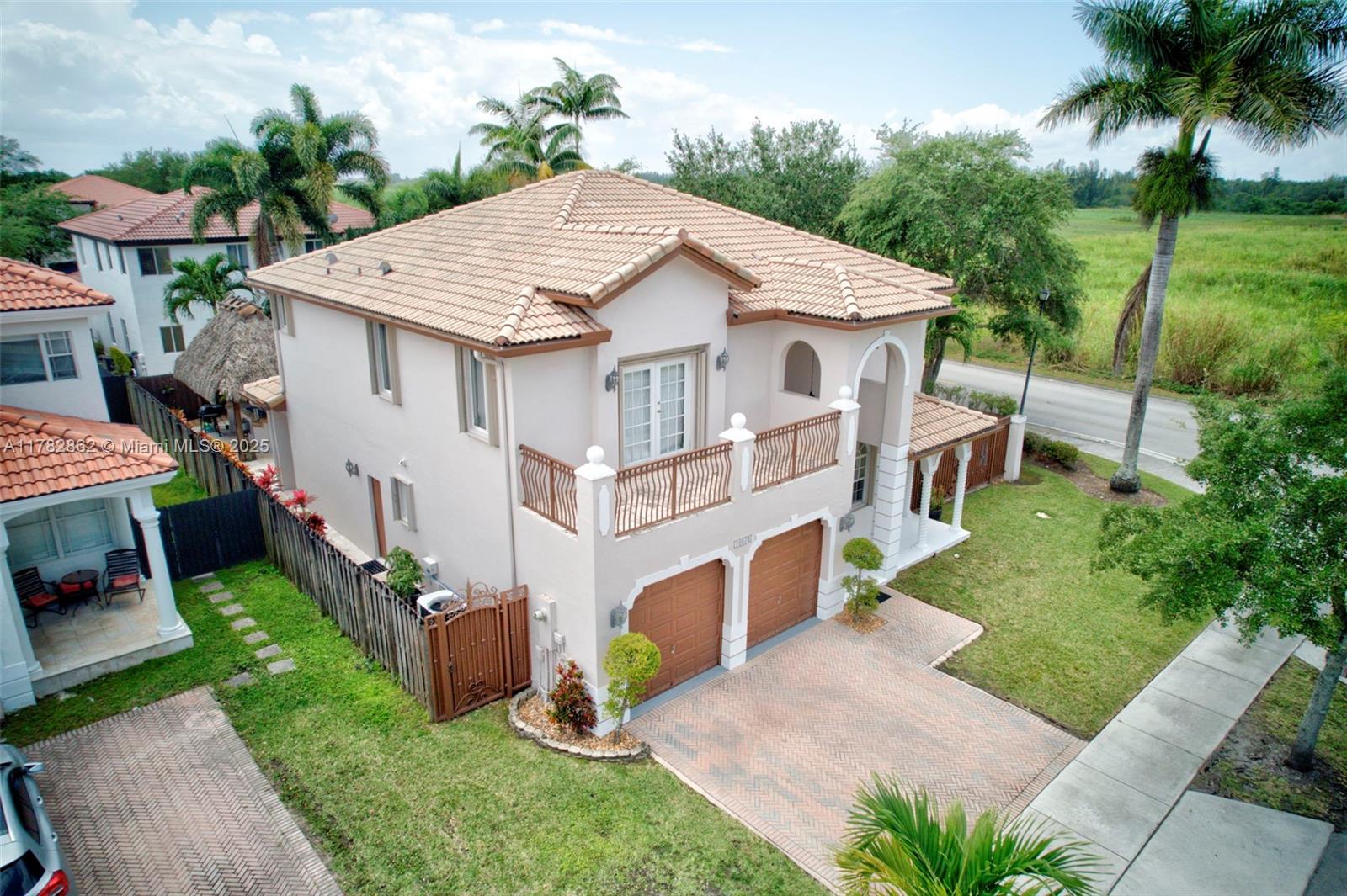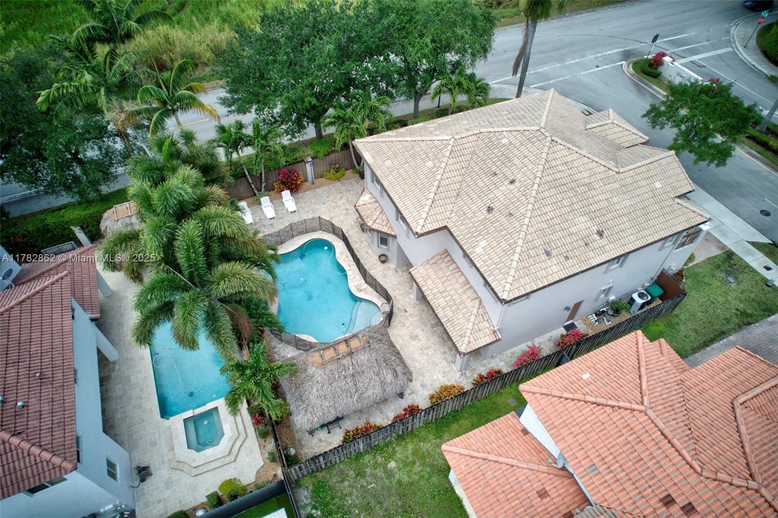 Amazing 5 bedroom 3 bath pool home in West Kendall. This Mediterranean style home has been lovingly and meticulously maintained. Located on an oversized corner lot. One bedroom and one full bathroom are located on the first floor. The interior features marble flooring throughout with an elegant wood staircase leading to the additional four bedrooms and two full bathrooms. The stylish kitchen includes granite counter tops with stainless steel appliances. The large family room is located directly across the kitchen for endless hours of entertainment. A laundry room, built in closets, crown moldings and alarm system are just some of the other features. The back yard is a tropical paradise with a custom pool, tiki hut with a bar area. The furniture is also available for sale.