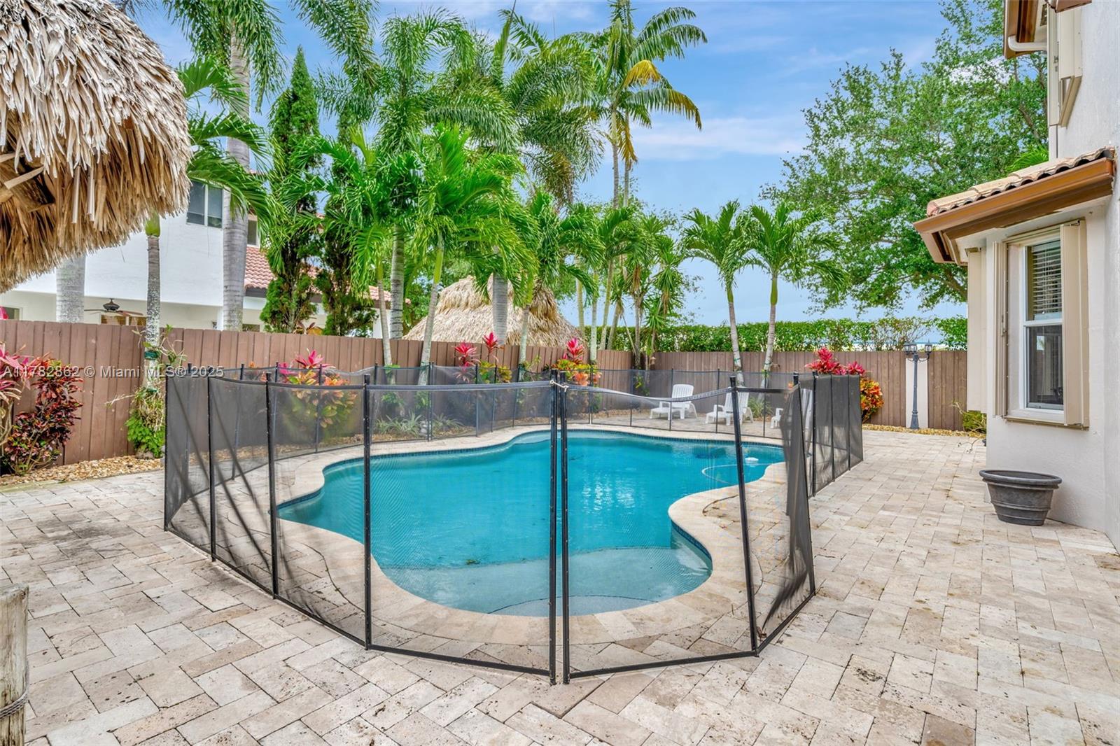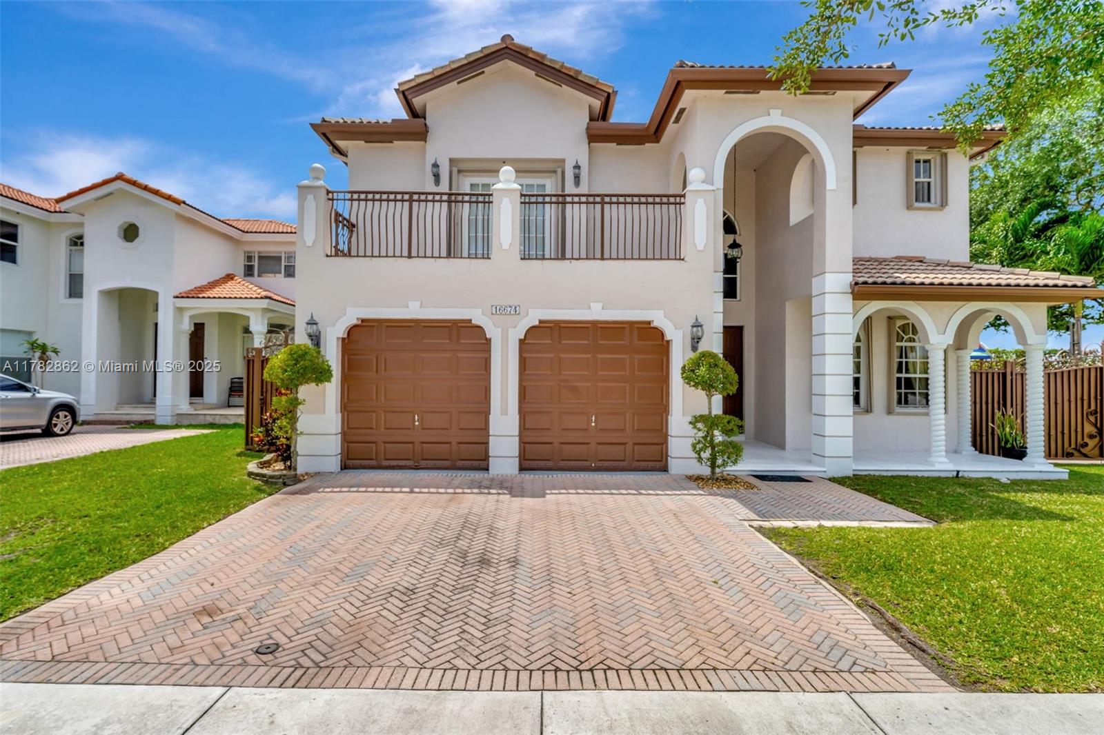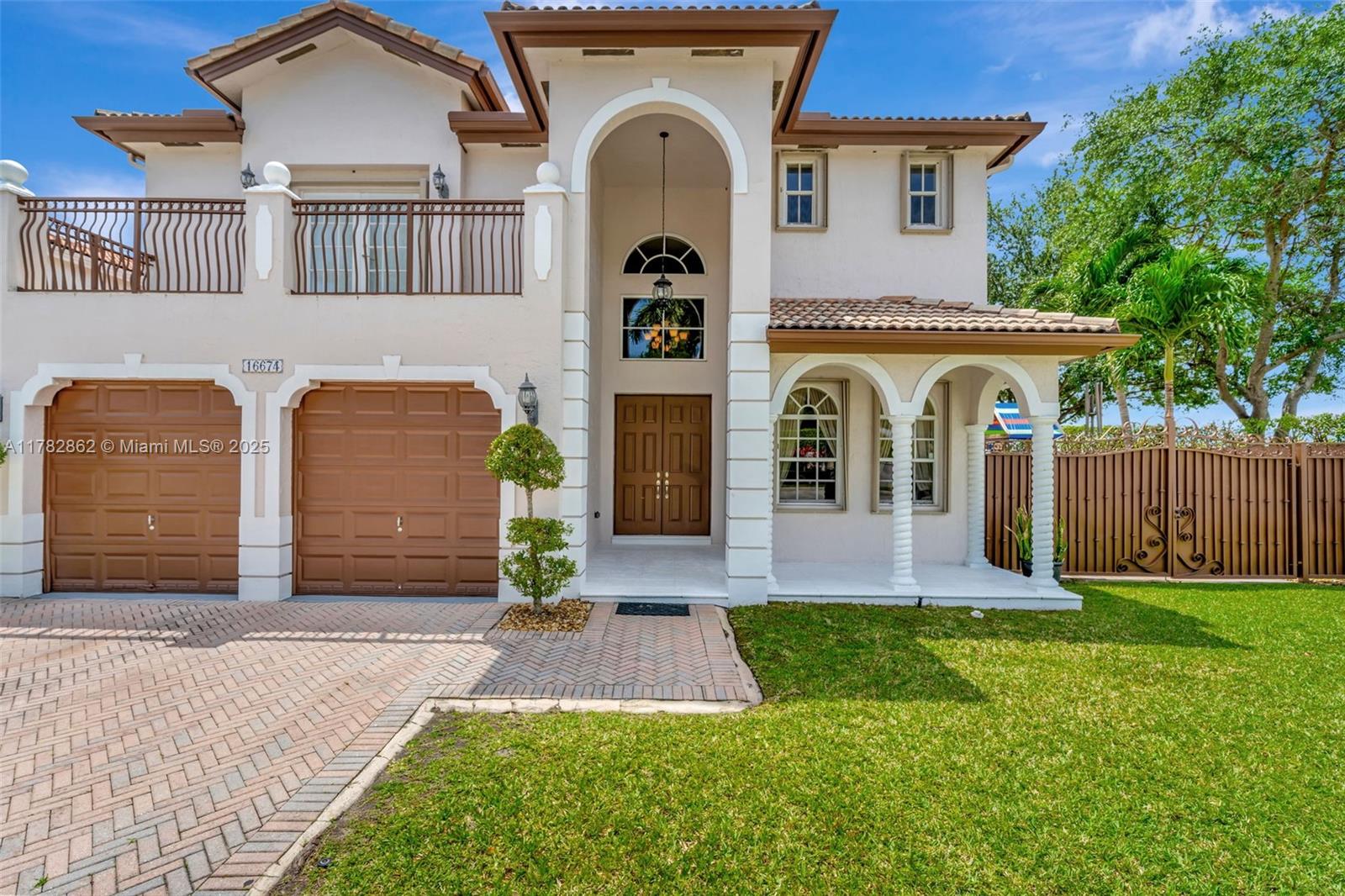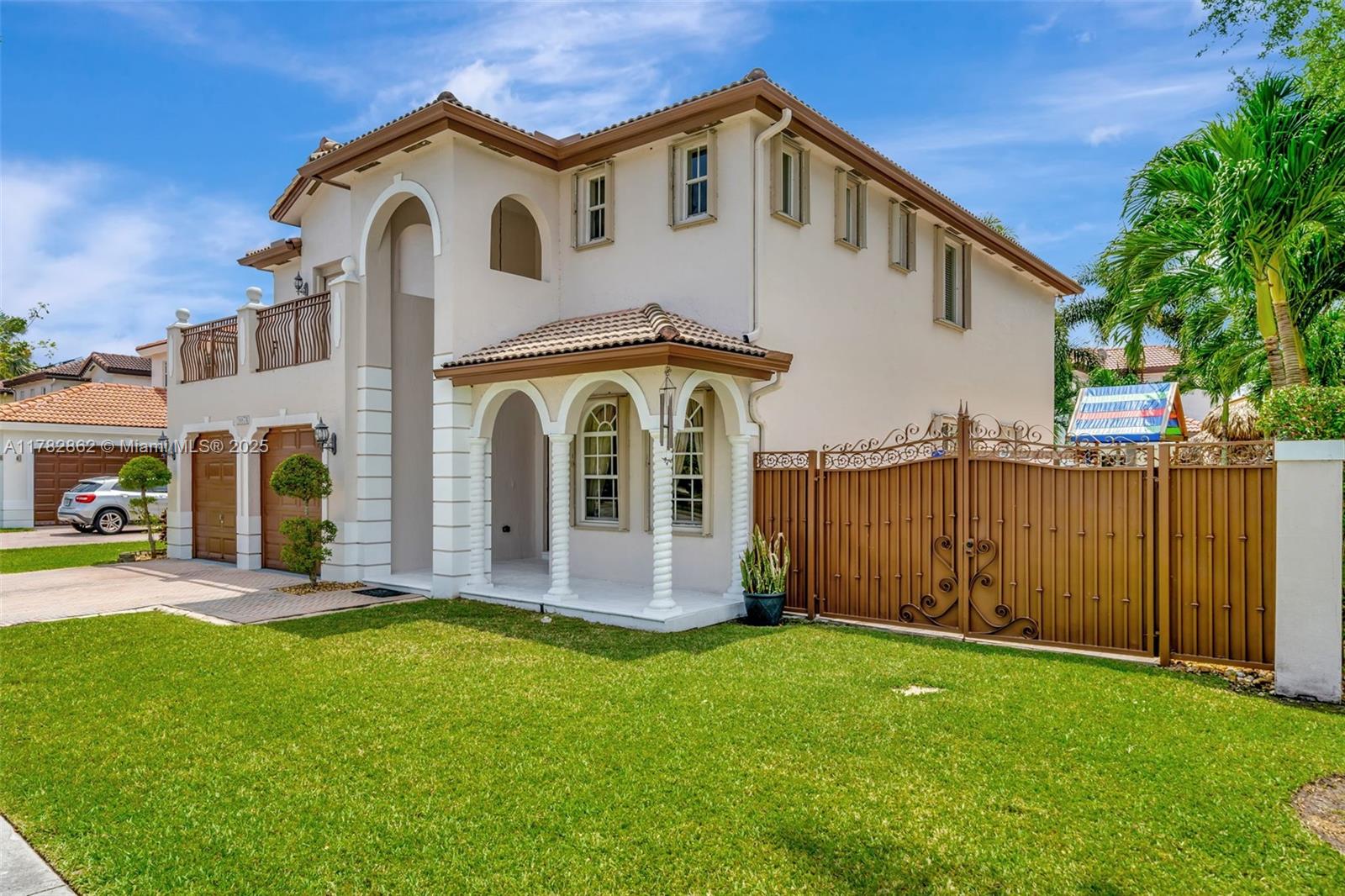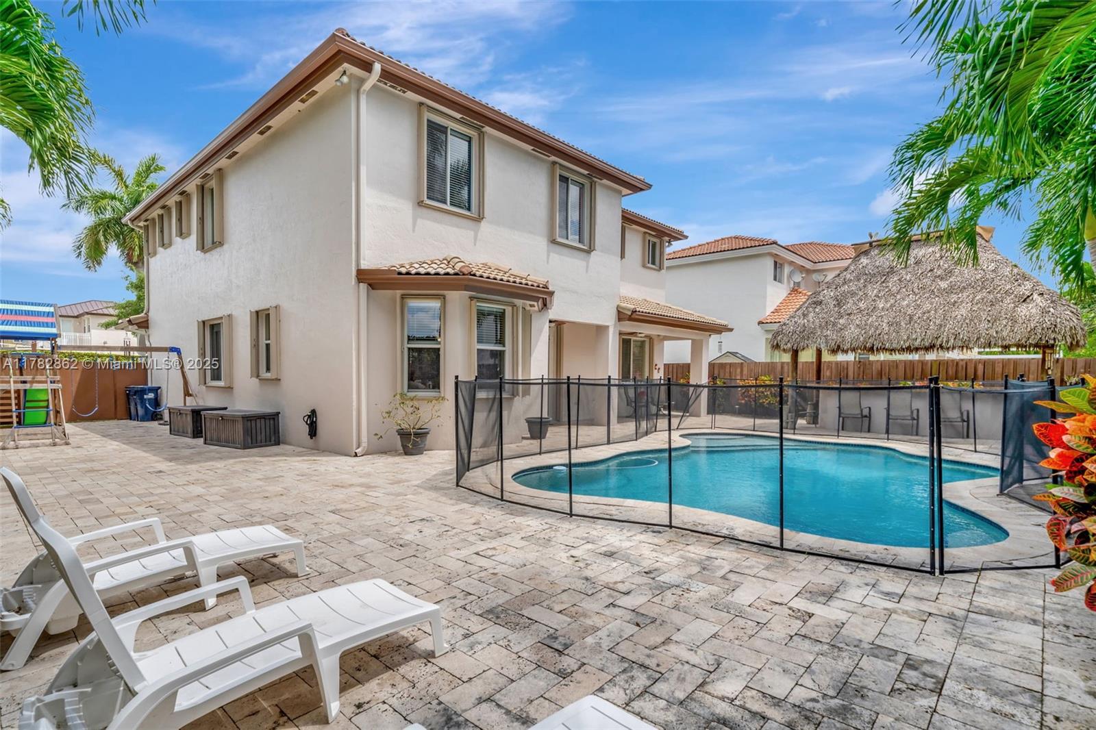 Amazing 5 bedroom 3 bath pool home in West Kendall. This Mediterranean style home has been lovingly and meticulously maintained. Located on an oversized corner lot. One bedroom and one full bathroom are located on the first floor. The interior features marble flooring throughout with an elegant wood staircase leading to the additional four bedrooms and two full bathrooms. The stylish kitchen includes granite counter tops with stainless steel appliances. The large family room is located directly across the kitchen for endless hours of entertainment. A laundry room, built in closets, crown moldings and alarm system are just some of the other features. The back yard is a tropical paradise with a custom pool, tiki hut with a bar area. The furniture is also available for sale.