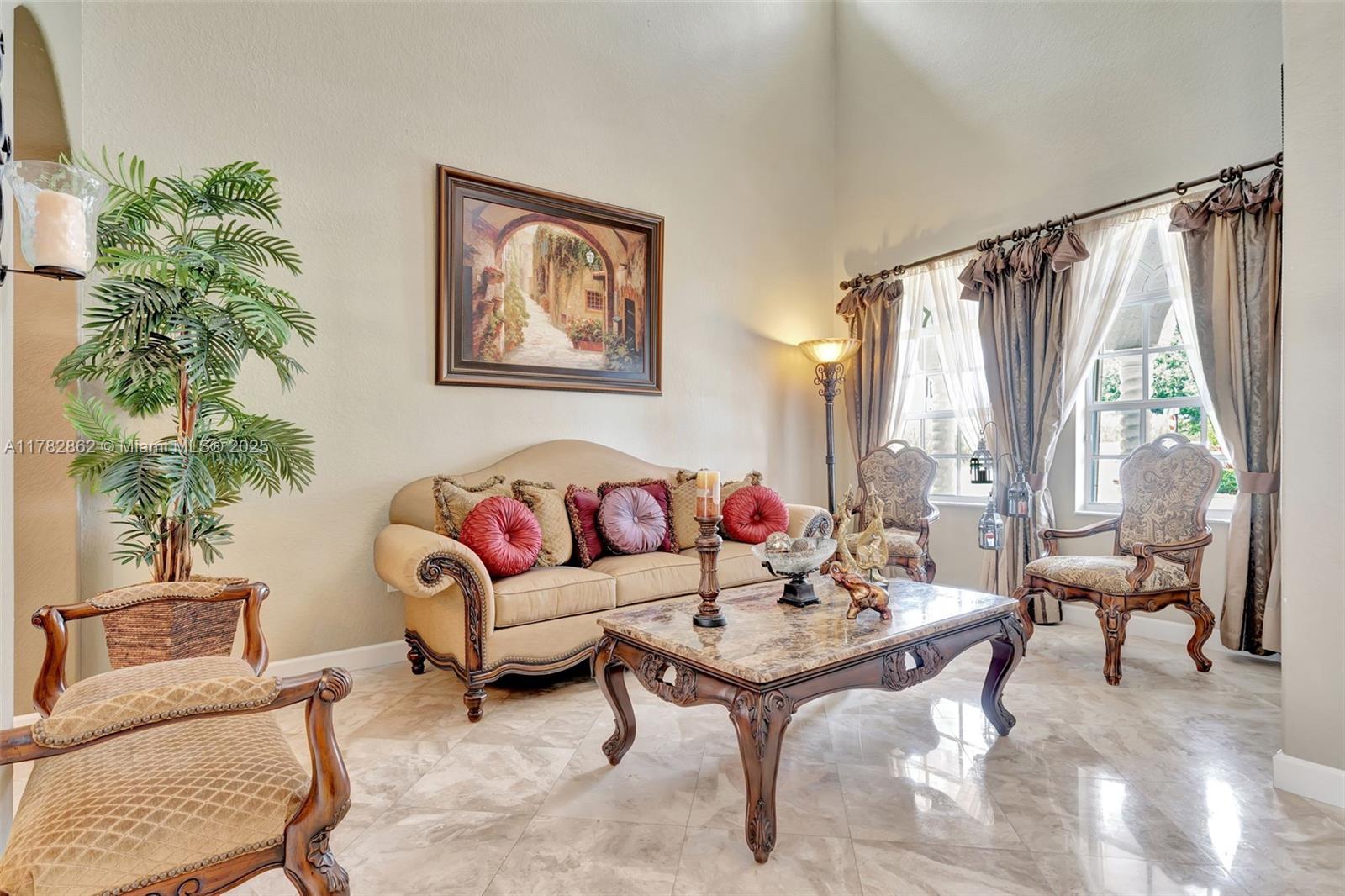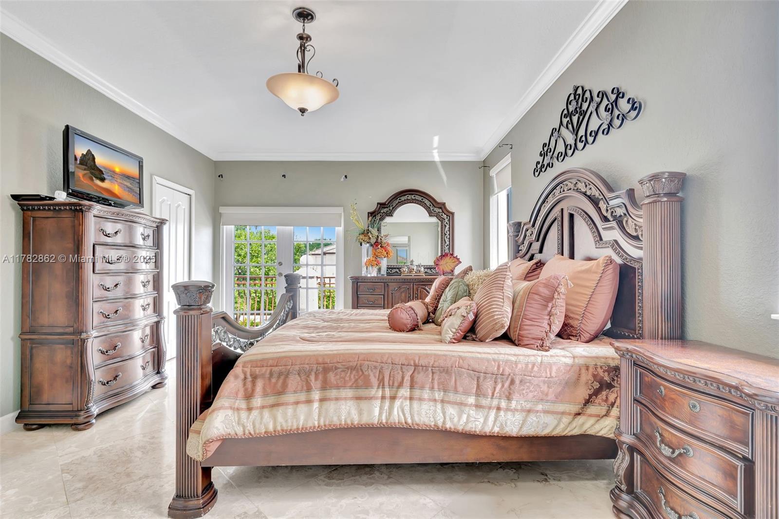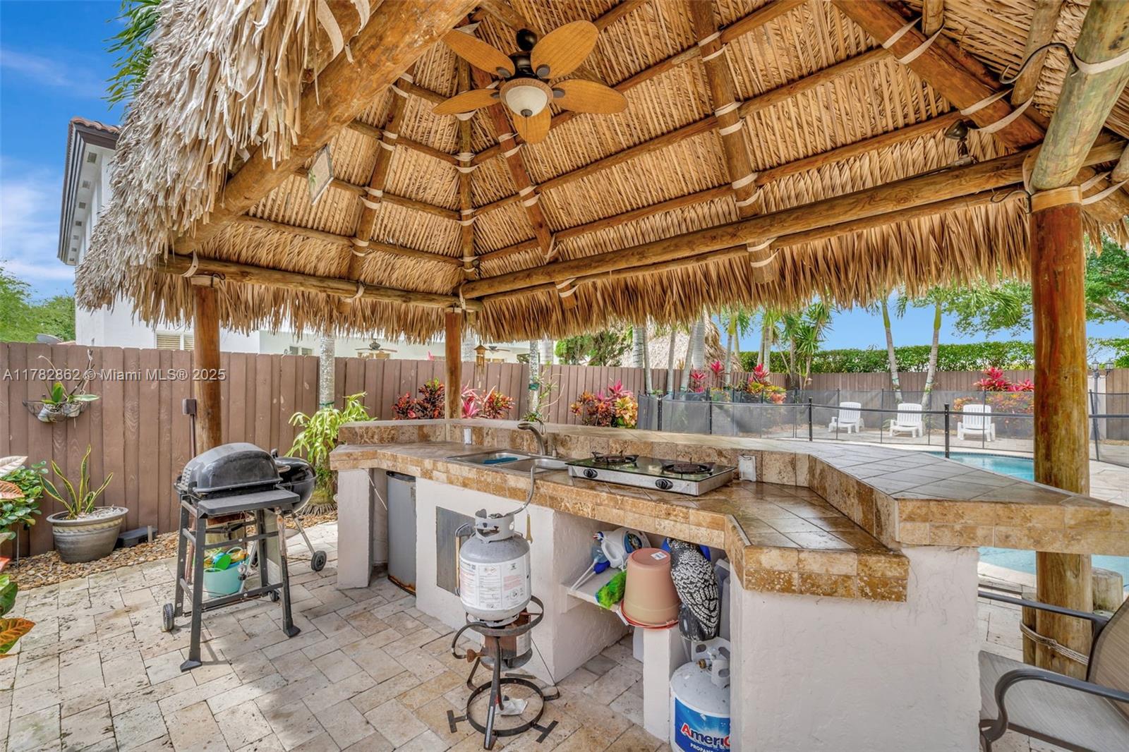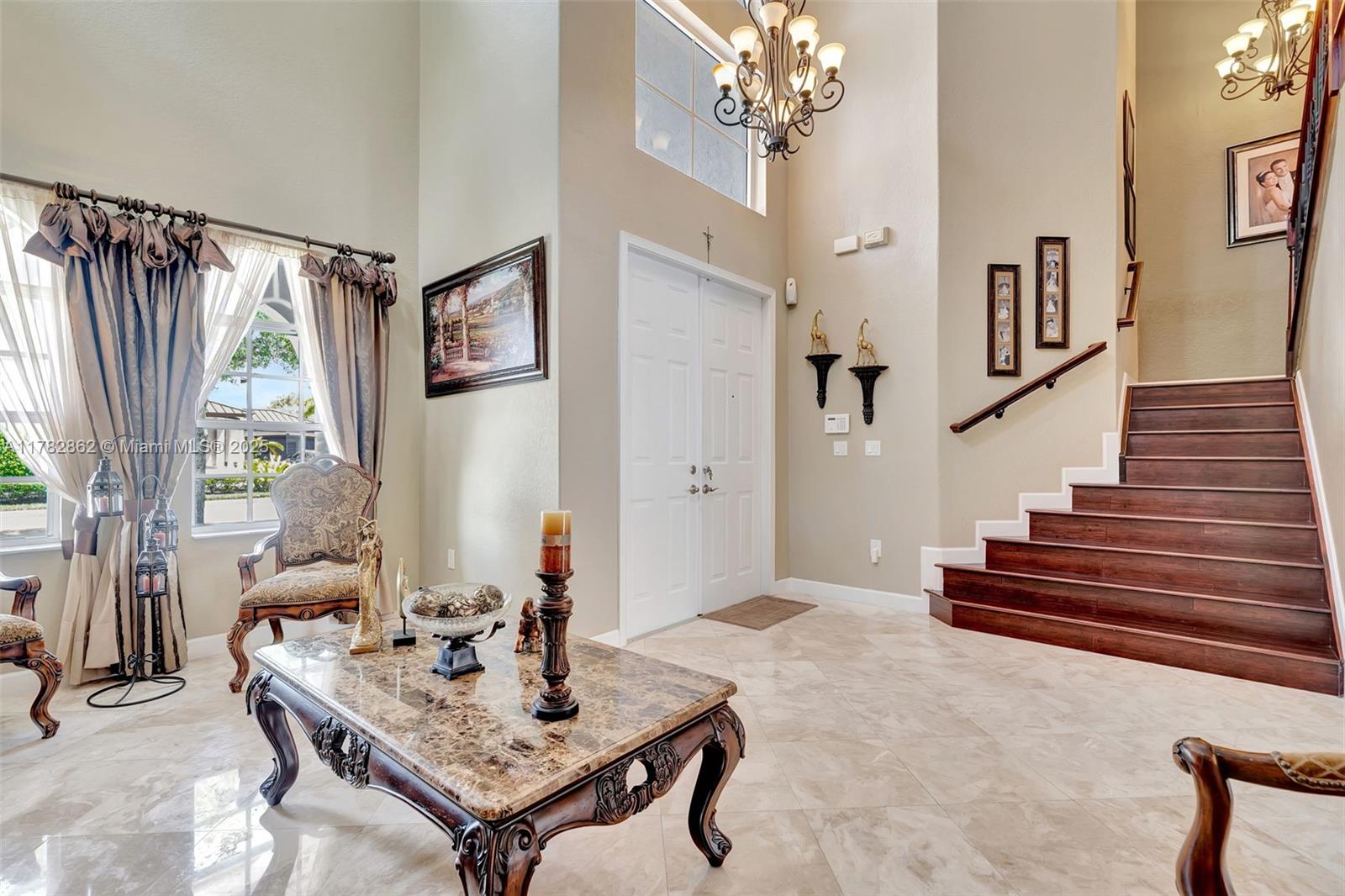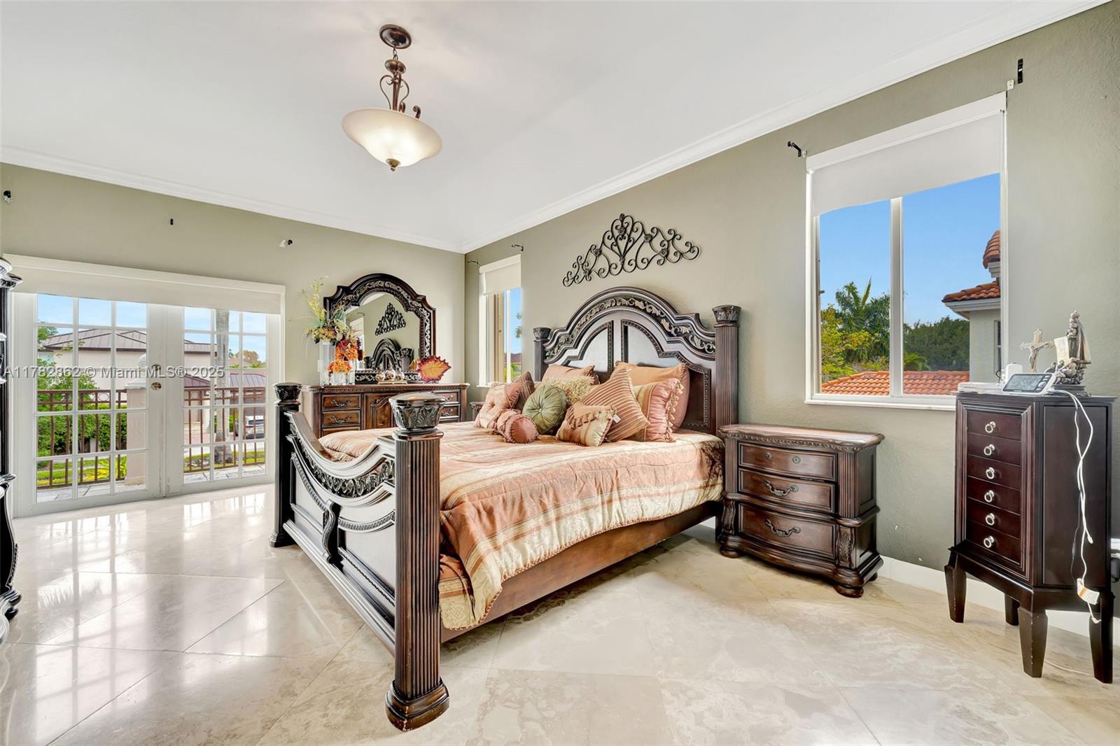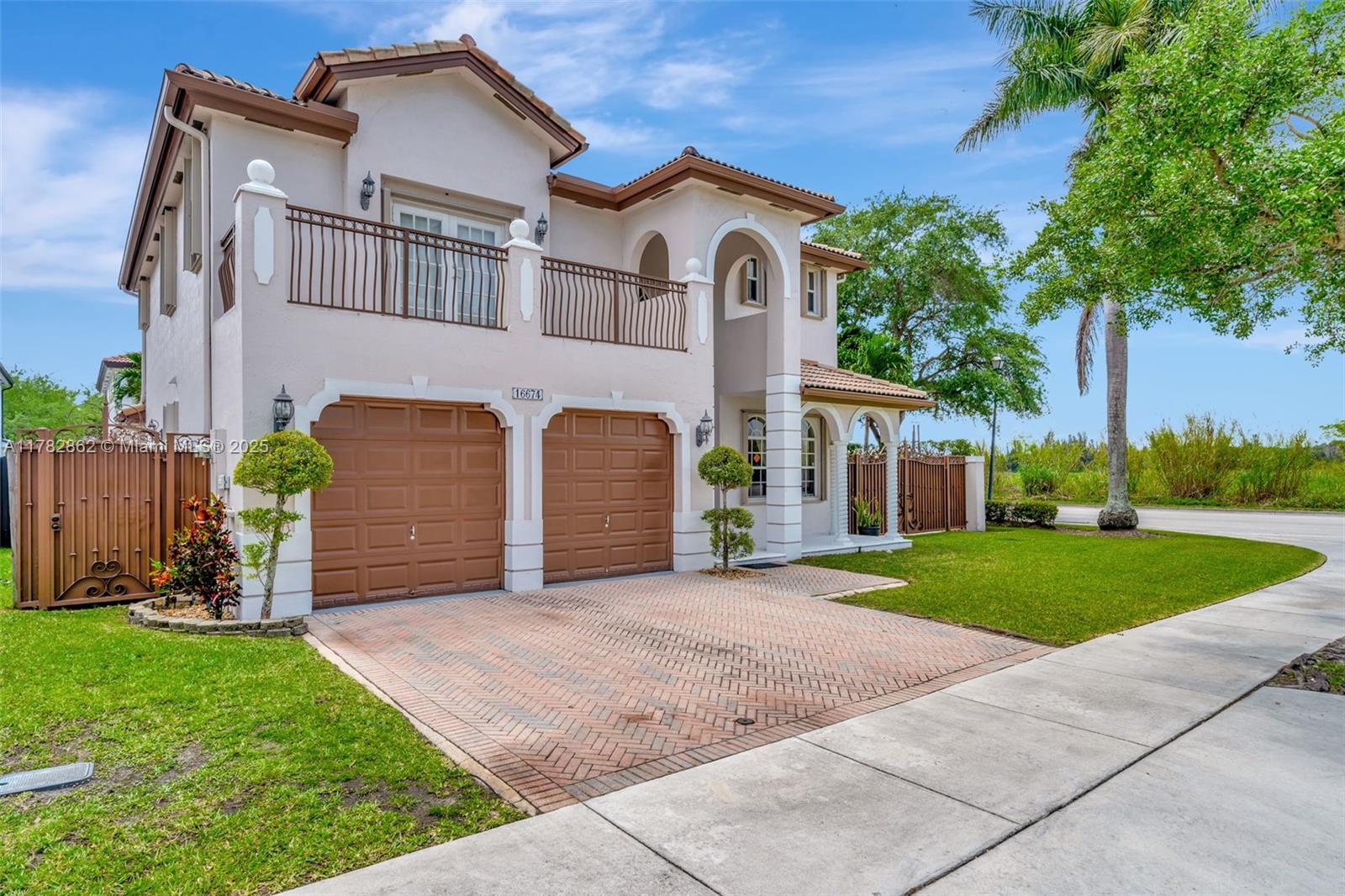 Amazing 5 bedroom 3 bath pool home in West Kendall. This Mediterranean style home has been lovingly and meticulously maintained. Located on an oversized corner lot. One bedroom and one full bathroom are located on the first floor. The interior features marble flooring throughout with an elegant wood staircase leading to the additional four bedrooms and two full bathrooms. The stylish kitchen includes granite counter tops with stainless steel appliances. The large family room is located directly across the kitchen for endless hours of entertainment. A laundry room, built in closets, crown moldings and alarm system are just some of the other features. The back yard is a tropical paradise with a custom pool, tiki hut with a bar area. The furniture is also available for sale.