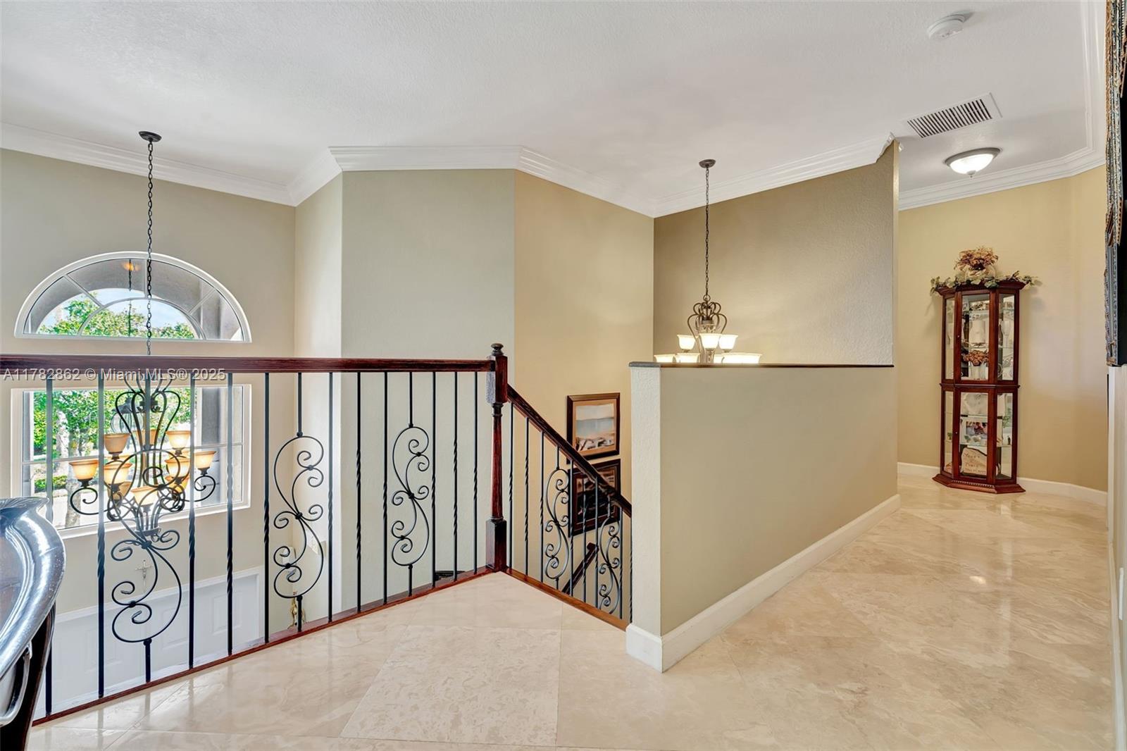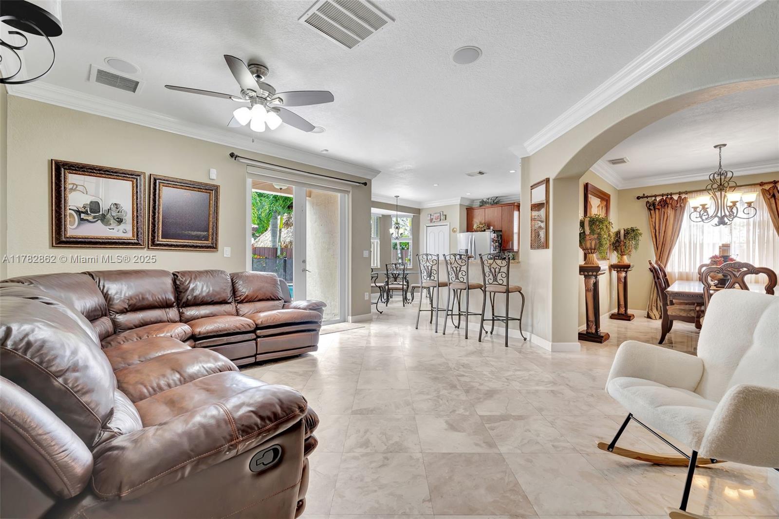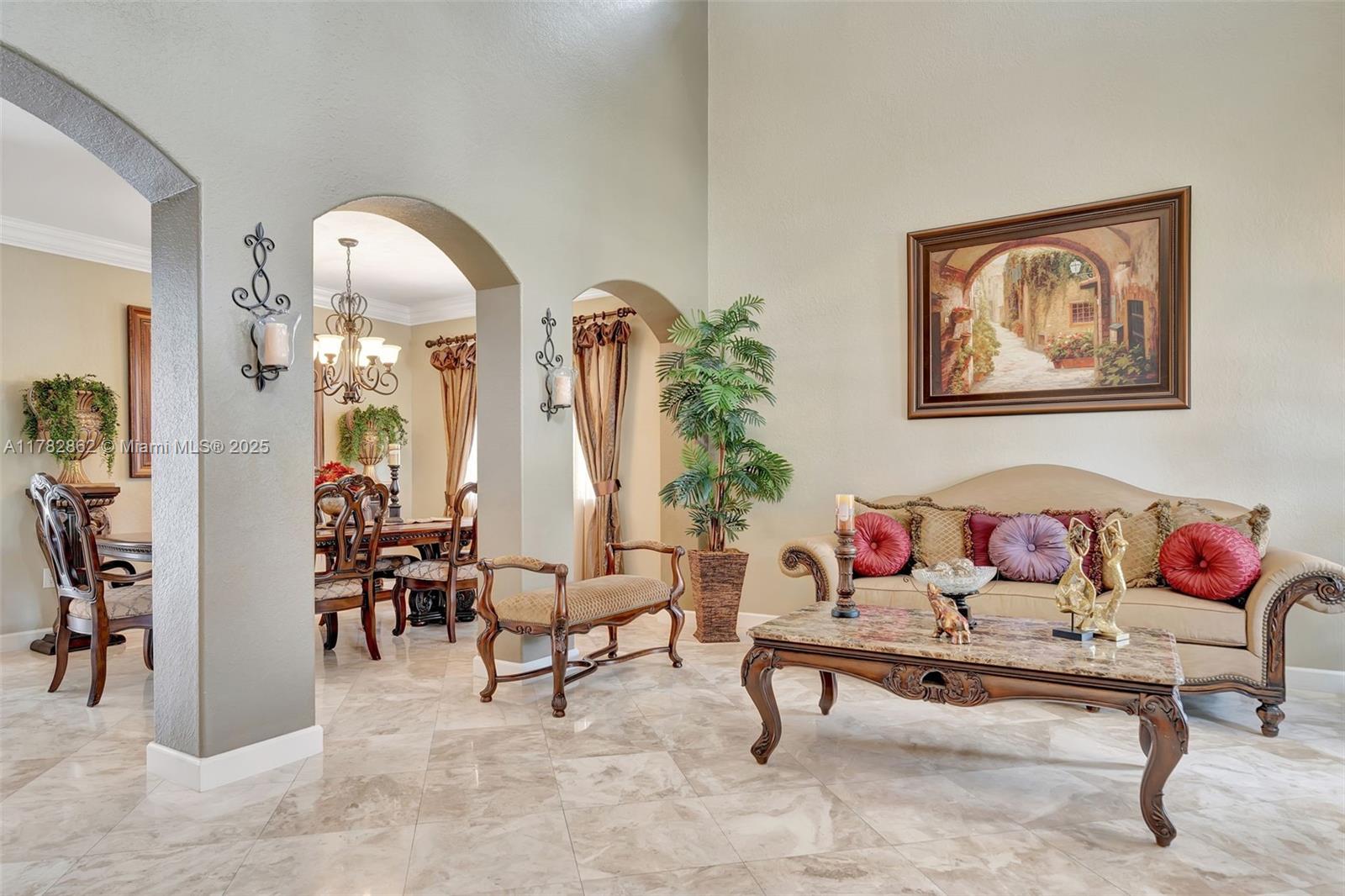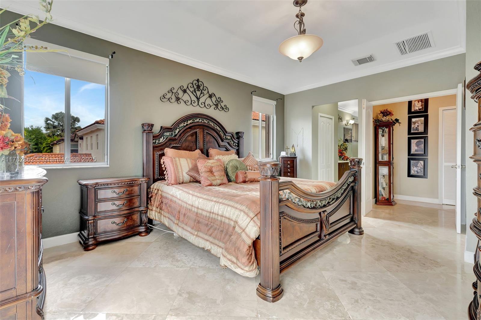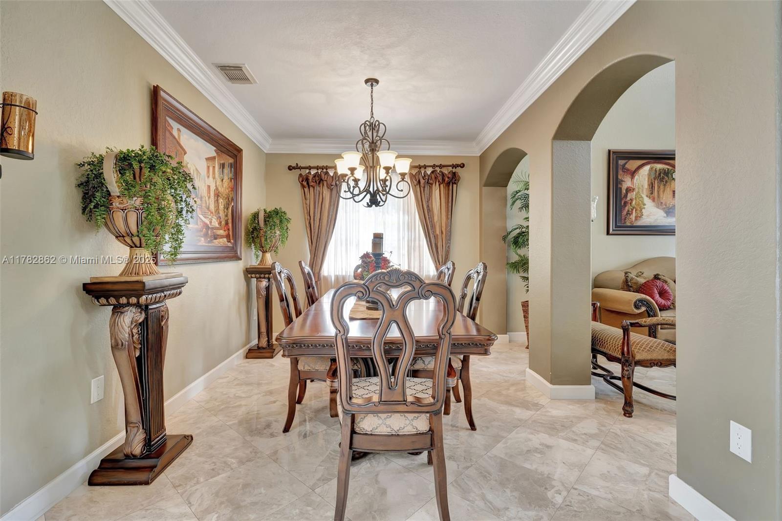 Amazing 5 bedroom 3 bath pool home in West Kendall. This Mediterranean style home has been lovingly and meticulously maintained. Located on an oversized corner lot. One bedroom and one full bathroom are located on the first floor. The interior features marble flooring throughout with an elegant wood staircase leading to the additional four bedrooms and two full bathrooms. The stylish kitchen includes granite counter tops with stainless steel appliances. The large family room is located directly across the kitchen for endless hours of entertainment. A laundry room, built in closets, crown moldings and alarm system are just some of the other features. The back yard is a tropical paradise with a custom pool, tiki hut with a bar area. The furniture is also available for sale.