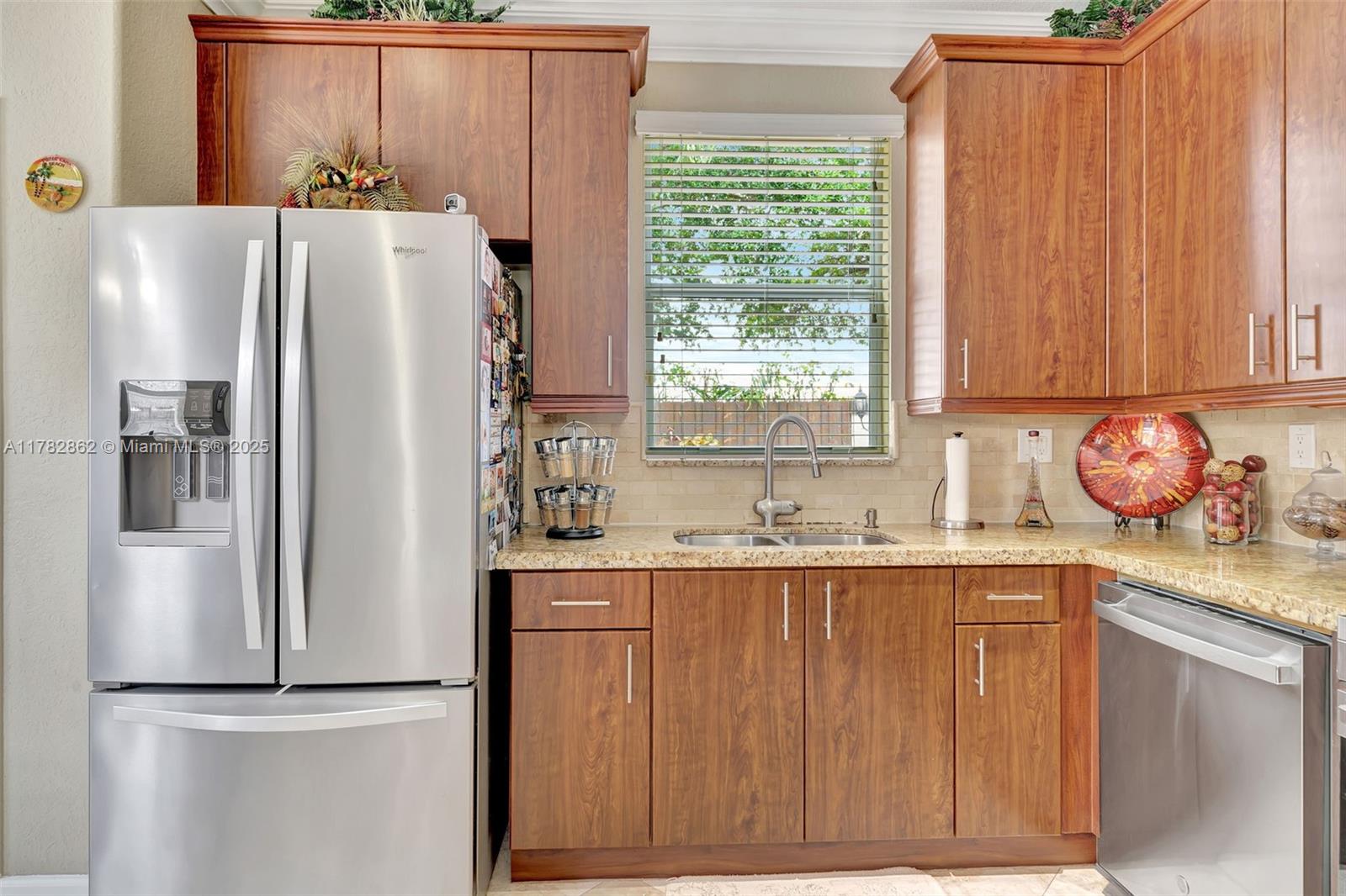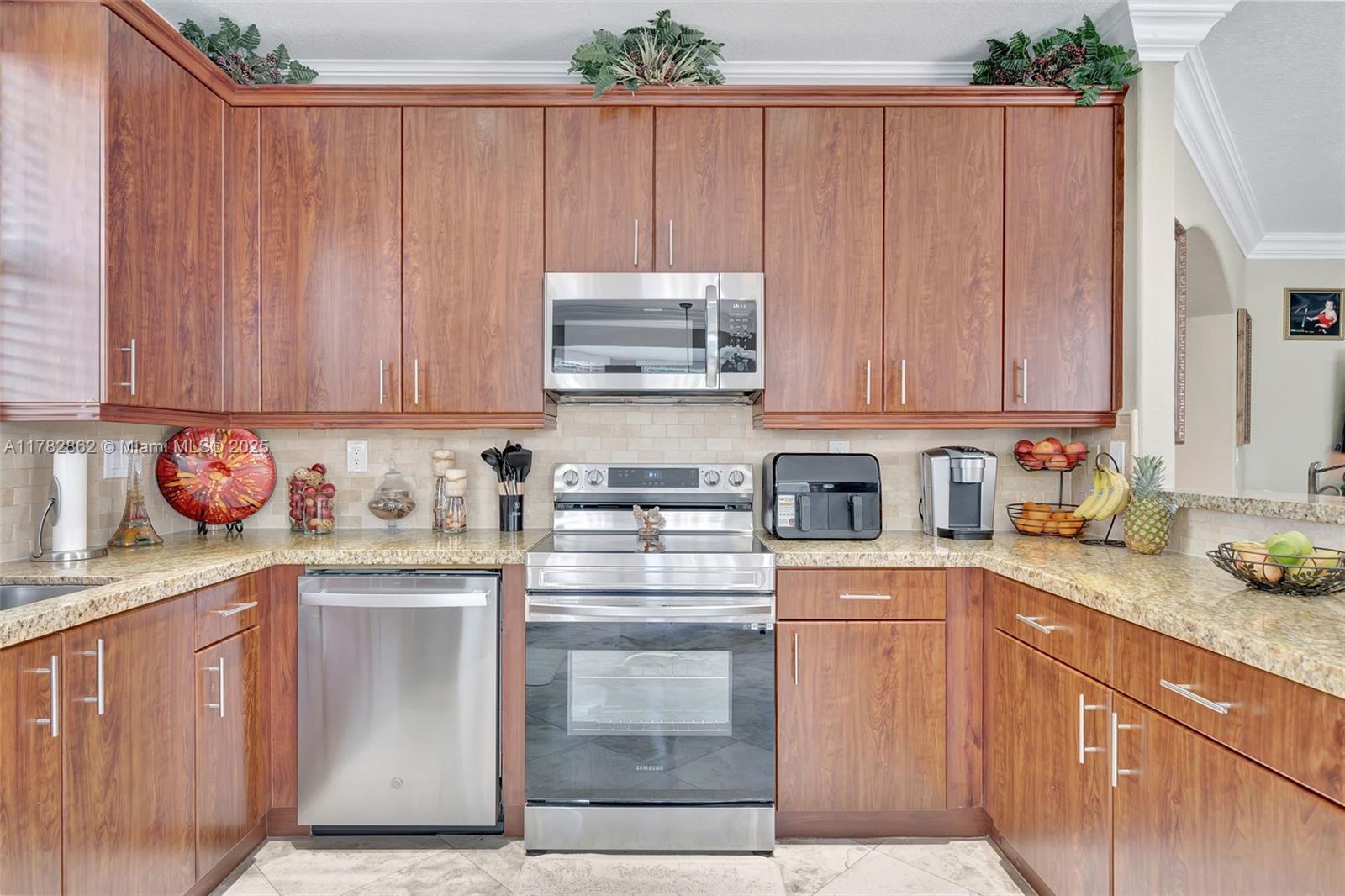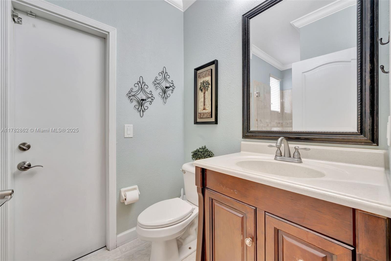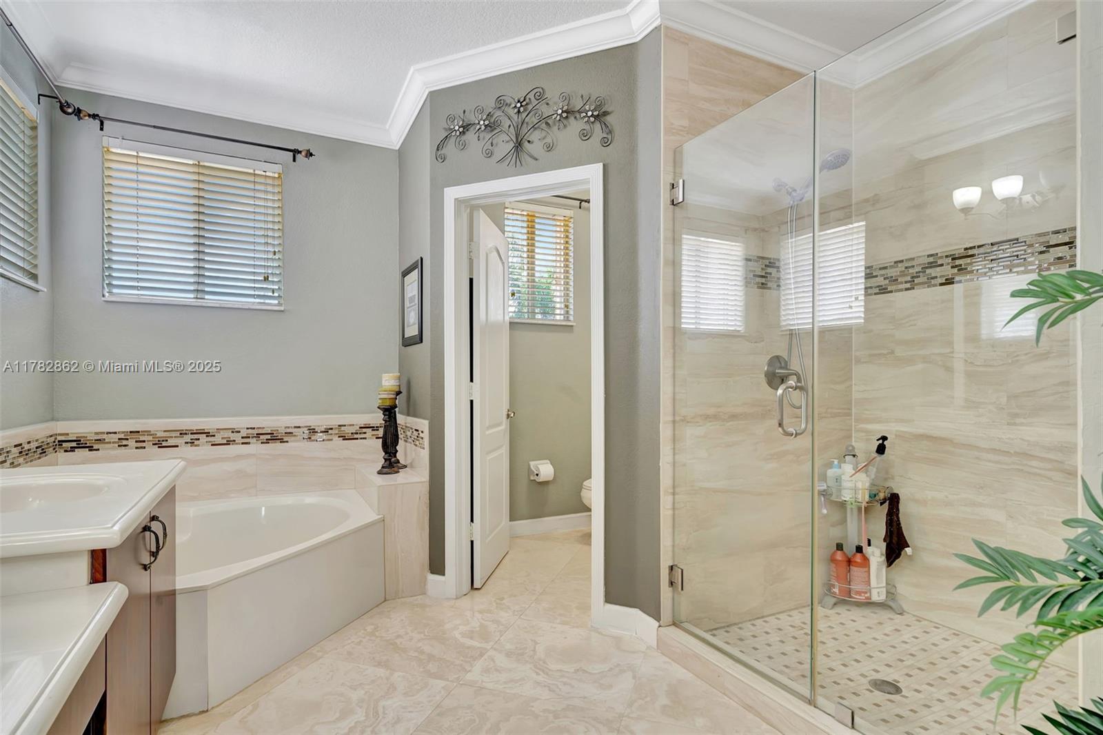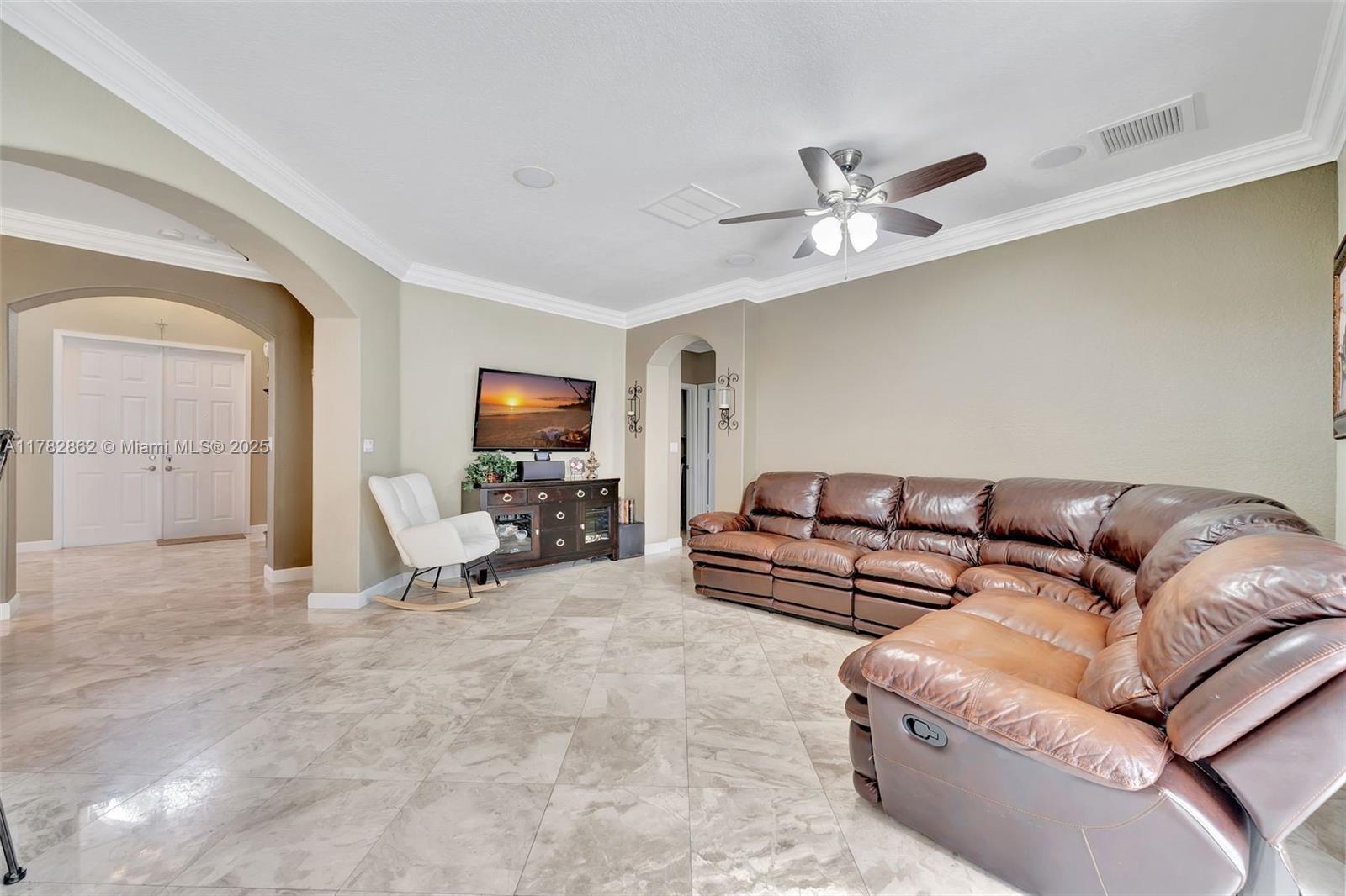 Amazing 5 bedroom 3 bath pool home in West Kendall. This Mediterranean style home has been lovingly and meticulously maintained. Located on an oversized corner lot. One bedroom and one full bathroom are located on the first floor. The interior features marble flooring throughout with an elegant wood staircase leading to the additional four bedrooms and two full bathrooms. The stylish kitchen includes granite counter tops with stainless steel appliances. The large family room is located directly across the kitchen for endless hours of entertainment. A laundry room, built in closets, crown moldings and alarm system are just some of the other features. The back yard is a tropical paradise with a custom pool, tiki hut with a bar area. The furniture is also available for sale.