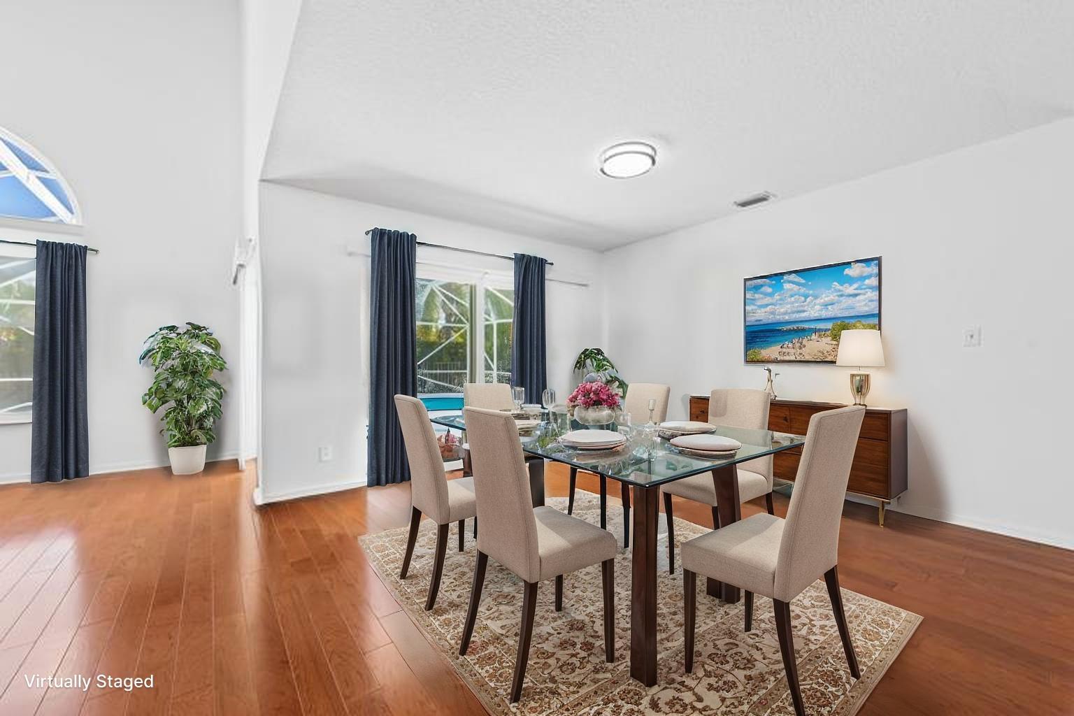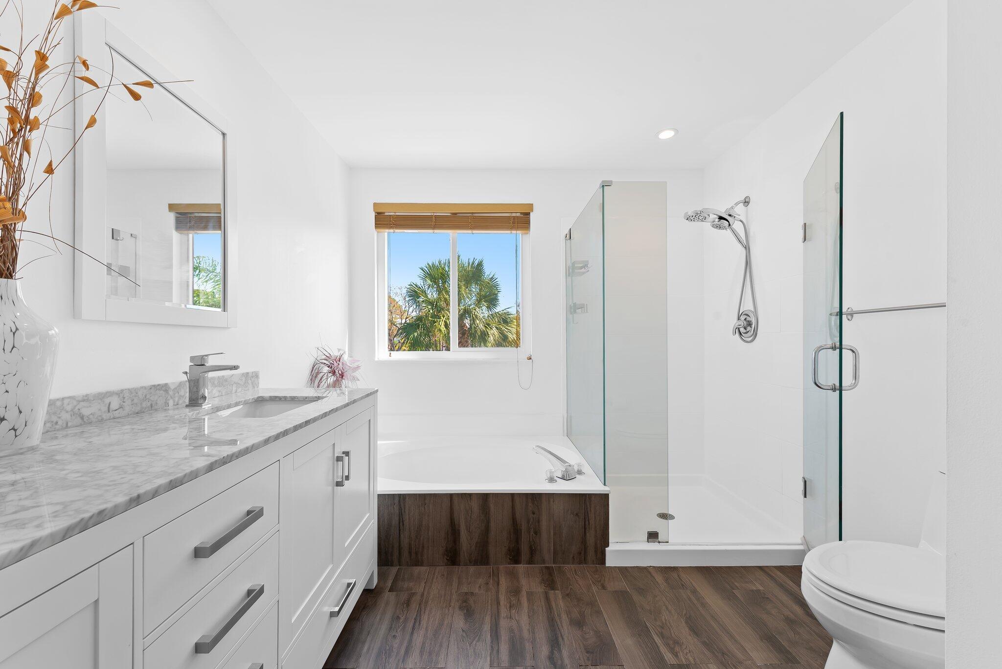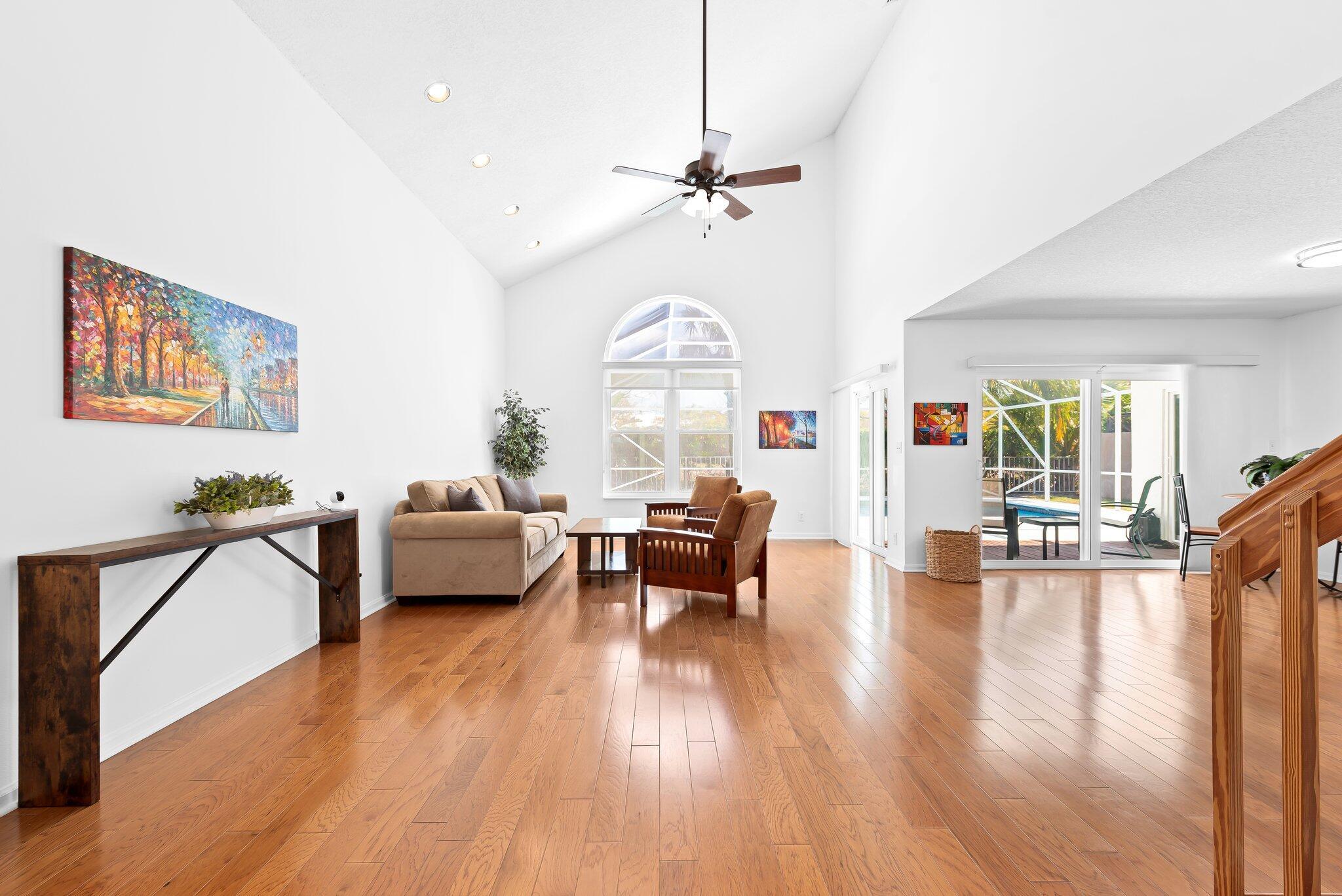 Welcome to 6262 Via Palladium. Step into comfort and style with this 4-bedroom, 2.5-bathroom home located in the desirable community of Palladium, nestled within Boca Pointe. Inside, you'll find a light-filled layout with spacious living areas and vaulted ceilings. The beautifully updated primary bathroom features modern finishes and a spa-like design, while the refreshed powder room adds a touch of sophistication for guests. The heart of the home flows seamlessly to the backyard, where a screened-in pool provides the perfect setting for year-round relaxation or entertaining friends and family. Enjoy peace of mind with a 2012 roof, impact windows, and a freshly painted exterior. Located just minutes from upscale shopping, dining, top-rated schools, and Boca's beautiful beaches.