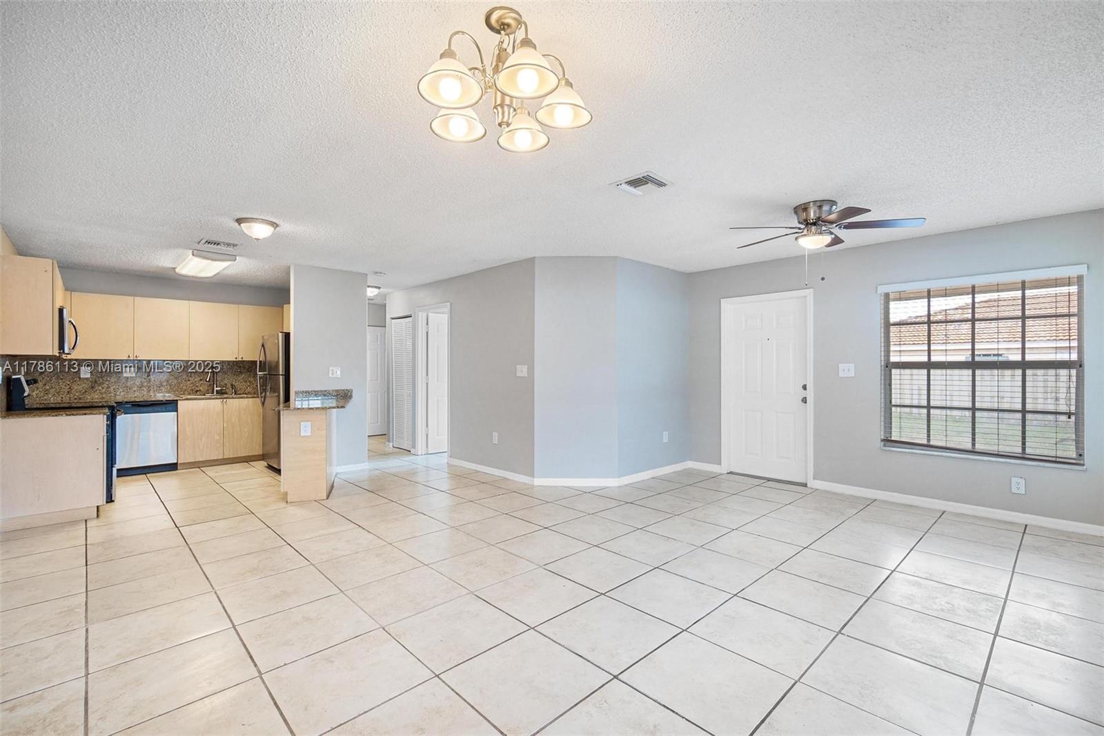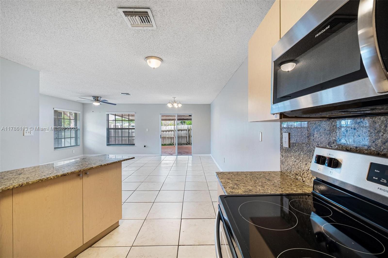 Welcome to this beautifully maintained single-story home featuring 3 spacious bedrooms and 2 full bathrooms. Step inside to find tile flooring throughout, offering both style and easy maintenance. The open-concept kitchen is a standout with sleek granite countertops, stainless steel appliances, and ample cabinetry—perfect for everyday living and entertaining. The primary suite includes a private bath and generous closet space, while the secondary bedrooms are well-sized for family, guests, or a home office. Enjoy the comfort of single-level living in a home that combines practicality with modern finishes. Don’t miss this move-in ready gem!