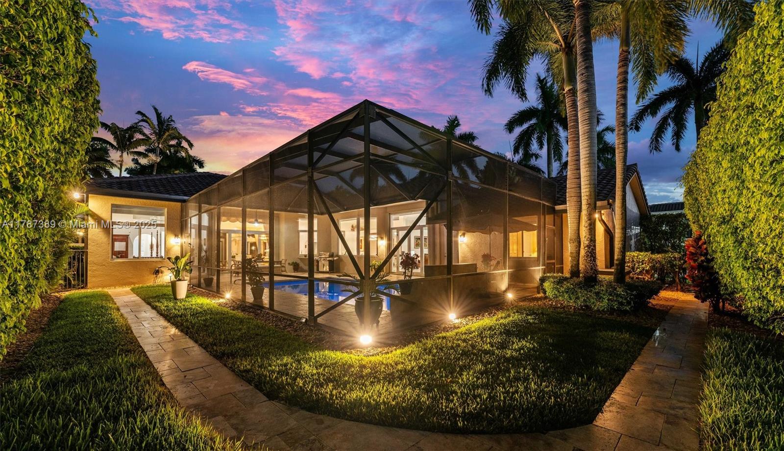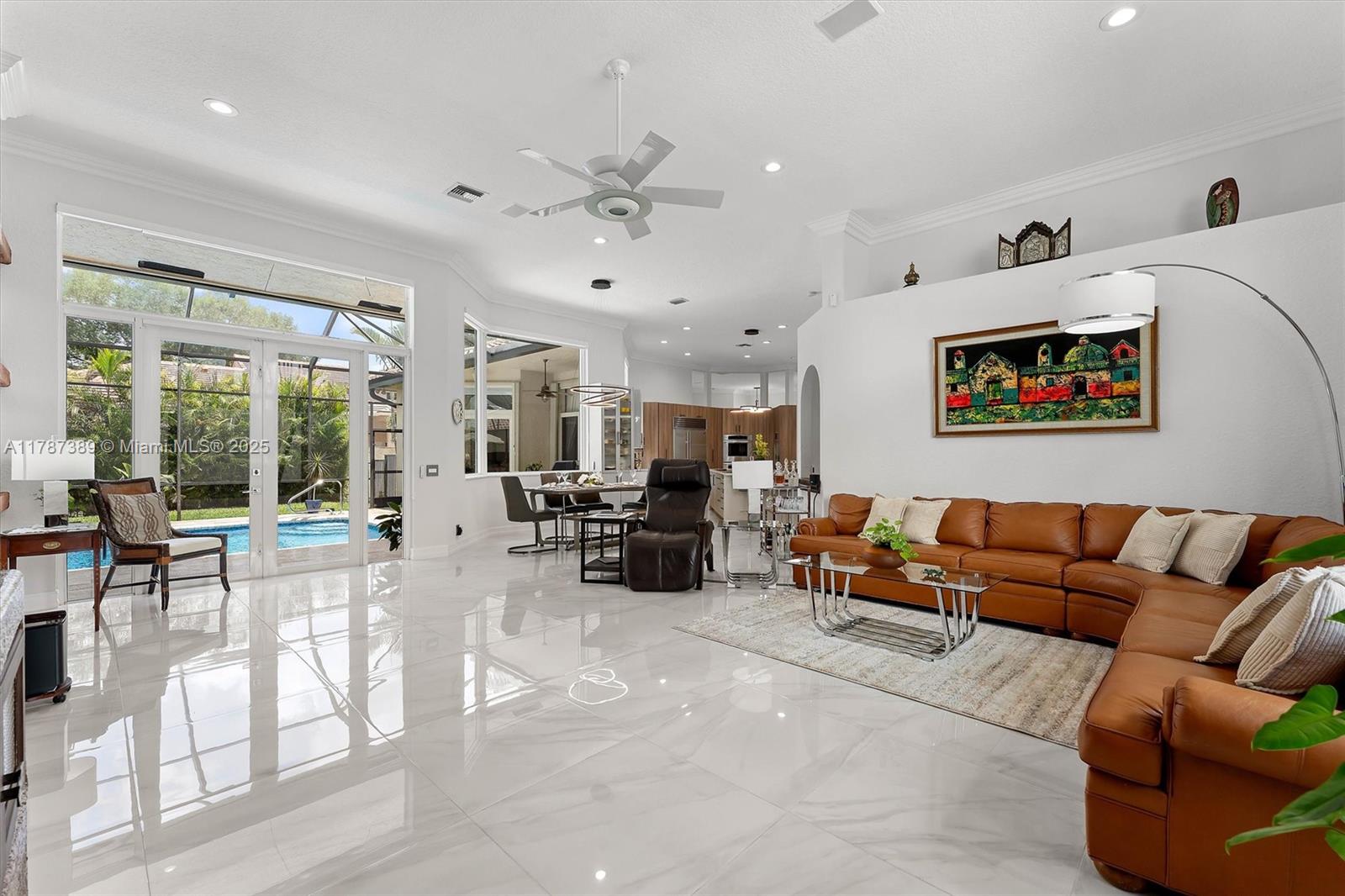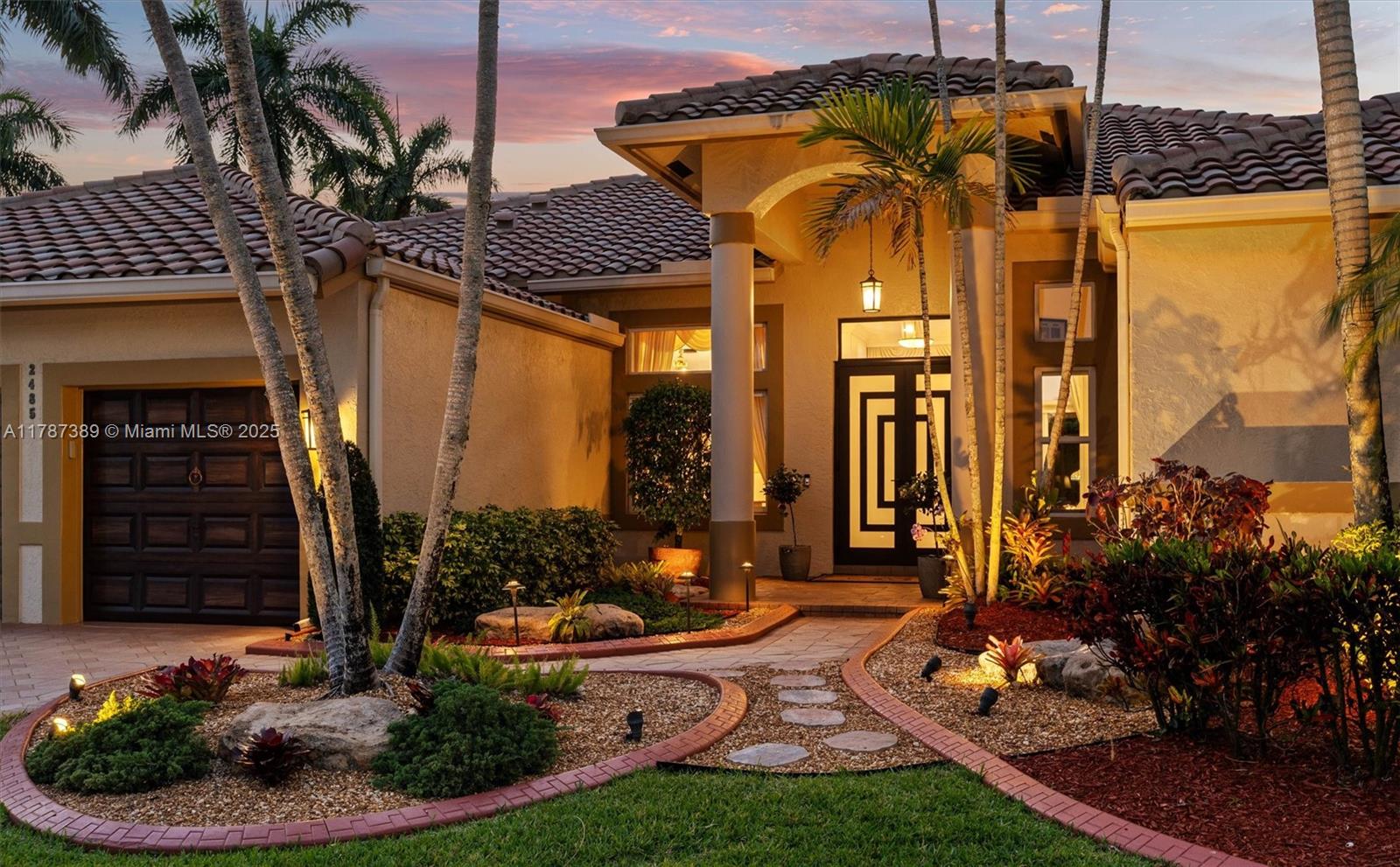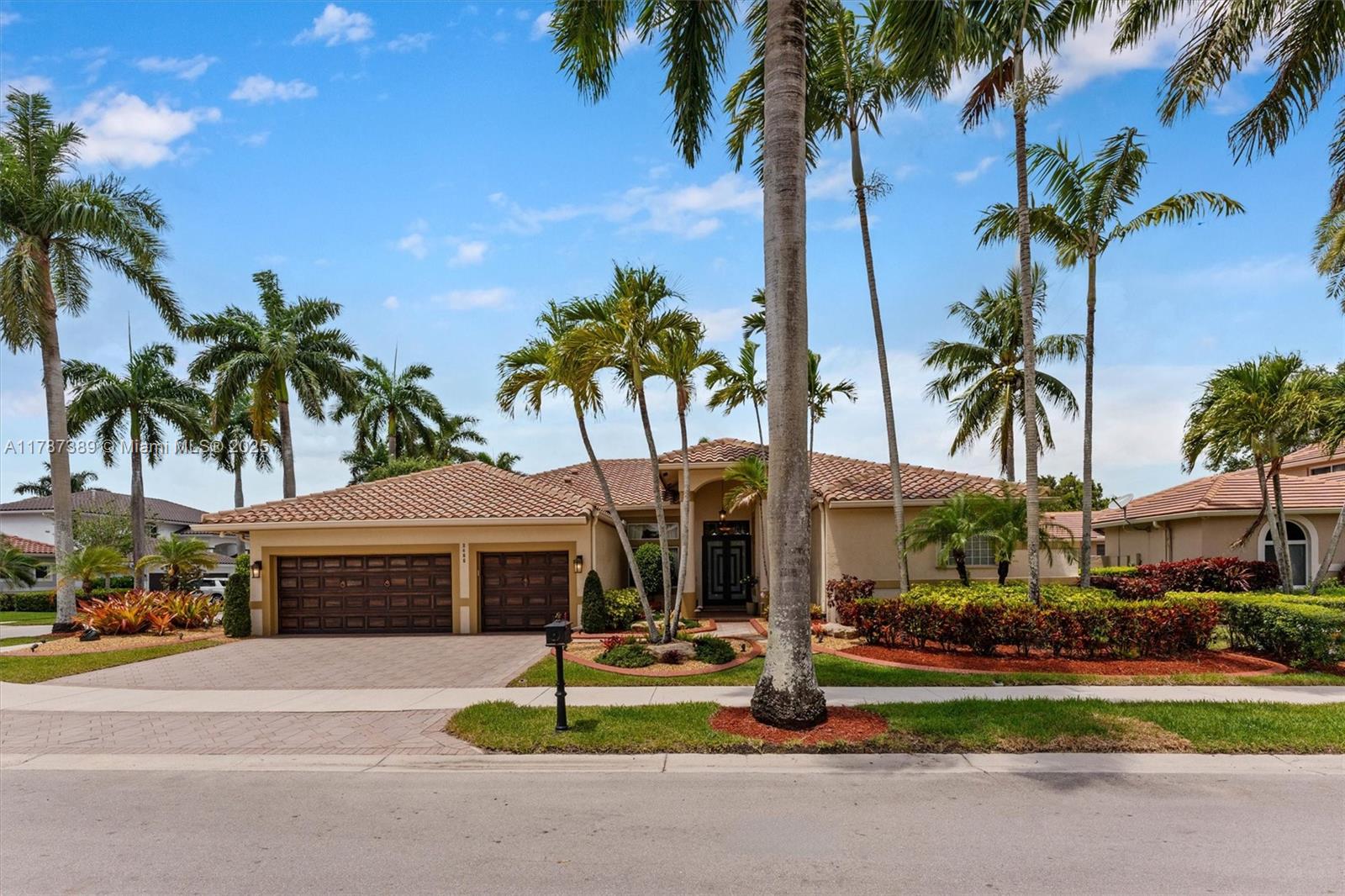 A rare offering in Weston Hills, where timeless architecture & exceptional craftsmanship meet on an expansive corner lot. This elegant home features 5BD plus a dedicated office and an entertainment room, with luminous porcelain flooring & rich laminated wood accents throughout. The oversized gourmet kitchen is equipped with Sub-Zero & Thermador appliances, quartz countertops, & a Zephyr wine cooler. Full impact windows fill the home w/ natural light, complemented by a 2017 roof for peace of mind. Enjoy a saline elongated pool within a screened patio, a whole-home water filtration system, & a three-car garage with insulated doors, transformed by Premier Garage. Located within Weston's premier A-rated school zone, this home offers the perfect blend of luxury, functionality, & prime location