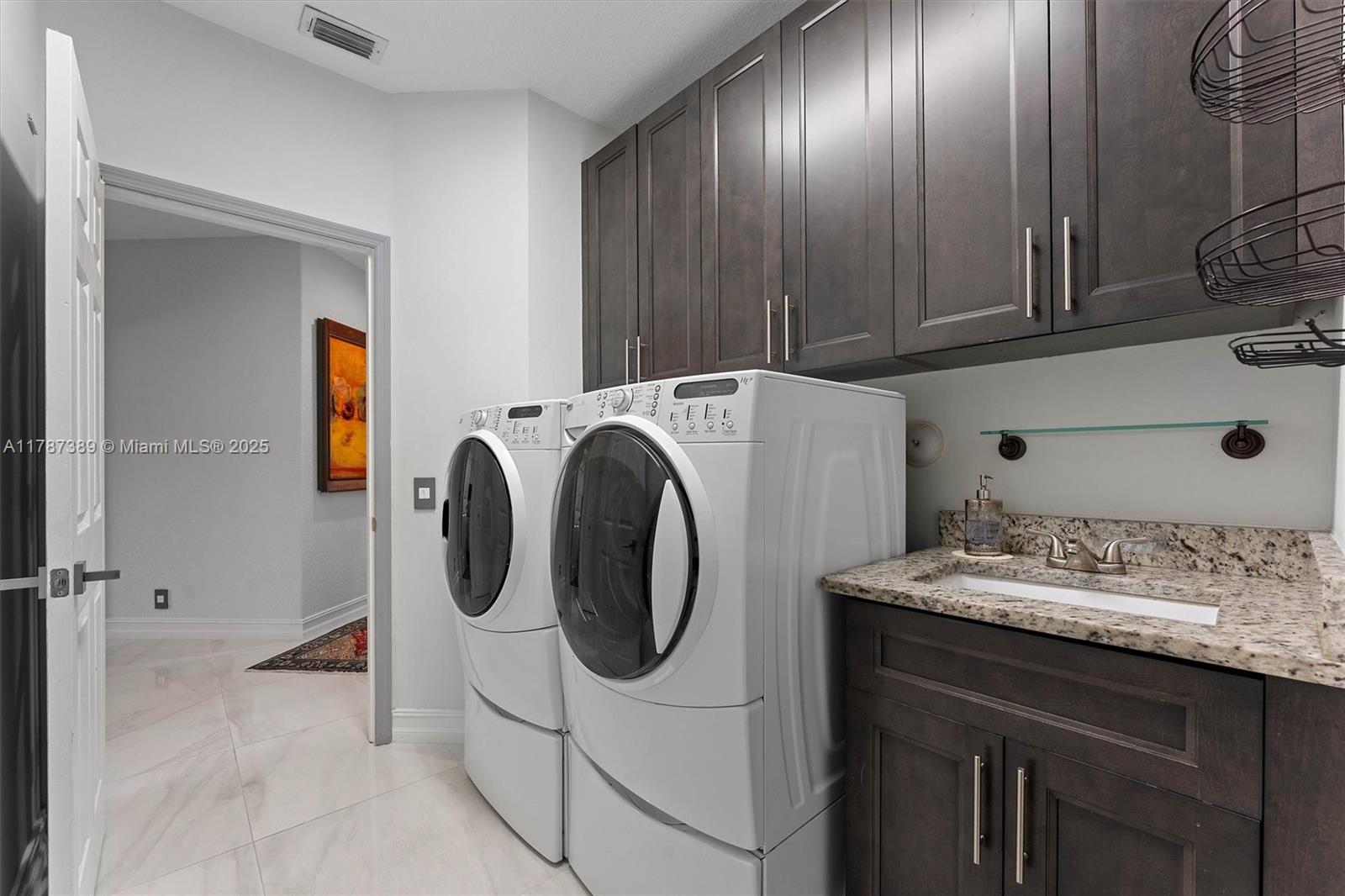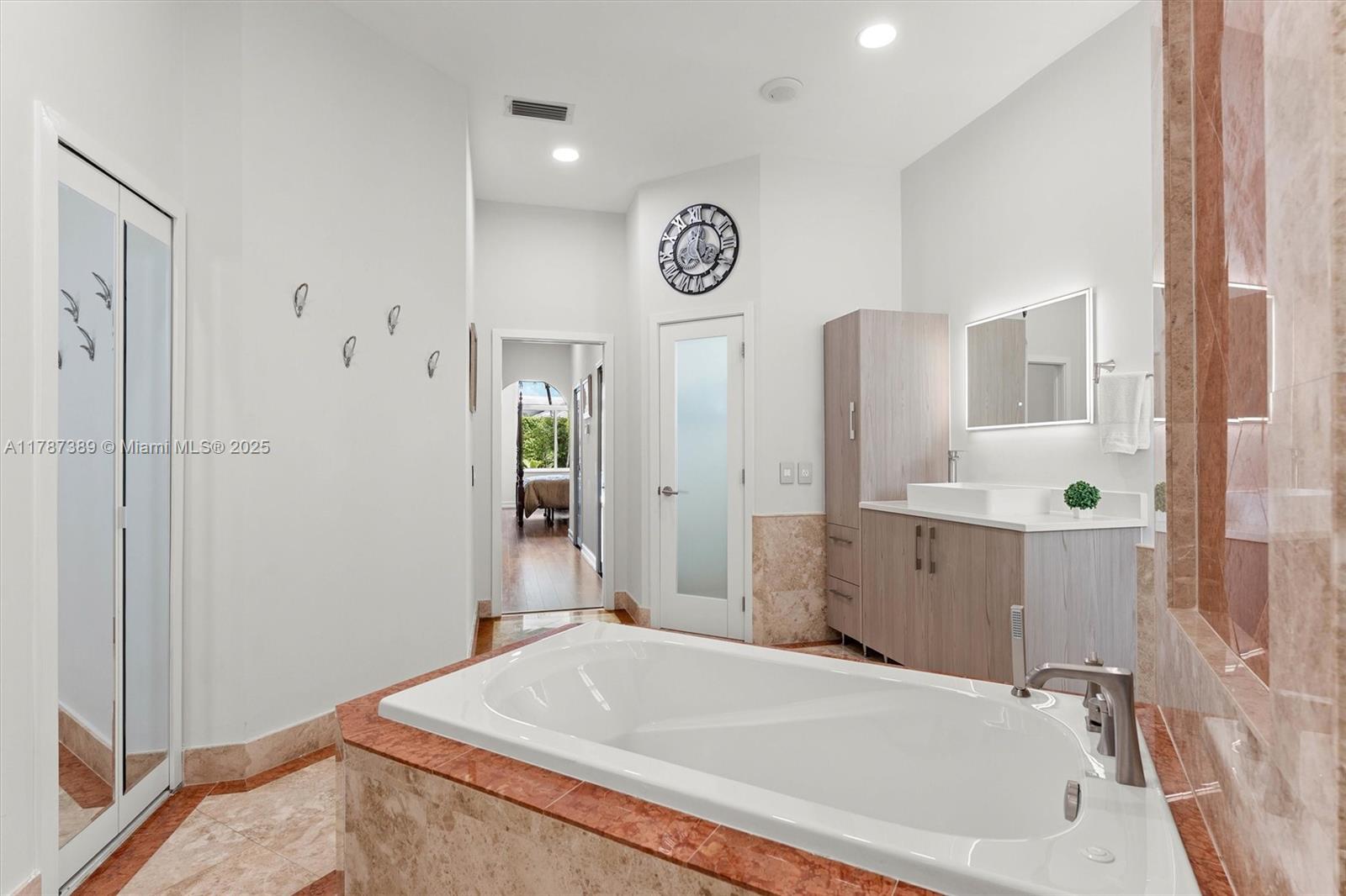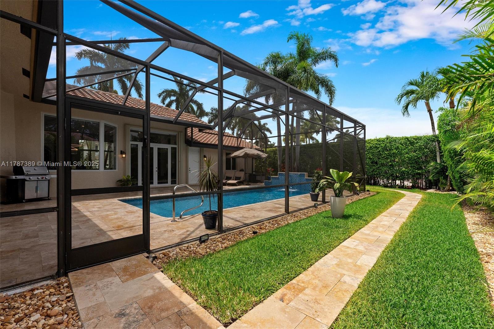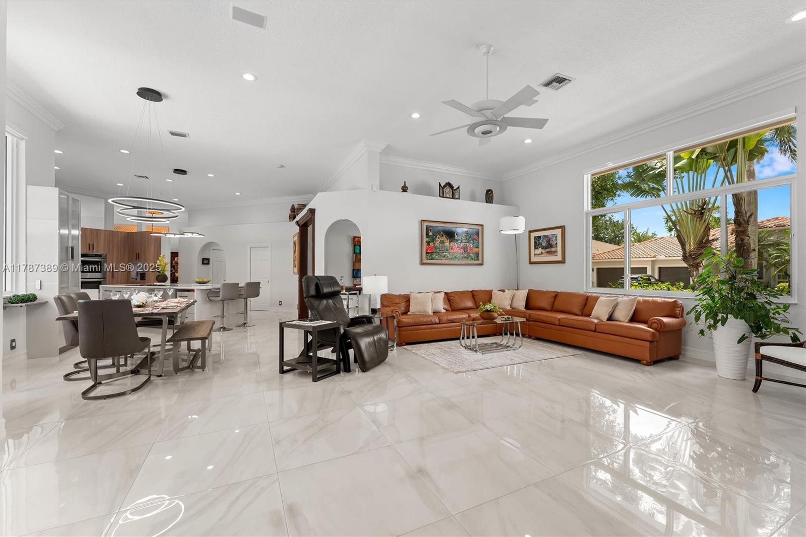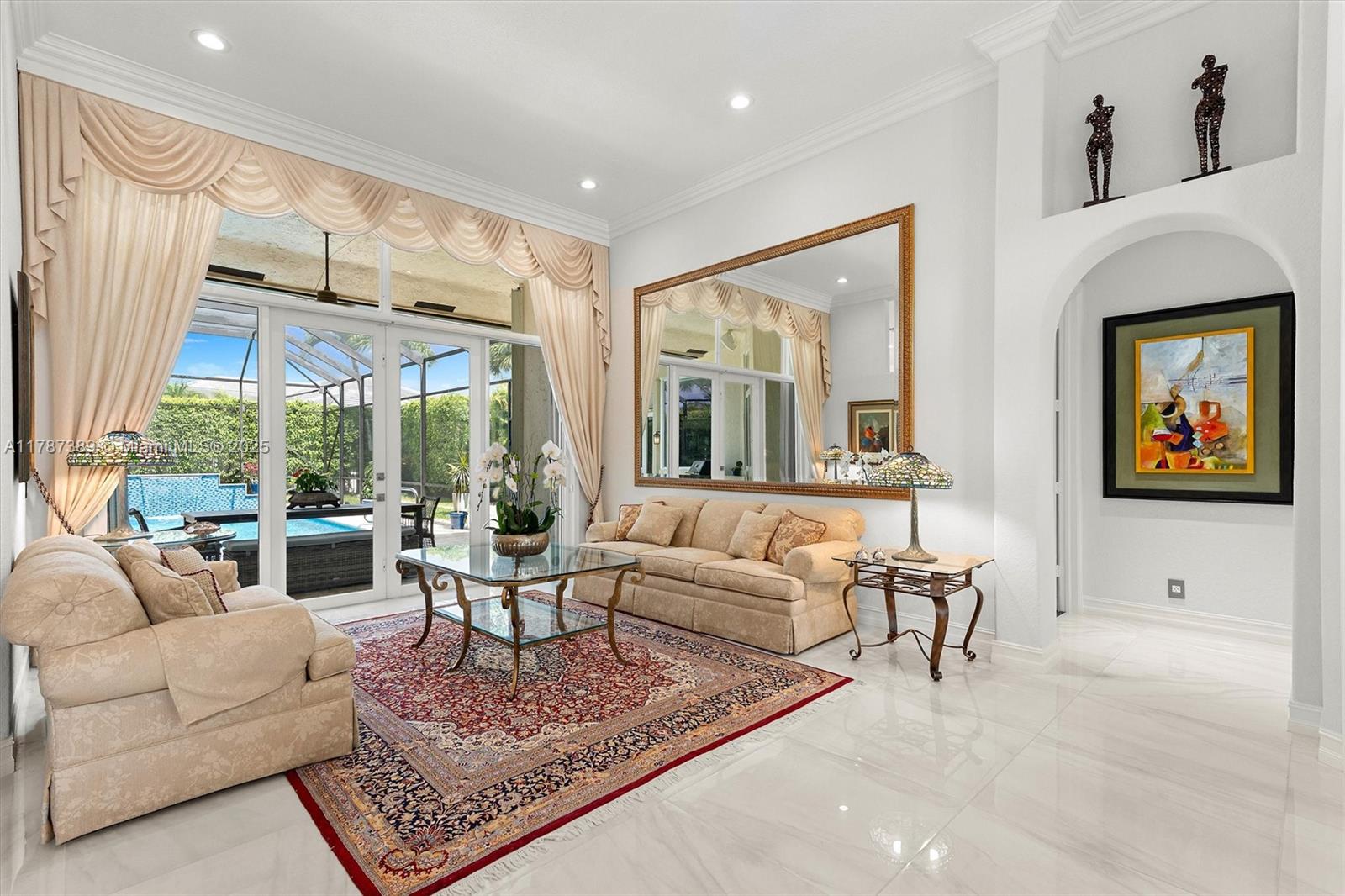 A rare offering in Weston Hills, where timeless architecture & exceptional craftsmanship meet on an expansive corner lot. This elegant home features 5BD plus a dedicated office and an entertainment room, with luminous porcelain flooring & rich laminated wood accents throughout. The oversized gourmet kitchen is equipped with Sub-Zero & Thermador appliances, quartz countertops, & a Zephyr wine cooler. Full impact windows fill the home w/ natural light, complemented by a 2017 roof for peace of mind. Enjoy a saline elongated pool within a screened patio, a whole-home water filtration system, & a three-car garage with insulated doors, transformed by Premier Garage. Located within Weston's premier A-rated school zone, this home offers the perfect blend of luxury, functionality, & prime location